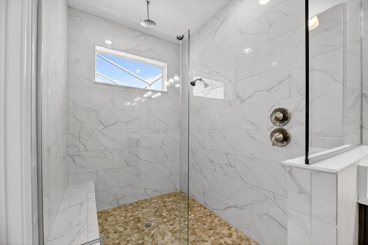 Primary suite with spa-like bath and large walk in closet,