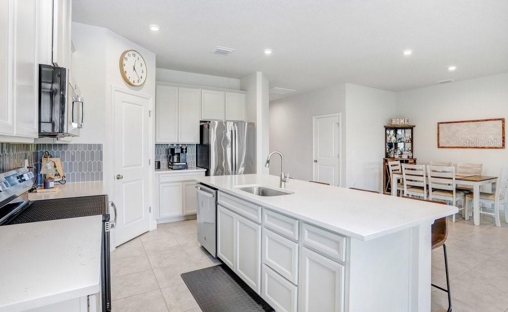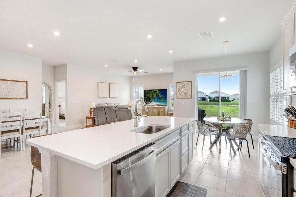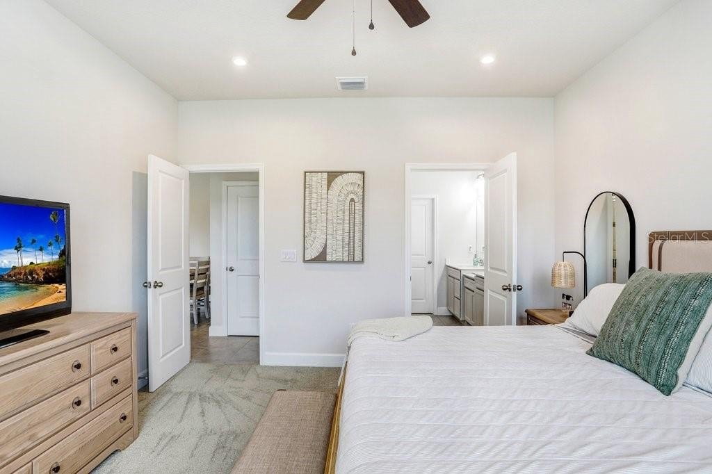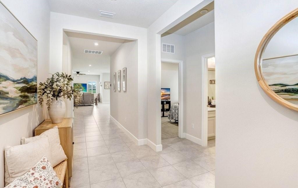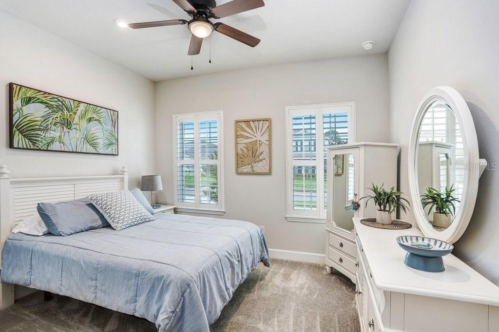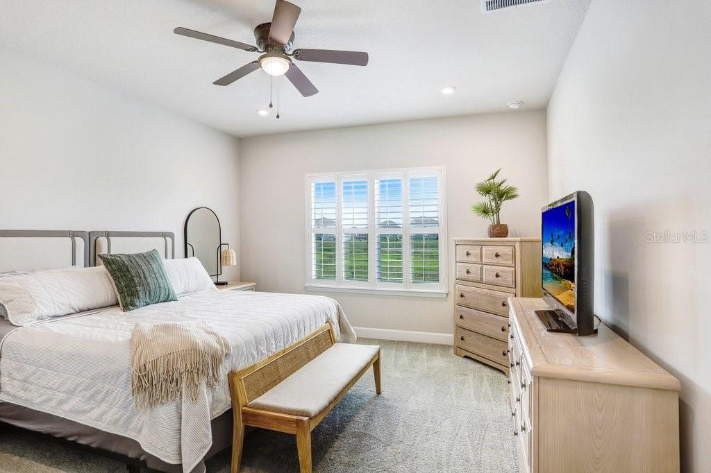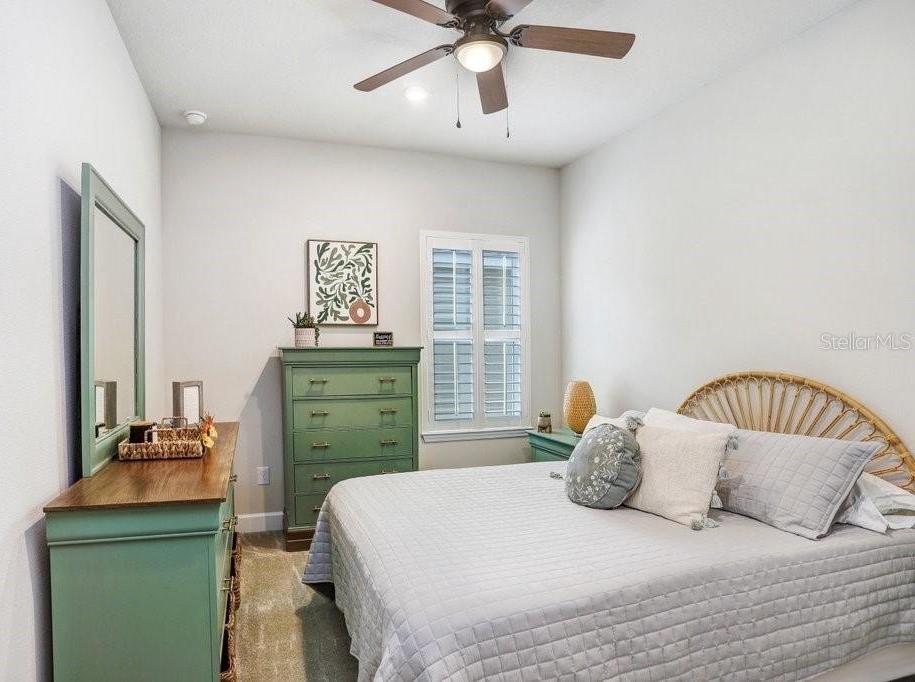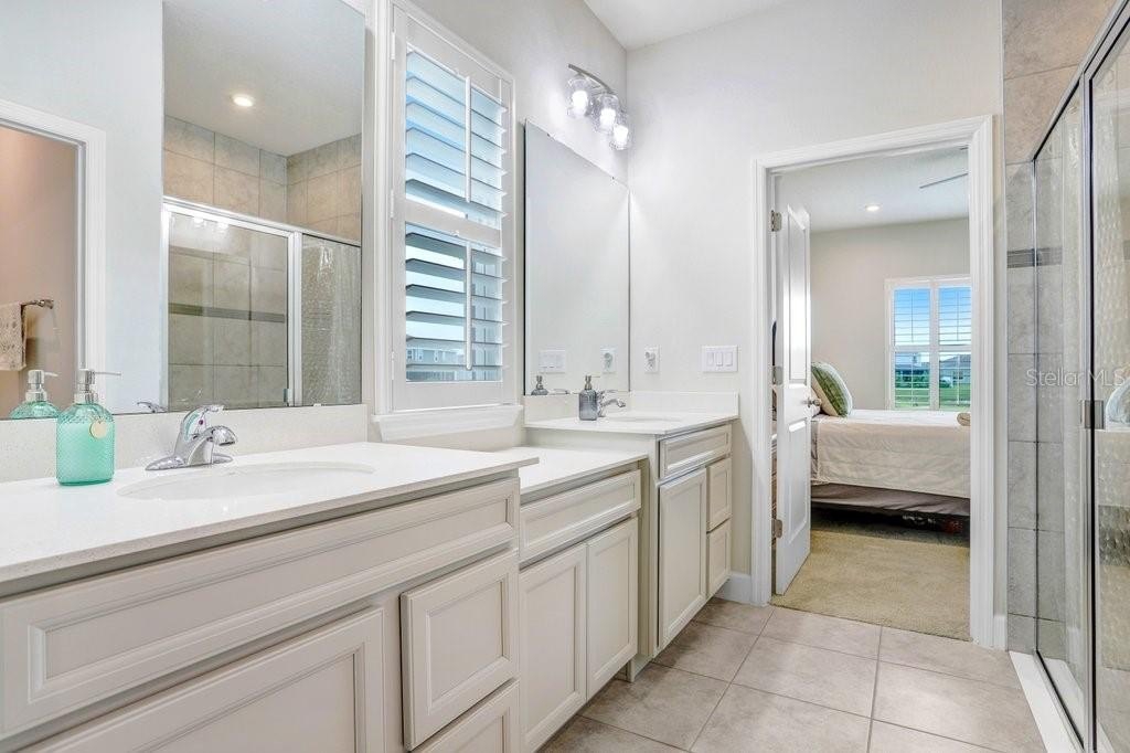 Welcome to this stunning 4-bedroom, 2-bath single-story home built in 2024, perfectly situated in the highly sought-after Park Meadows community. With low HOA fees and No CDD, this home combines modern living with exceptional value & comfort. Step inside to an inviting open floor plan with a split bedroom layout, designed for both functionality and privacy. The home features tile flooring throughout the main living areas, cozy carpet in the bedrooms, abundant natural light throughout, high ceilings, and upgraded plantation shutters for a timeless touch. The kitchen is a chef’s delight with sleek stainless steel appliances, a spacious walk in pantry, ample cabinet space, and gorgeous Quartz countertops. The spacious primary suite offers a large walk-in closet and a spa-inspired bathroom with a walk-in shower as well as his and her sinks with additional space for a vanity station. The additional three bedrooms are perfectly situated for a kids's room, guest room, or even a home office! The extra bathroom includes a tub, his and her sinks, and its own spacious linen closet. The 2-car garage has been upgraded with epoxy flooring to provide durability and a polished finish. Apart from provinding exceptional homes, the Park Meadows community also includes a community pool perfect for sunny Florida days and a dedicated dog area for your four-legged friends. This home’s location is unmatched- across from Cypress Creek schools, just 2 miles from the new Johns Hopkins Children’s Hospital, and only 4 miles from the Epperson Lagoon! This move-in ready home offers modern living, fantastic amenities, and a convenient location in one of Wesley Chapel’s most desirable communities — schedule your showing today!