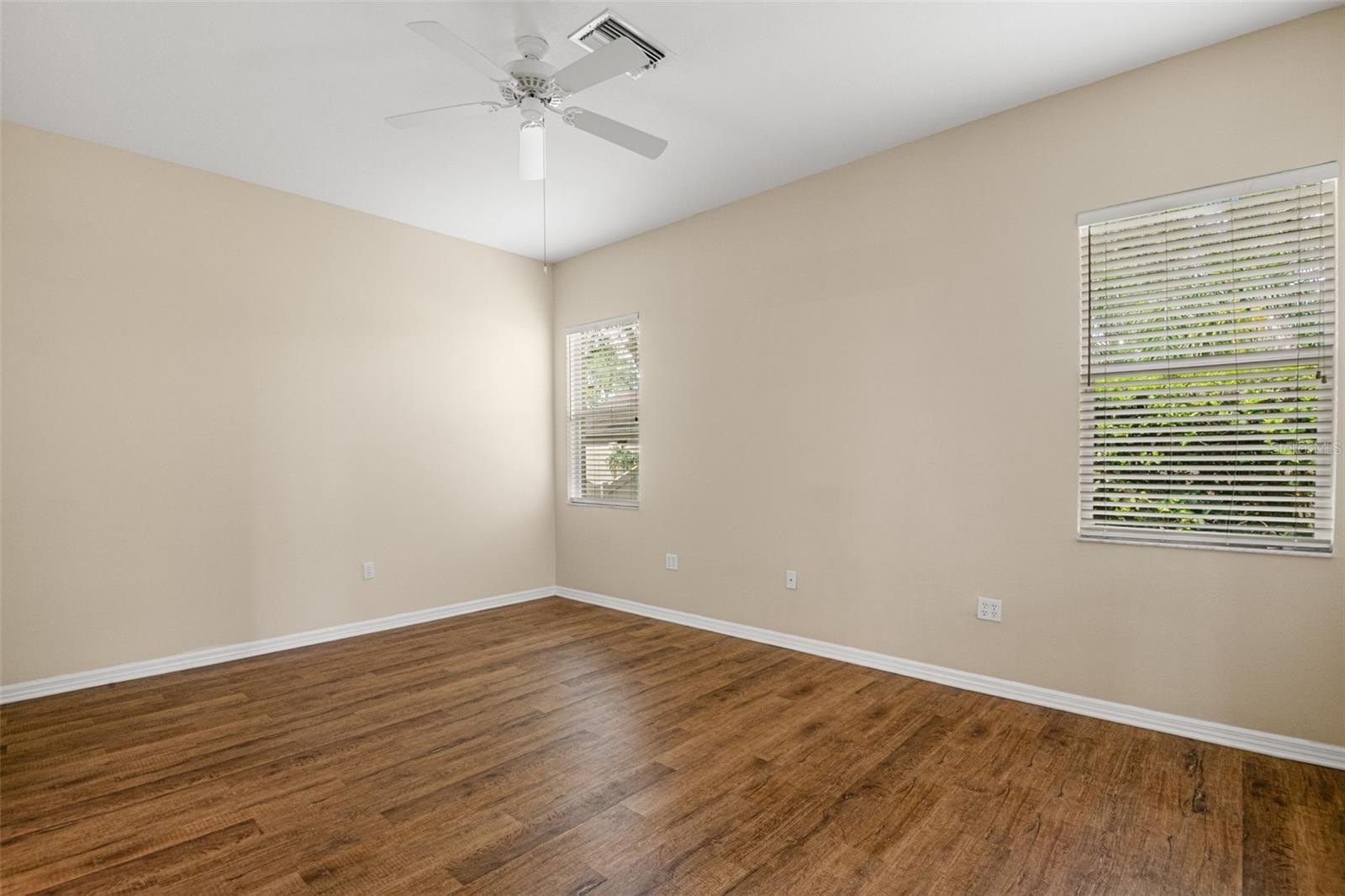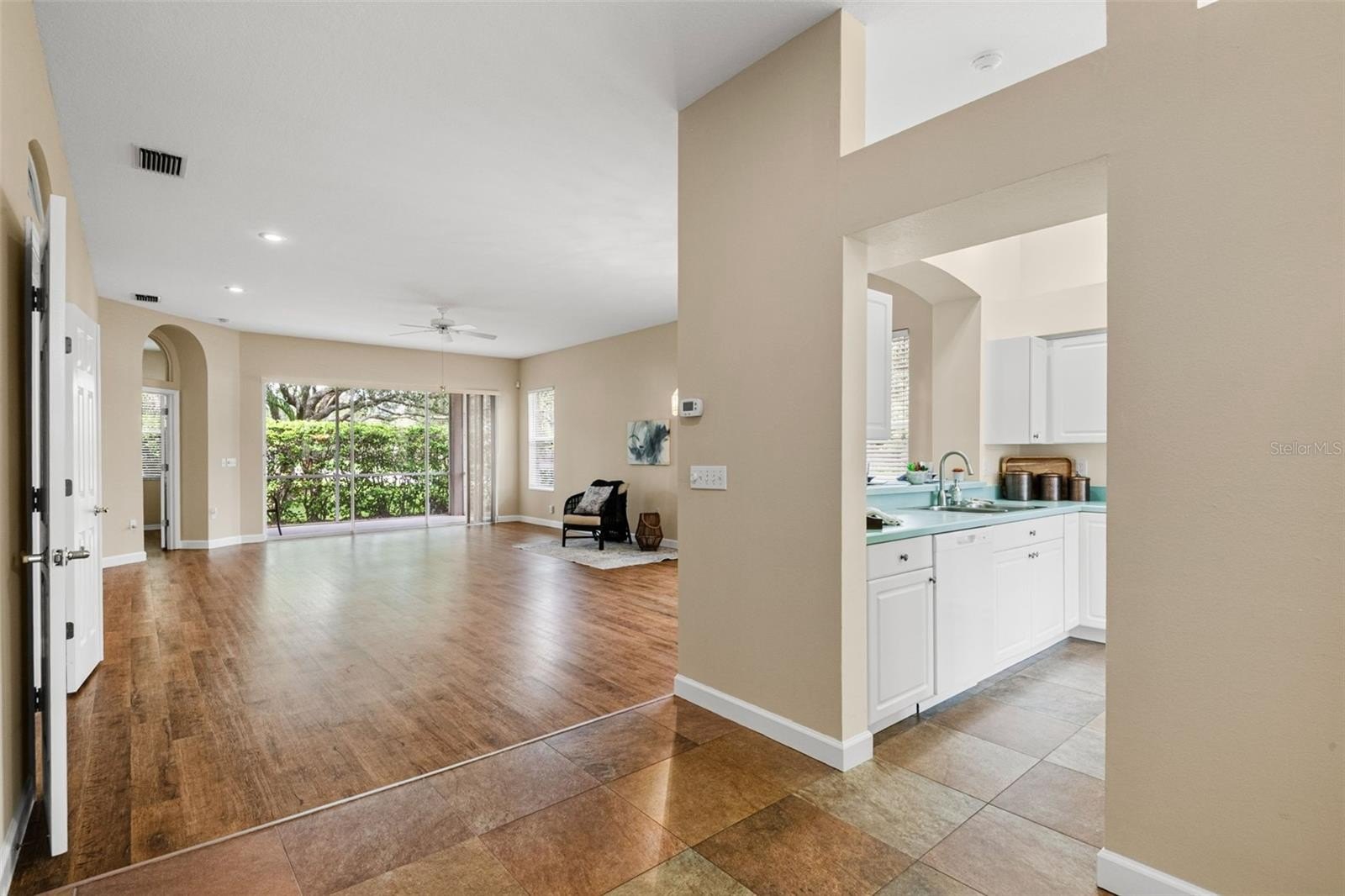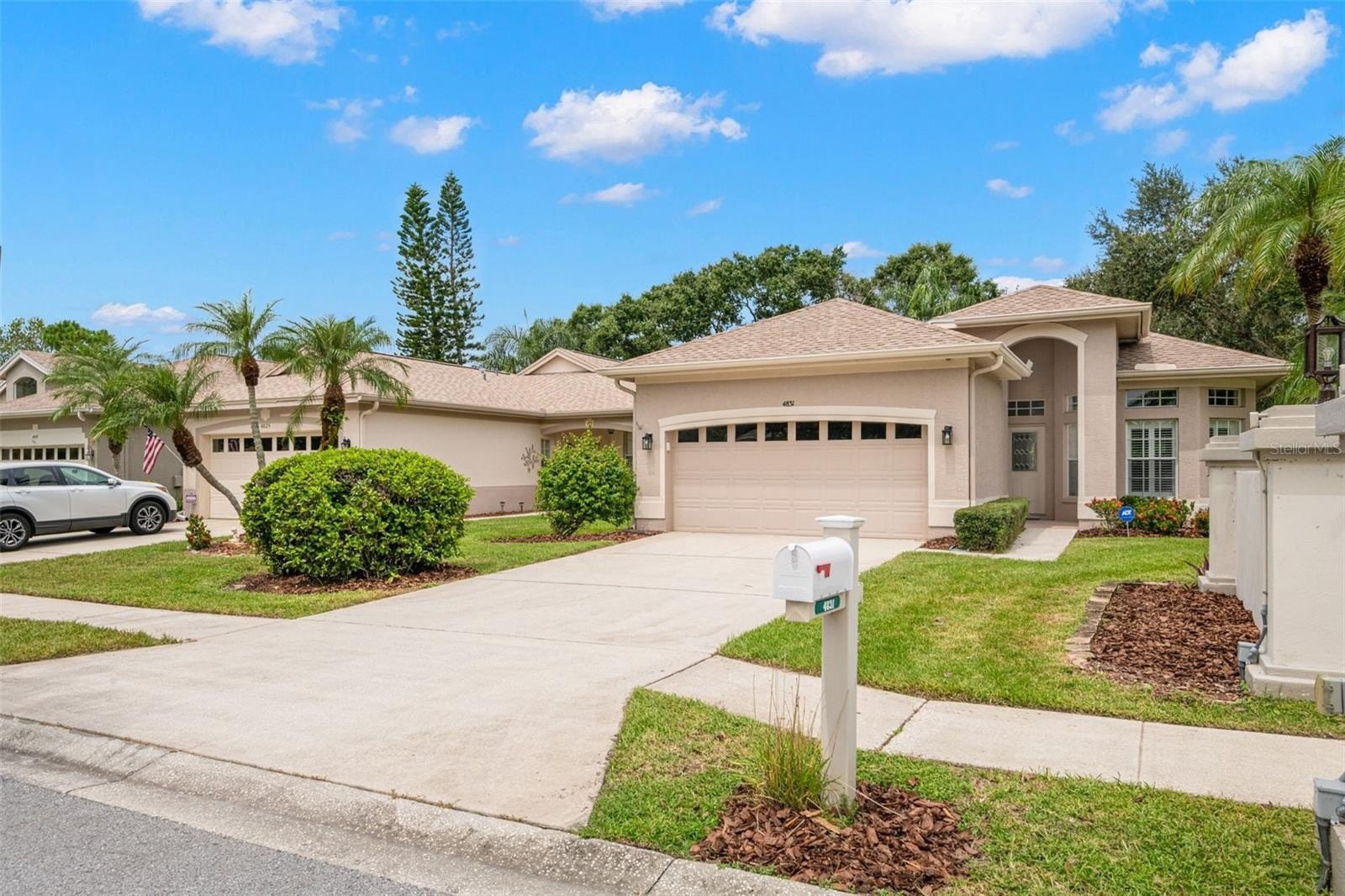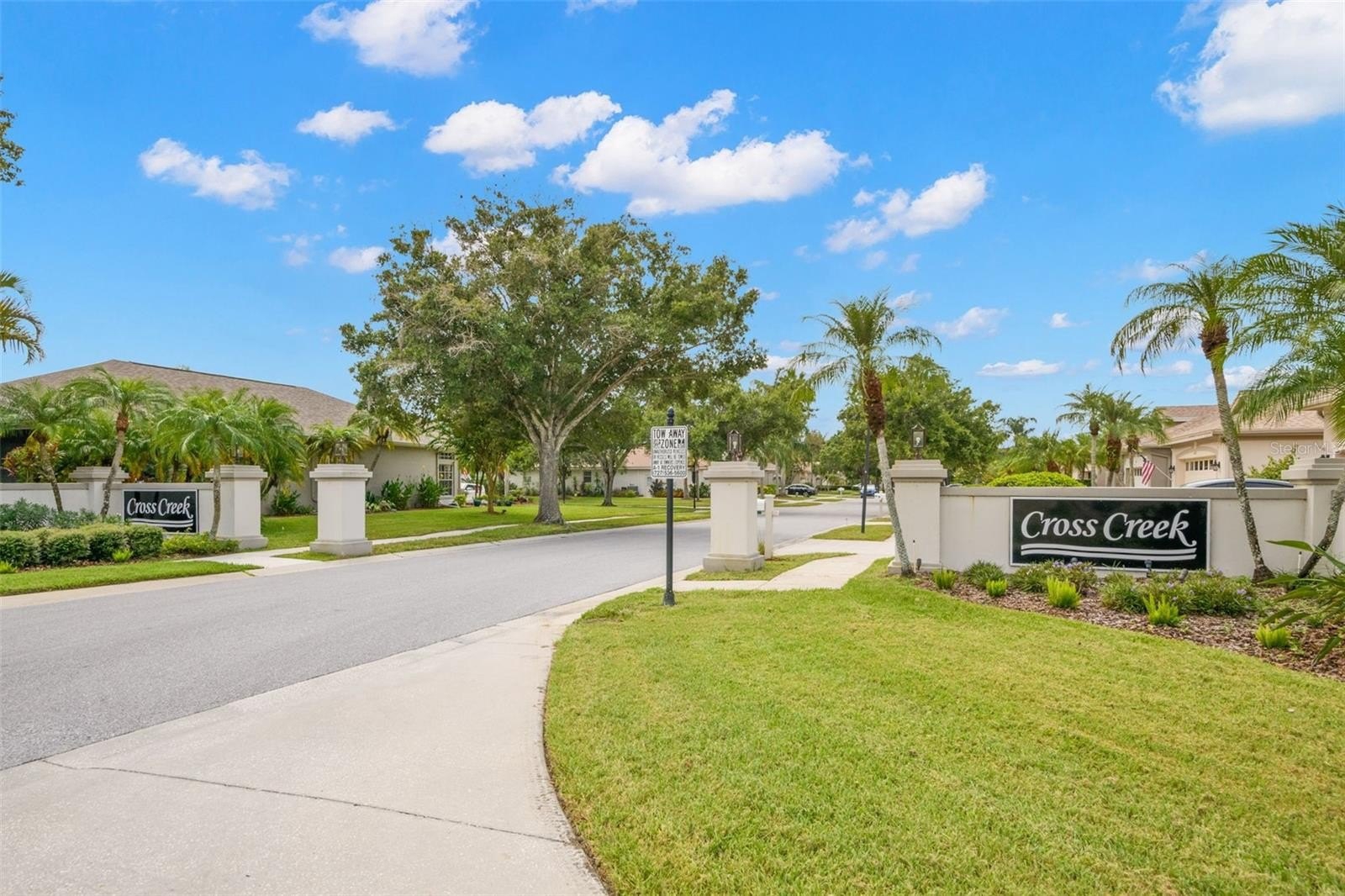 Walk up as you take in the lush landscape and brick paved front porch; Step inside this lovely home in the highly sought-after East Lake Woodlands neighborhood of Cross Creek and be immediately impressed by its open and inviting layout. Interior highlights include light & bright kitchen with white raised-panel cabinetry, double stainless-steel sink, large pantry with built-in shelving, and cozy breakfast nook with abundant natural light. The breakfast bar is open to the dining and living areas, creating the perfect space for entertaining, while the spacious living room with pocket sliding doors leads to your screened-in porch, where you can access your private side yard. The primary suite is located off the rear of the home and boasts two walk-in closets and an en suite bath featuring jacuzzi soaking tub, step-in shower, dual-sink vanity with built-in makeup area, and private water closet. The bonus room has a double-door entry and would be ideal as a third bedroom, home office, or den. The second full bath has a tub/shower combo and large vanity with storage. The generous second bedroom has a large wall closet and lovely natural light. Laminate wood flooring throughout the main living spaces and tile in kitchen/entry/laundry makes for easy maintenance. The laundry room has upper cabinets, deep tub sink with cabinetry below for extra storage. From here you access your oversized 2-car garage. Located a short distance to the Cross Creek community pool, you will love all that this location has to offer. There are optional membership opportunities at East Lake Woodlands Country Club with golf, tennis, fitness, and more. This ideal location is near shops, dining, and Gulf beaches. This home offers the perfect blend of open living spaces, abundant storage, and resort-style amenities, all within a peaceful gated community. You will love how well cared for this home is ...—schedule your showing today and start enjoying the Florida lifestyle!