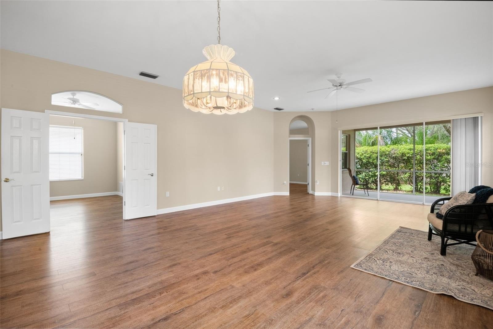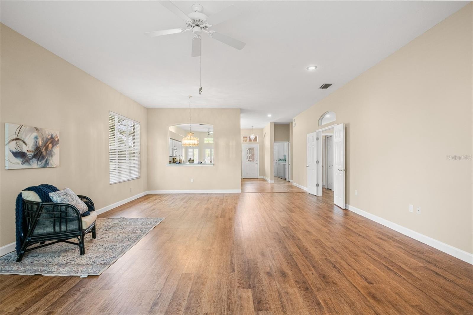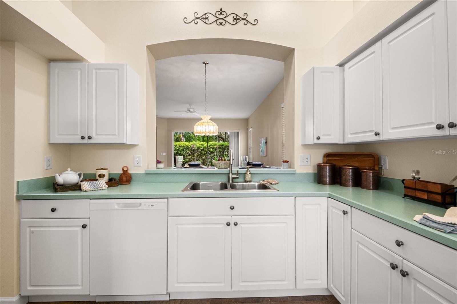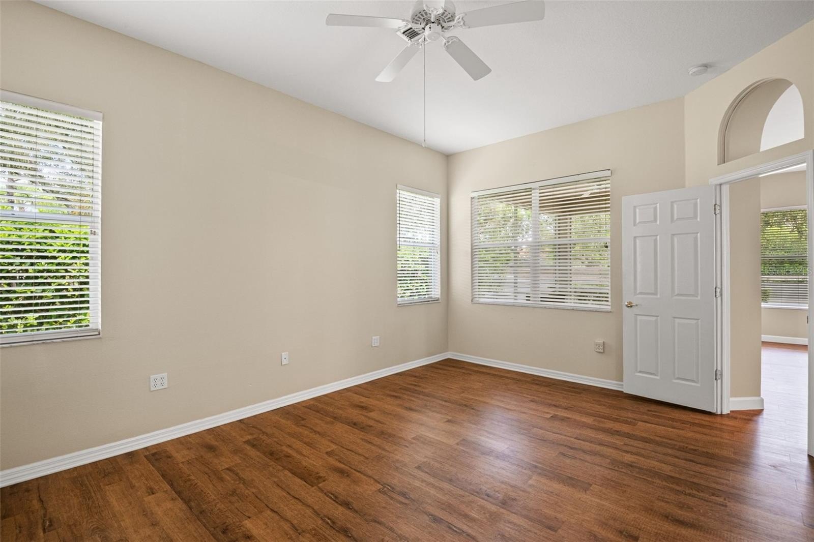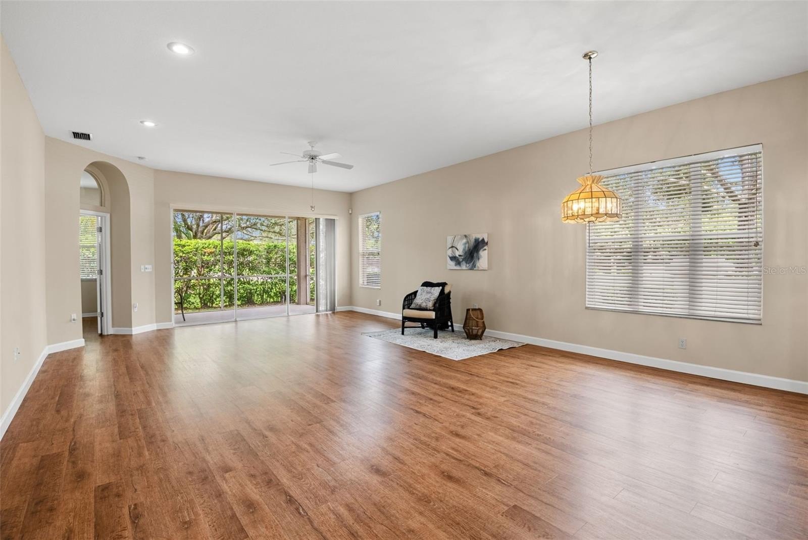 Walk up as you take in the lush landscape and brick paved front porch; Step inside this lovely home in the highly sought-after East Lake Woodlands neighborhood of Cross Creek and be immediately impressed by its open and inviting layout. Interior highlights include light & bright kitchen with white raised-panel cabinetry, double stainless-steel sink, large pantry with built-in shelving, and cozy breakfast nook with abundant natural light. The breakfast bar is open to the dining and living areas, creating the perfect space for entertaining, while the spacious living room with pocket sliding doors leads to your screened-in porch, where you can access your private side yard. The primary suite is located off the rear of the home and boasts two walk-in closets and an en suite bath featuring jacuzzi soaking tub, step-in shower, dual-sink vanity with built-in makeup area, and private water closet. The bonus room has a double-door entry and would be ideal as a third bedroom, home office, or den. The second full bath has a tub/shower combo and large vanity with storage. The generous second bedroom has a large wall closet and lovely natural light. Laminate wood flooring throughout the main living spaces and tile in kitchen/entry/laundry makes for easy maintenance. The laundry room has upper cabinets, deep tub sink with cabinetry below for extra storage. From here you access your oversized 2-car garage. Located a short distance to the Cross Creek community pool, you will love all that this location has to offer. There are optional membership opportunities at East Lake Woodlands Country Club with golf, tennis, fitness, and more. This ideal location is near shops, dining, and Gulf beaches. This home offers the perfect blend of open living spaces, abundant storage, and resort-style amenities, all within a peaceful gated community. You will love how well cared for this home is ...—schedule your showing today and start enjoying the Florida lifestyle!