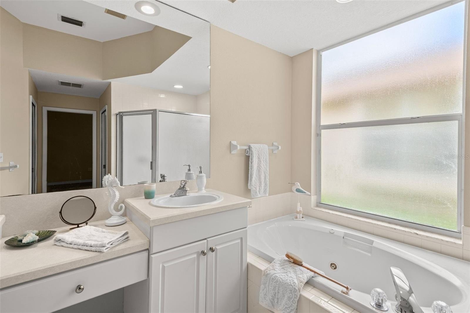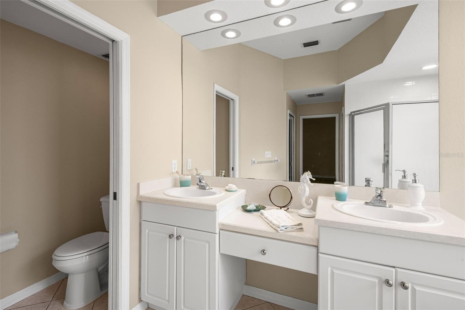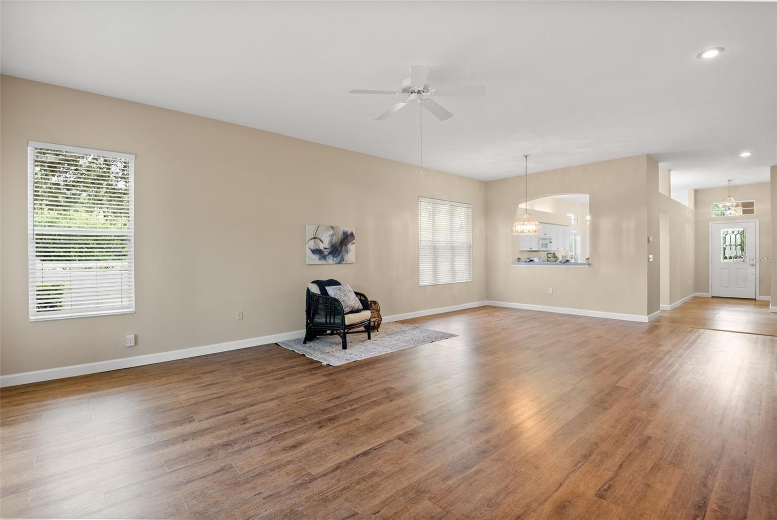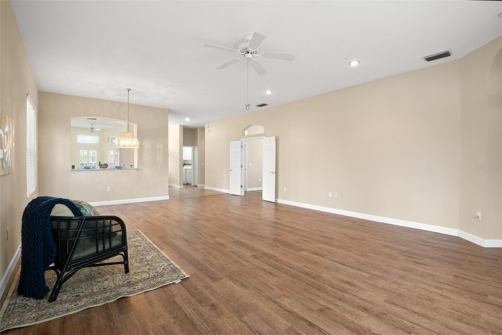 Walk up as you take in the lush landscape and brick paved front porch; Step inside this lovely home in the highly sought-after East Lake Woodlands neighborhood of Cross Creek and be immediately impressed by its open and inviting layout. Interior highlights include light & bright kitchen with white raised-panel cabinetry, double stainless-steel sink, large pantry with built-in shelving, and cozy breakfast nook with abundant natural light. The breakfast bar is open to the dining and living areas, creating the perfect space for entertaining, while the spacious living room with pocket sliding doors leads to your screened-in porch, where you can access your private side yard. The primary suite is located off the rear of the home and boasts two walk-in closets and an en suite bath featuring jacuzzi soaking tub, step-in shower, dual-sink vanity with built-in makeup area, and private water closet. The bonus room has a double-door entry and would be ideal as a third bedroom, home office, or den. The second full bath has a tub/shower combo and large vanity with storage. The generous second bedroom has a large wall closet and lovely natural light. Laminate wood flooring throughout the main living spaces and tile in kitchen/entry/laundry makes for easy maintenance. The laundry room has upper cabinets, deep tub sink with cabinetry below for extra storage. From here you access your oversized 2-car garage. Located a short distance to the Cross Creek community pool, you will love all that this location has to offer. There are optional membership opportunities at East Lake Woodlands Country Club with golf, tennis, fitness, and more. This ideal location is near shops, dining, and Gulf beaches. This home offers the perfect blend of open living spaces, abundant storage, and resort-style amenities, all within a peaceful gated community. You will love how well cared for this home is ...—schedule your showing today and start enjoying the Florida lifestyle!