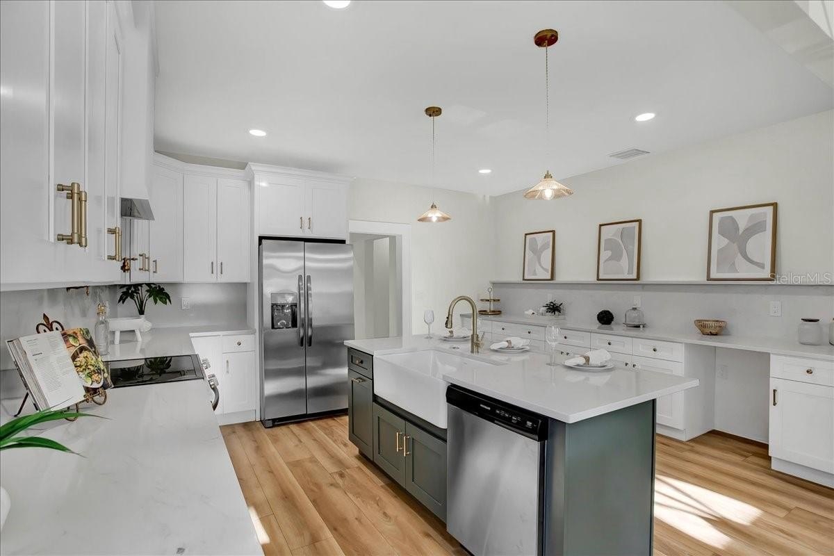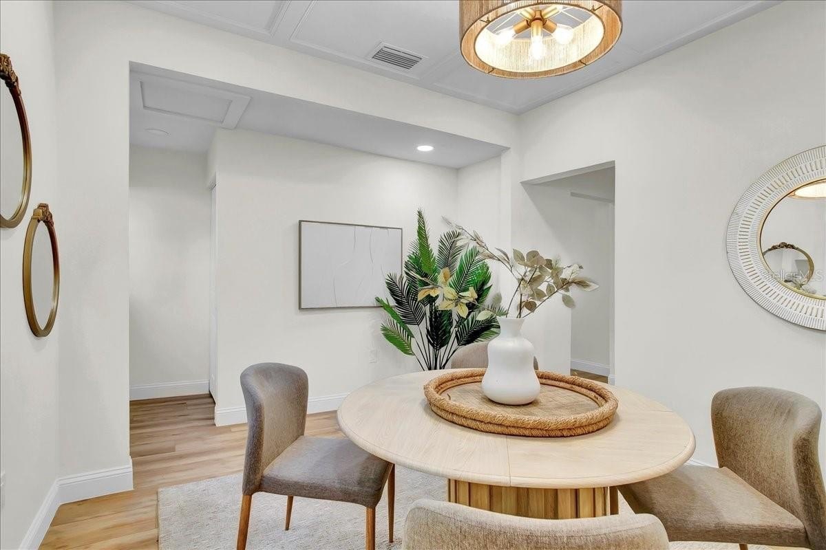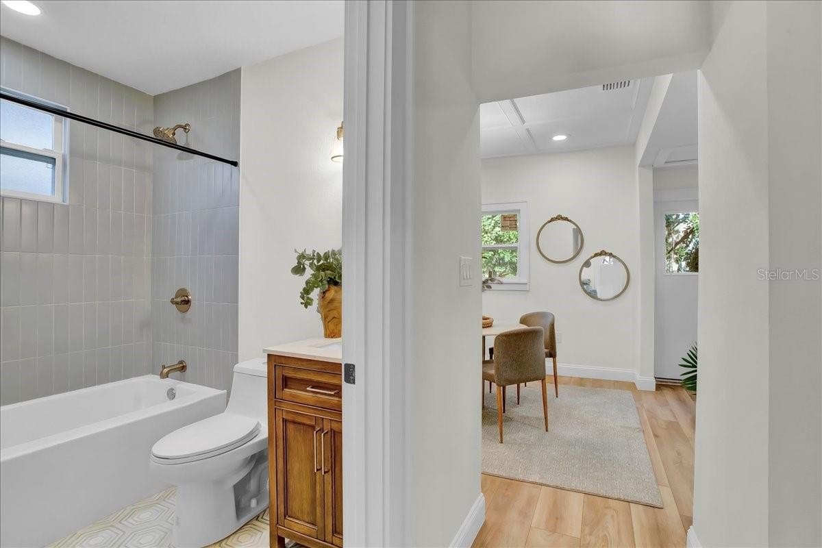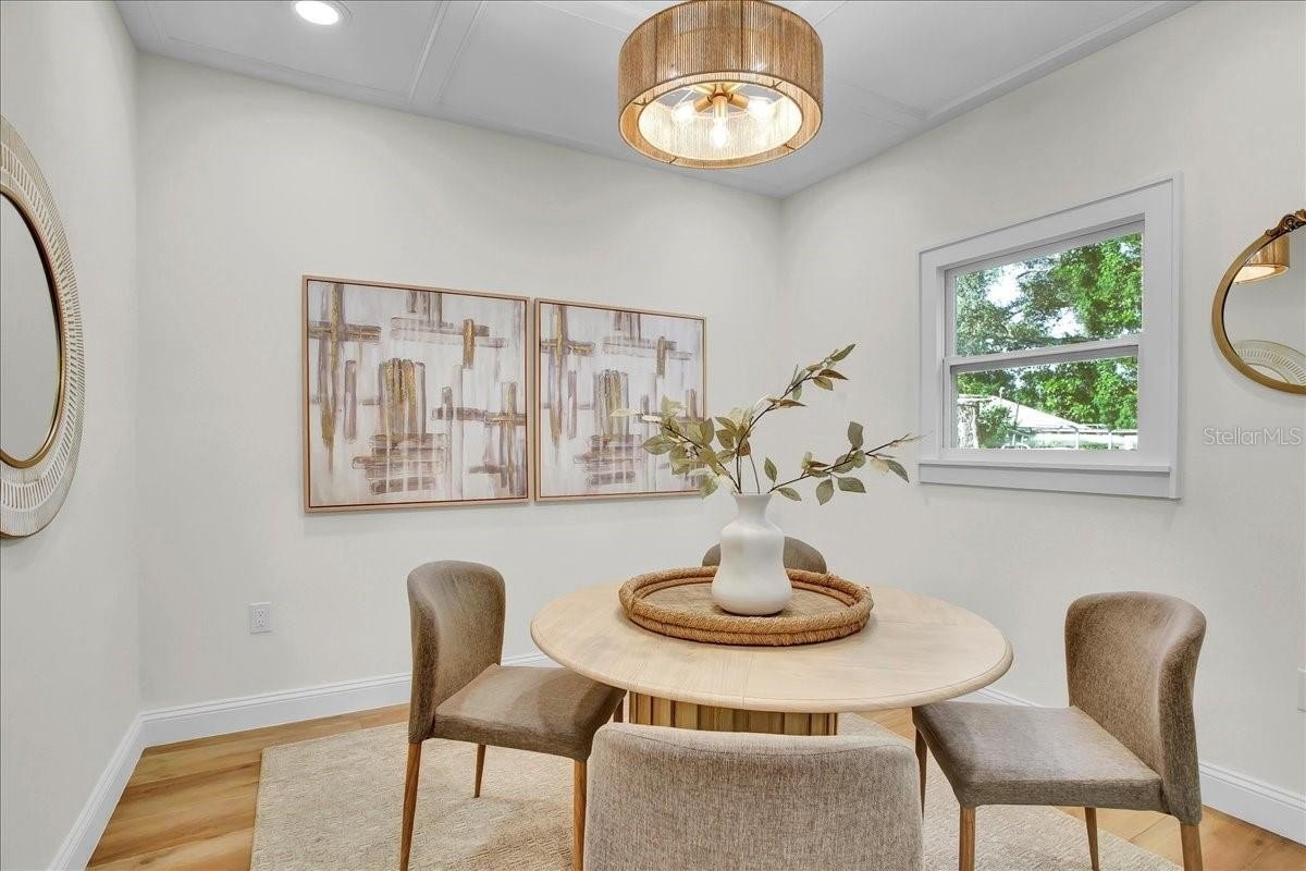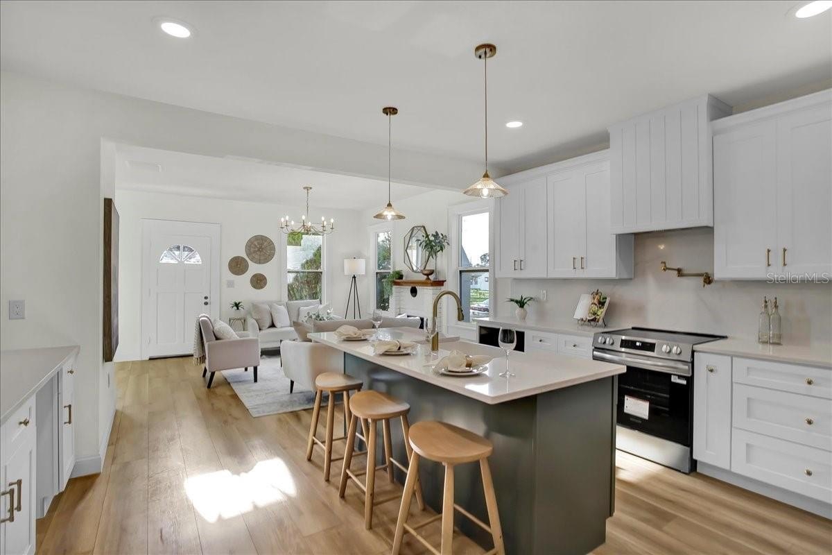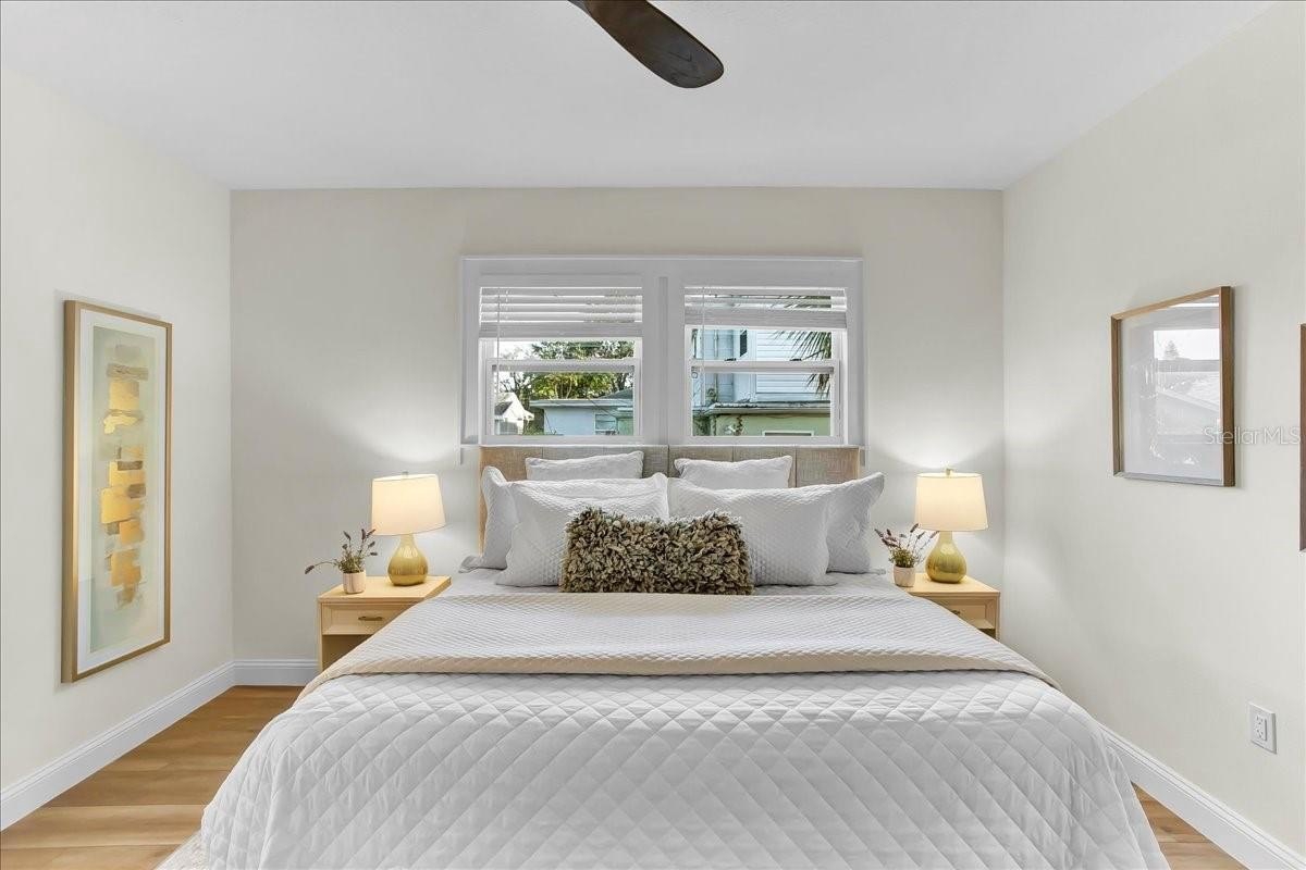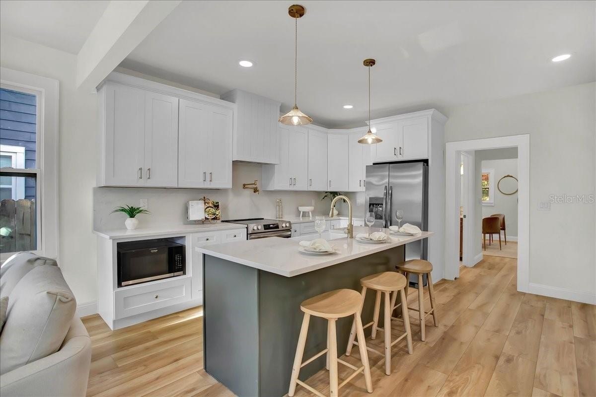 Step inside this stunning 3-bedroom, 2-bath, 1,487 sq ft home and experience the perfect blend of modern updates, timeless charm, and a thoughtfully designed layout. You’re greeted by the spacious living room with soaring ceilings and a cozy fireplace, setting the tone for both comfort and style. To the right, a bright office (or third bedroom) offers the perfect space for working from home or creative pursuits. Continue through the home and you’ll find the heart of the house: a chef’s kitchen with a massive island and an extended dry bar across the way—a dream for entertaining. Just beyond, the formal dining room provides an inviting space for gatherings with family and friends. The guest bath is conveniently located off the main living area, while the master suite and additional guest bedroom are tucked to the right past the kitchen, offering privacy and retreat. The master features a spacious layout and a luxuriously updated bathroom. Outside, enjoy a freshly updated yard with new sod, lush landscaping, new fencing, and impact-resistant windows for peace of mind. All of this comes in a prime location—high and dry (no flood zone), just 5 minutes to vibrant Downtown St. Pete and 10 minutes to the award-winning beaches of St. Pete Beach and Treasure Island.