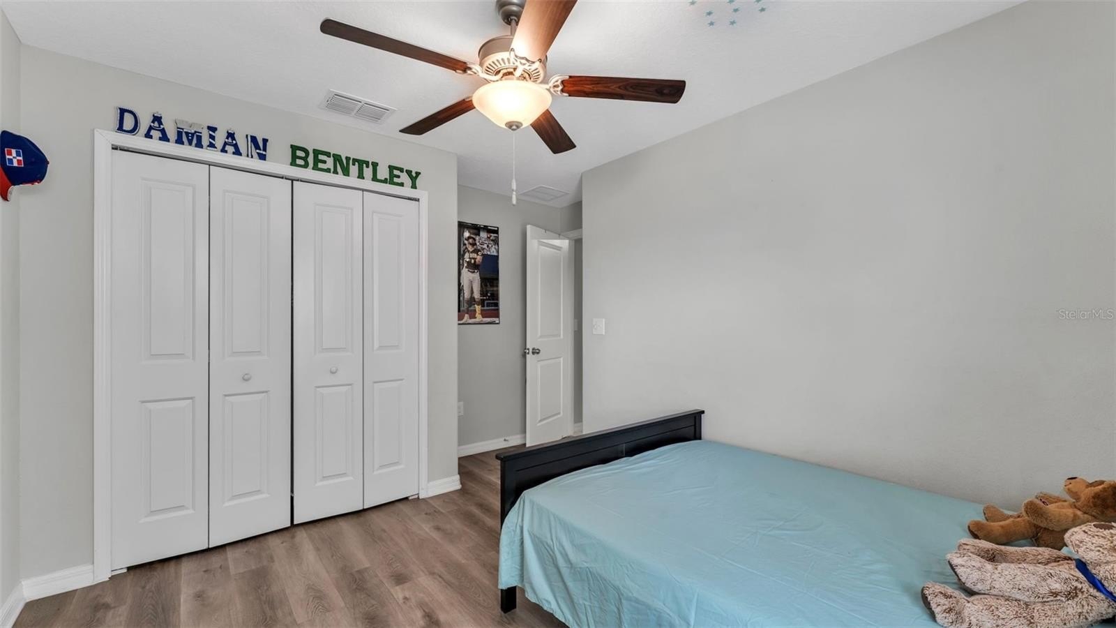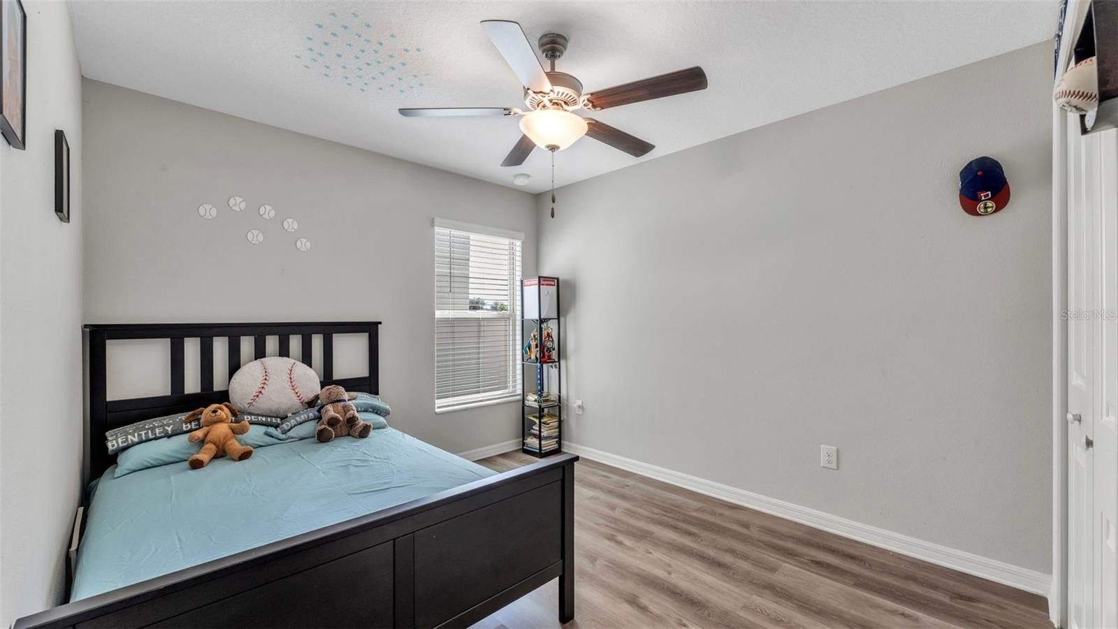 Welcome home! This home was built in 2020 and is just like new! You will immediately love the recently updated landscaping, which enhances the home's curb appeal. As soon as you walk through the front door, you are greeted by a long entrance hallway with a stylish accent wall and beautiful light fixture that brightens this space and makes sure your guests feel welcomed. Brand new vinyl plank flooring is found in all bedrooms except the primary. This flooring ensures easy maintenance and durability. Each bedroom is also equipped with already installed ceiling fans and spacious closets. The living area provides the perfect place for entertaining family and friends. The open concept ensures you will always feel at home in this space and that your guests always feel welcomed. Also included in the living area is a beautiful accent wall, which adds both character and warmth. The kitchen boasts dark cabinetry, a large kitchen island, and plenty of counter space, making it the perfect place for cooking and entertaining. Blinds are installed throughout the home for both convenience and privacy. The primary bedroom is very spacious and features an en-suite bathroom with a double-sink vanity, private water closet, huge walk-in closet, plus an additional linen closet. This home is ideally located just a few houses down from the sidewalk that leads directly to the community pool, playground, and dog park, offering easy access to the community's amenities. Not only is this house truly amazing, but so is the community! The Riverstone community features sidewalks for taking strolls, TWO community pools, playgrounds, benches along the lakes/ponds, a clubhouse, and even… a DOG park! Riverstone is a highly desirable community in a great location! It is about 2 miles from Publix and close to Lakeside Village as well. Residents of the community always look forward to the annual SUN 'n FUN airshow that takes place across the street. Being able to watch the airshow in the comfort of your own yard is definitely a major perk that always brings the community together. Call today to make this house your home!
