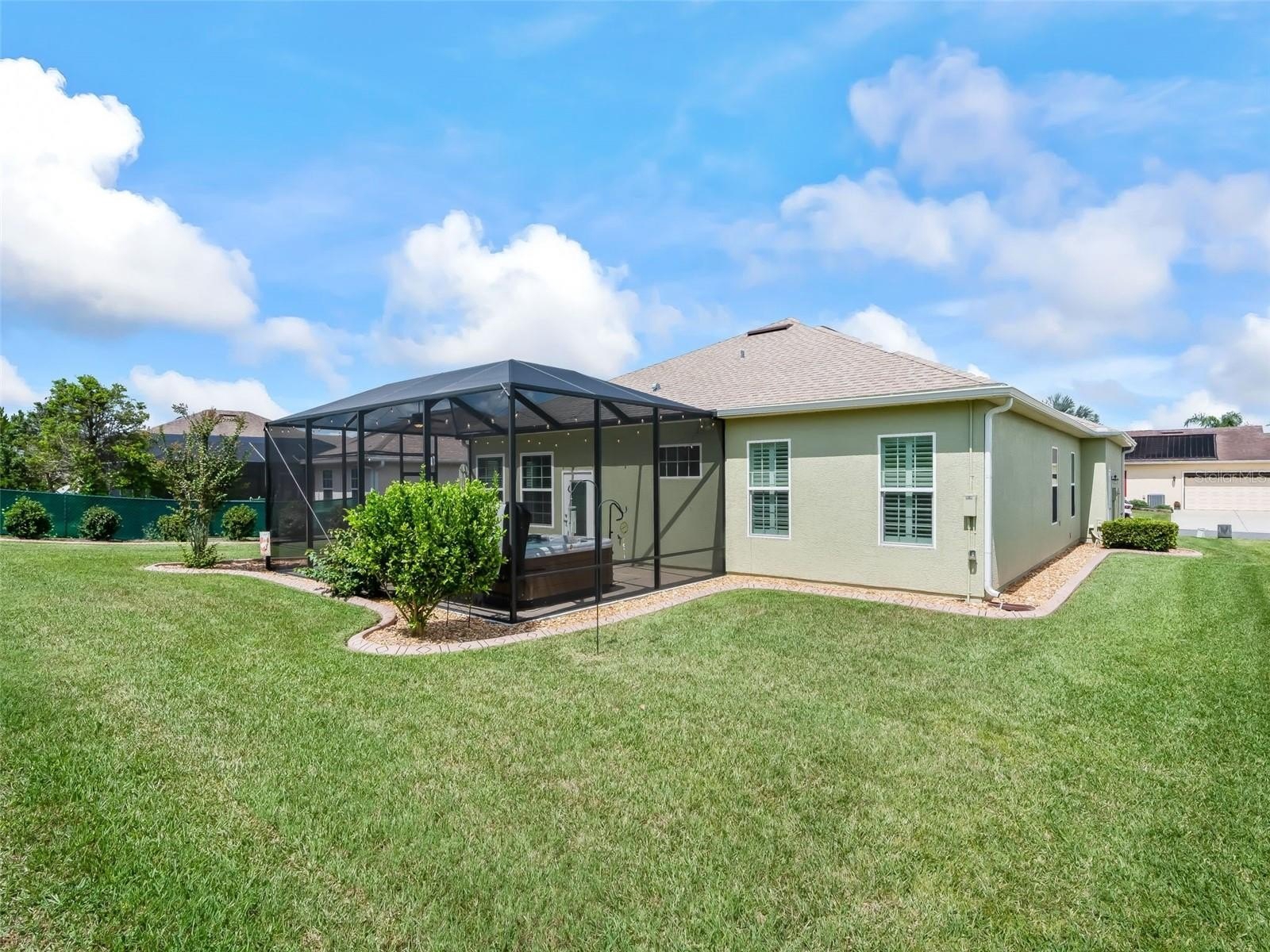 This highly desirable 2017 Hickory model in North Valley II features 3 bedrooms all with closets, tall ceilings, 2 full baths, an oversized garage and other features which makes this a perfect Florida home in a highly desirable area in the commmunity. The open floor plan offers a great open kitchen, granite counters, plantation shutters, tall cabinetry, tile floors, and newer LVP flooring in the bedrooms. The kitchen is designed with stainless steel appliances, soft-close cabinetry with a lazy Susan, tile backsplash, breakfast bar, island, oversized pantry, and a vented microwave. The spacious primary ensuite offers a tray ceiling, while the formal dining room also highlights a tray ceiling for additional architectural detail. This is one of the most desirable floor plans in Stonecrest!