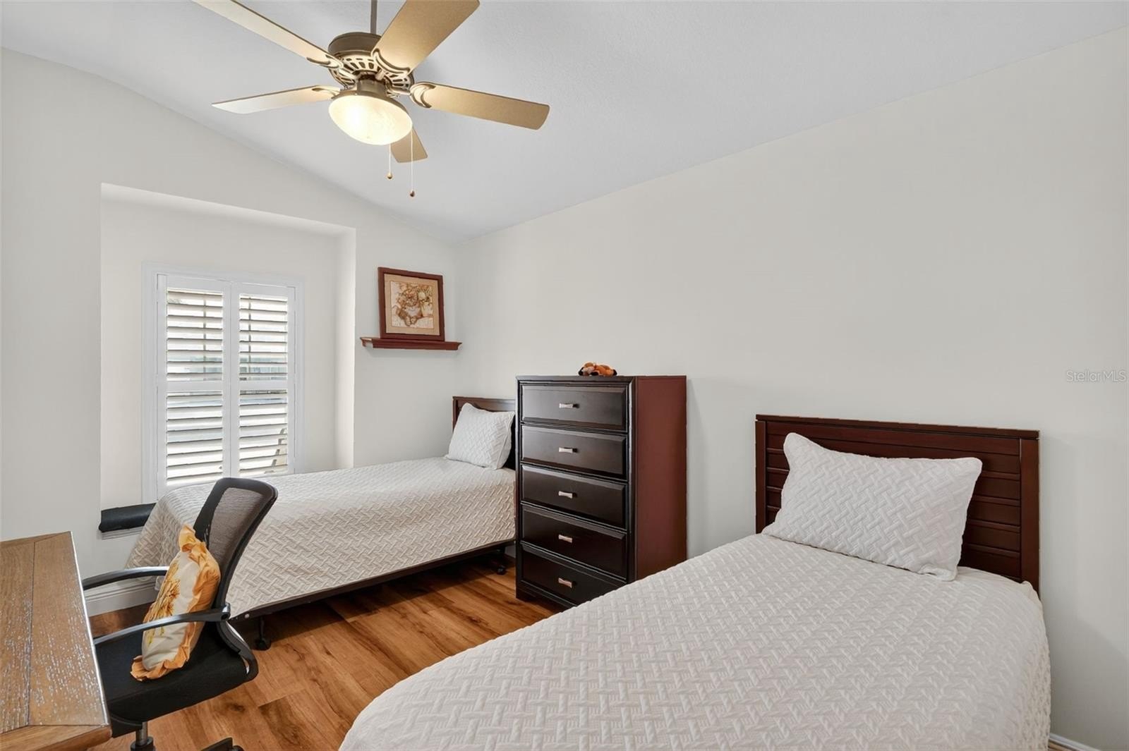 Some interior features include laminate flooring throughout, plantation shutters, and stainless-steel appliances.