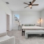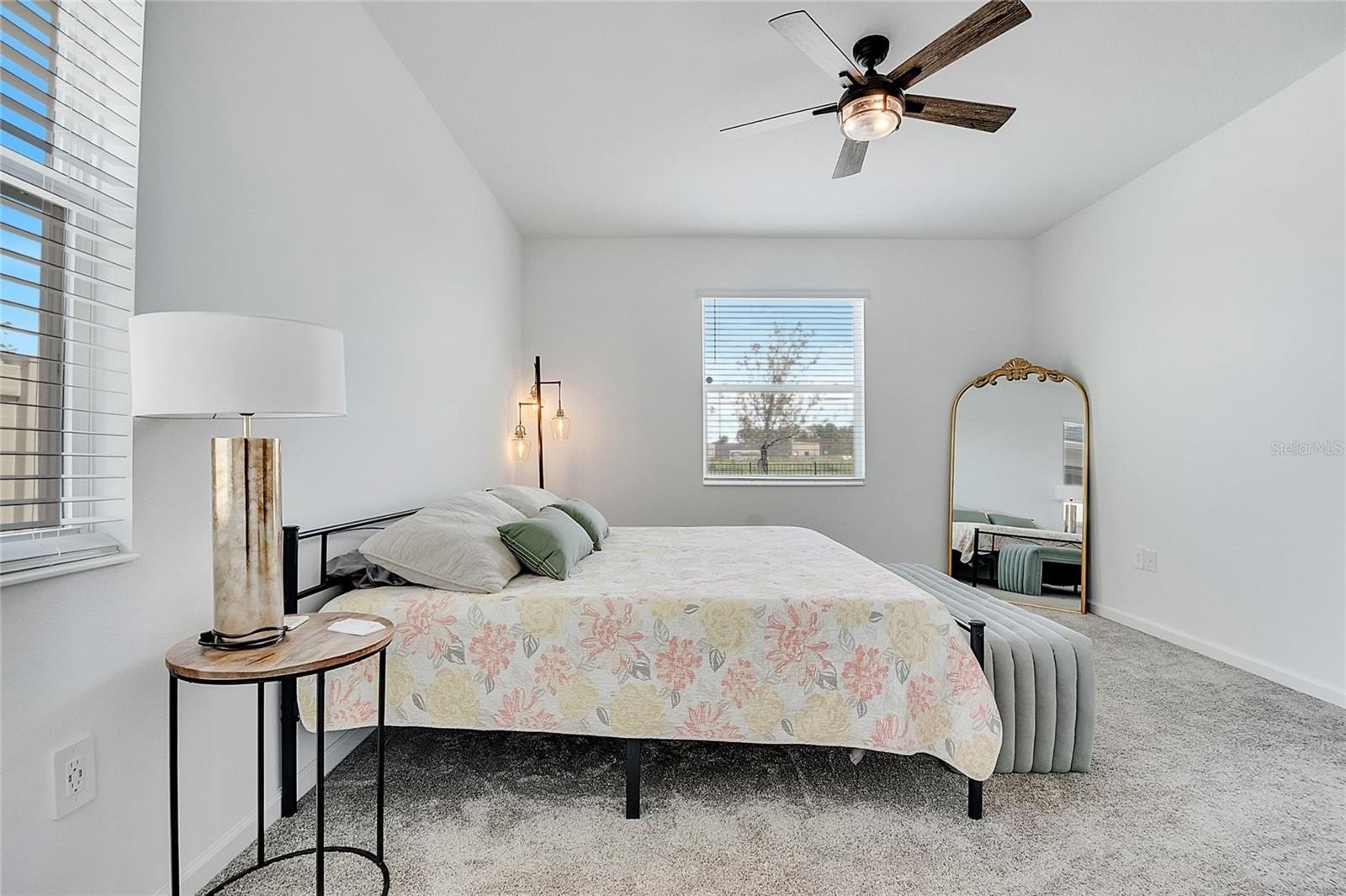 Step inside to an inviting open floor plan enhanced by sleek tile flooring throughout the main living areas, with carpeted bedrooms for added comfort. Designed with modern living in mind, this home also includes blinds throughout and high-quality finishes that truly set it apart. Ceiling fans are thoughtfully placed in every room, ensuring year-round comfort.