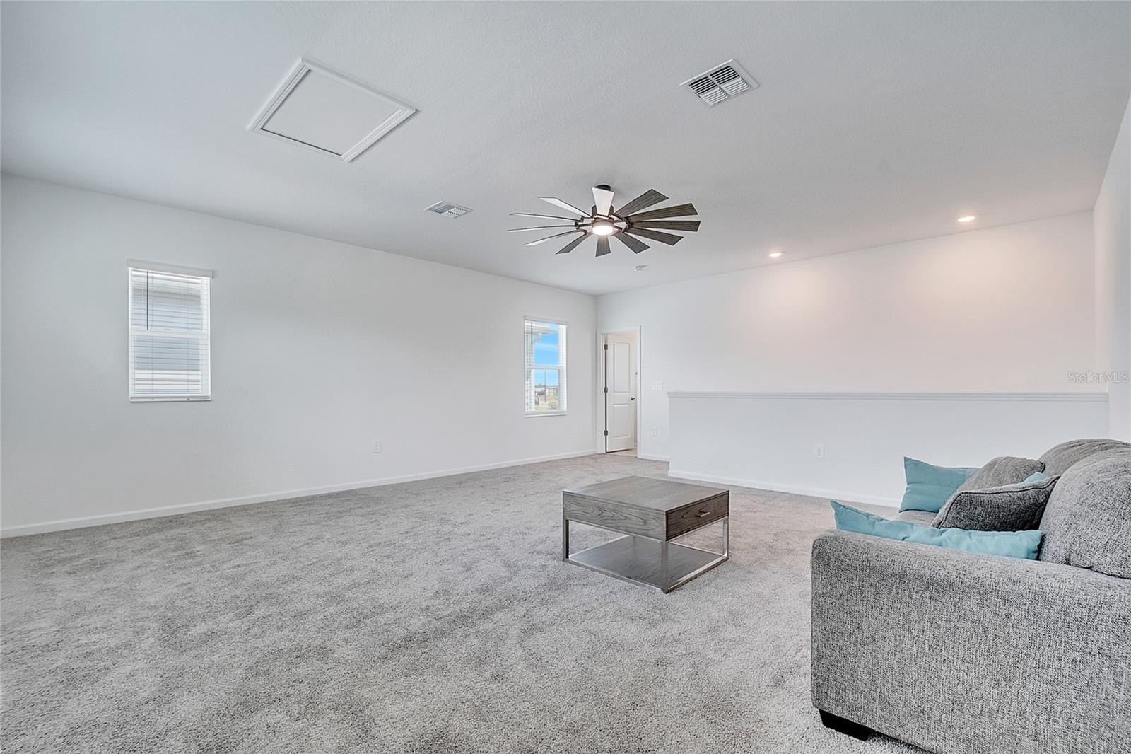 Upstairs, a versatile loft with a full bath offers a perfect retreat for guests, a playroom, or a home office.