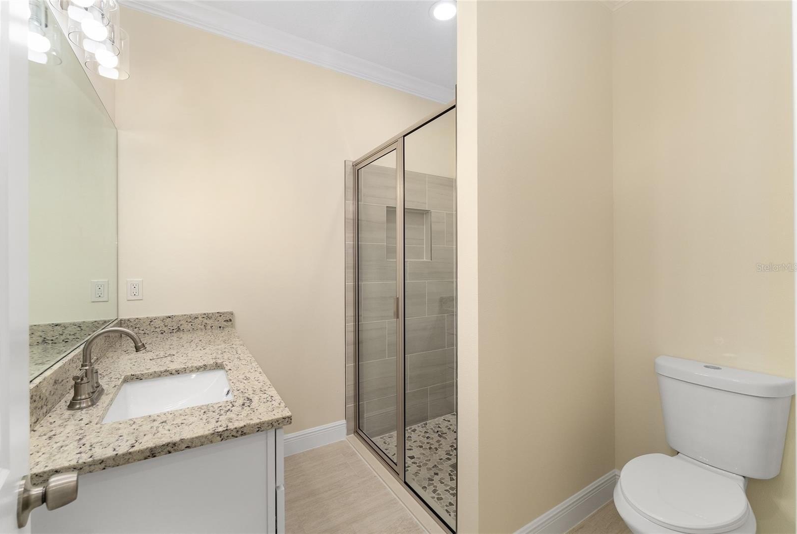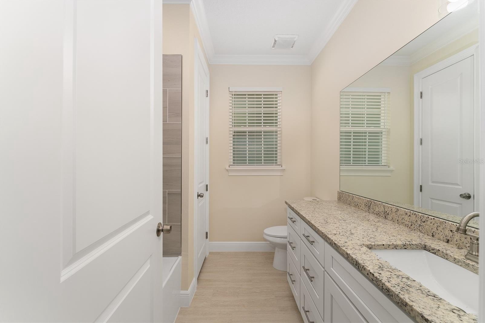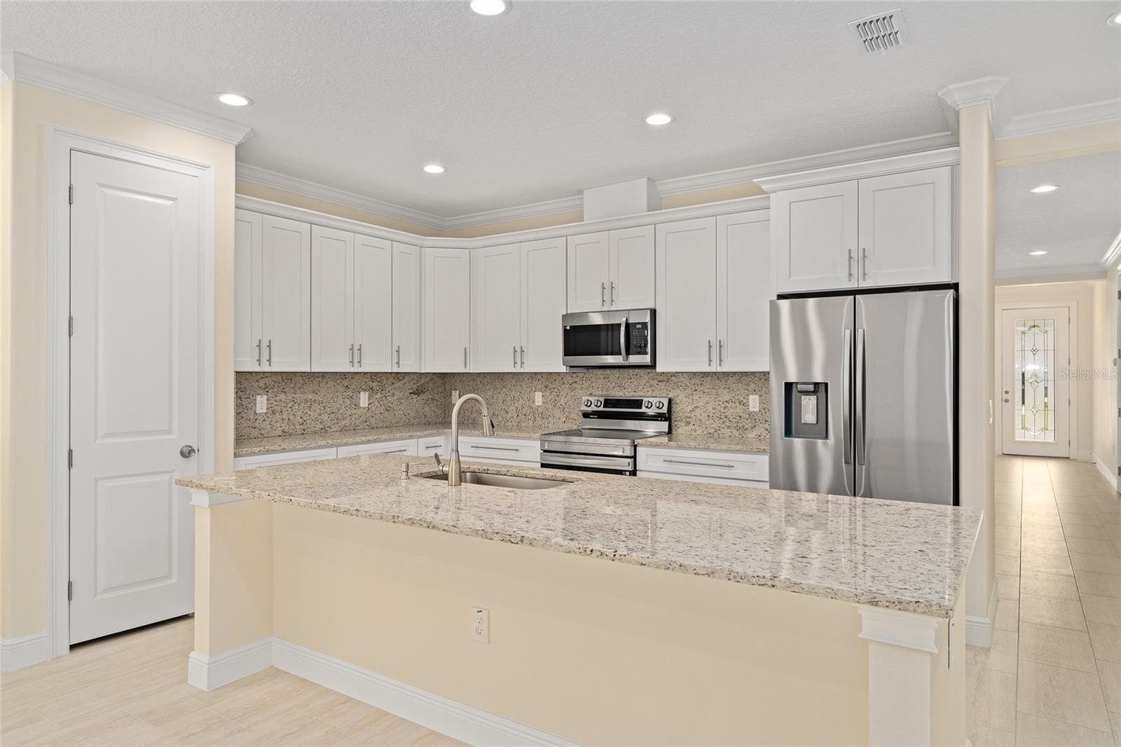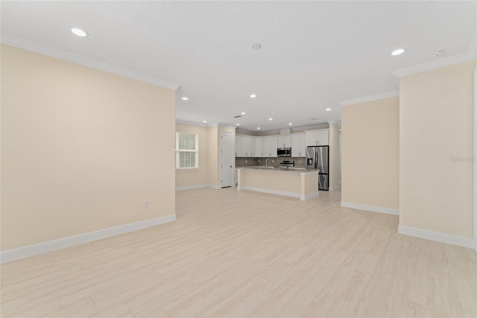 granite countertops that elevate the look and feel of the home. The kitchen seamlessly connects to the dining and