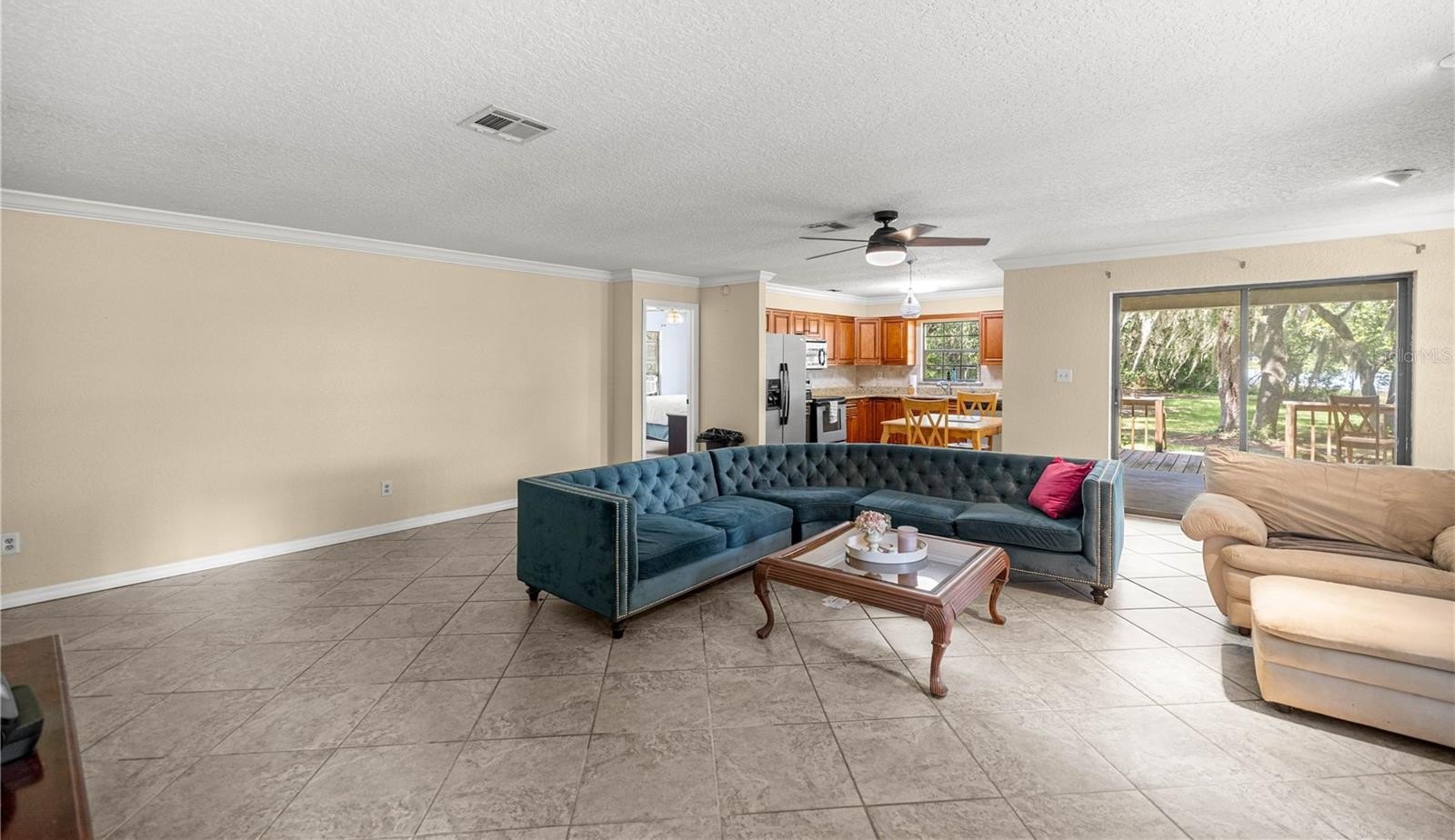 A converted garage bonus room with an oversized closet adds flexibility—ideal as a game room, man cave, or guest suite. The indoor laundry room (washer and dryer included) and durable flooring—ceramic tile throughout the main living area and luxury wood-look tile in the bonus room—add both comfort and convenience.