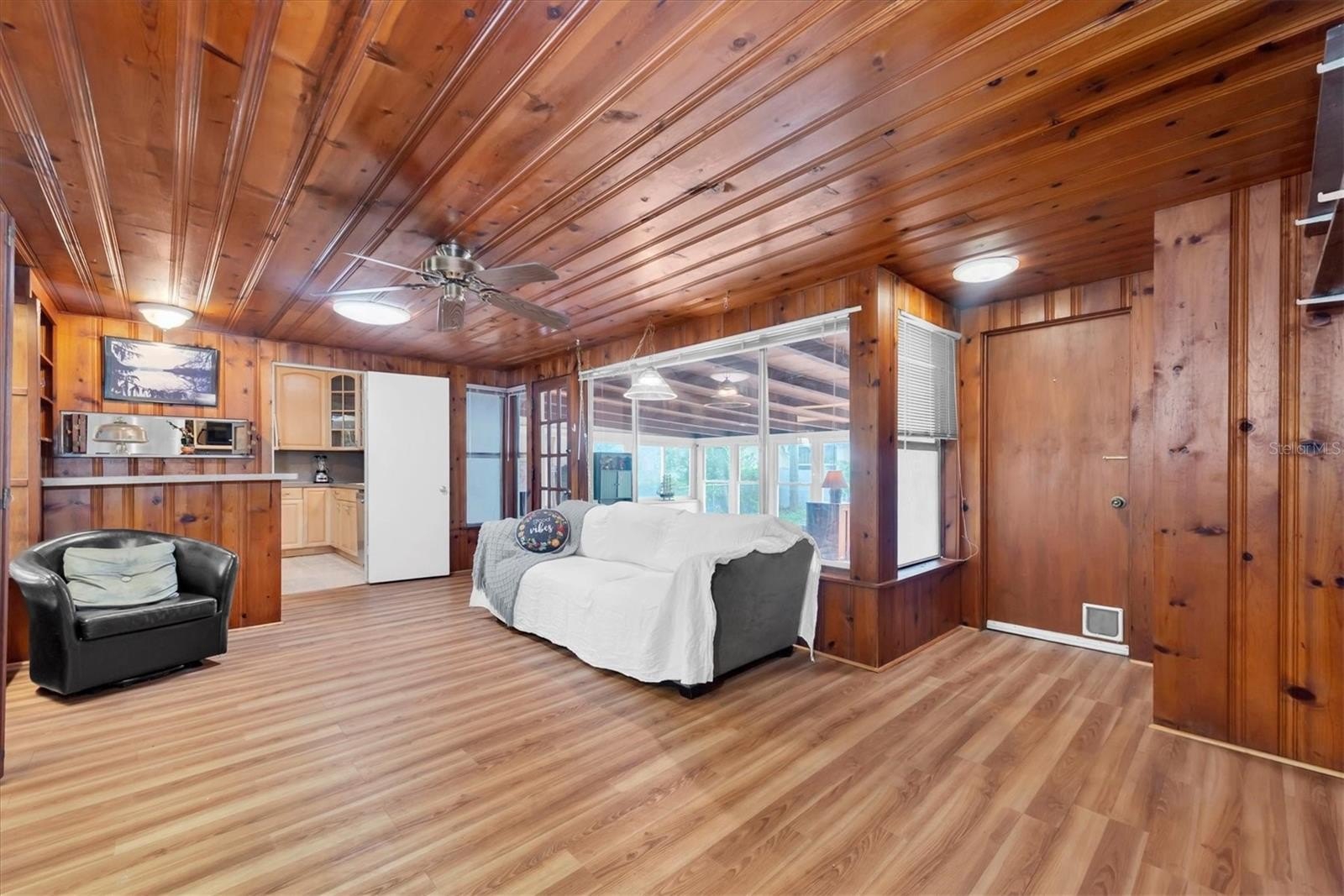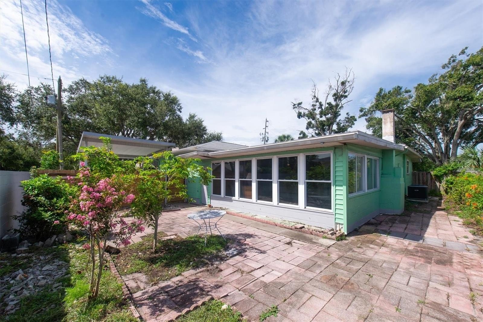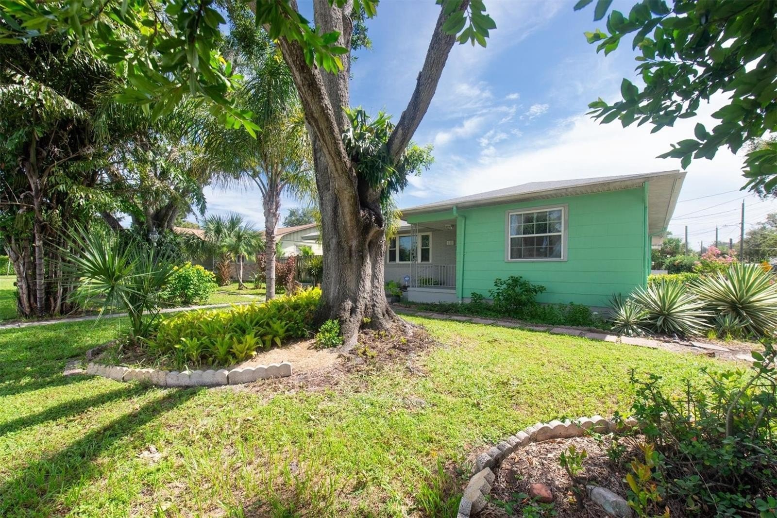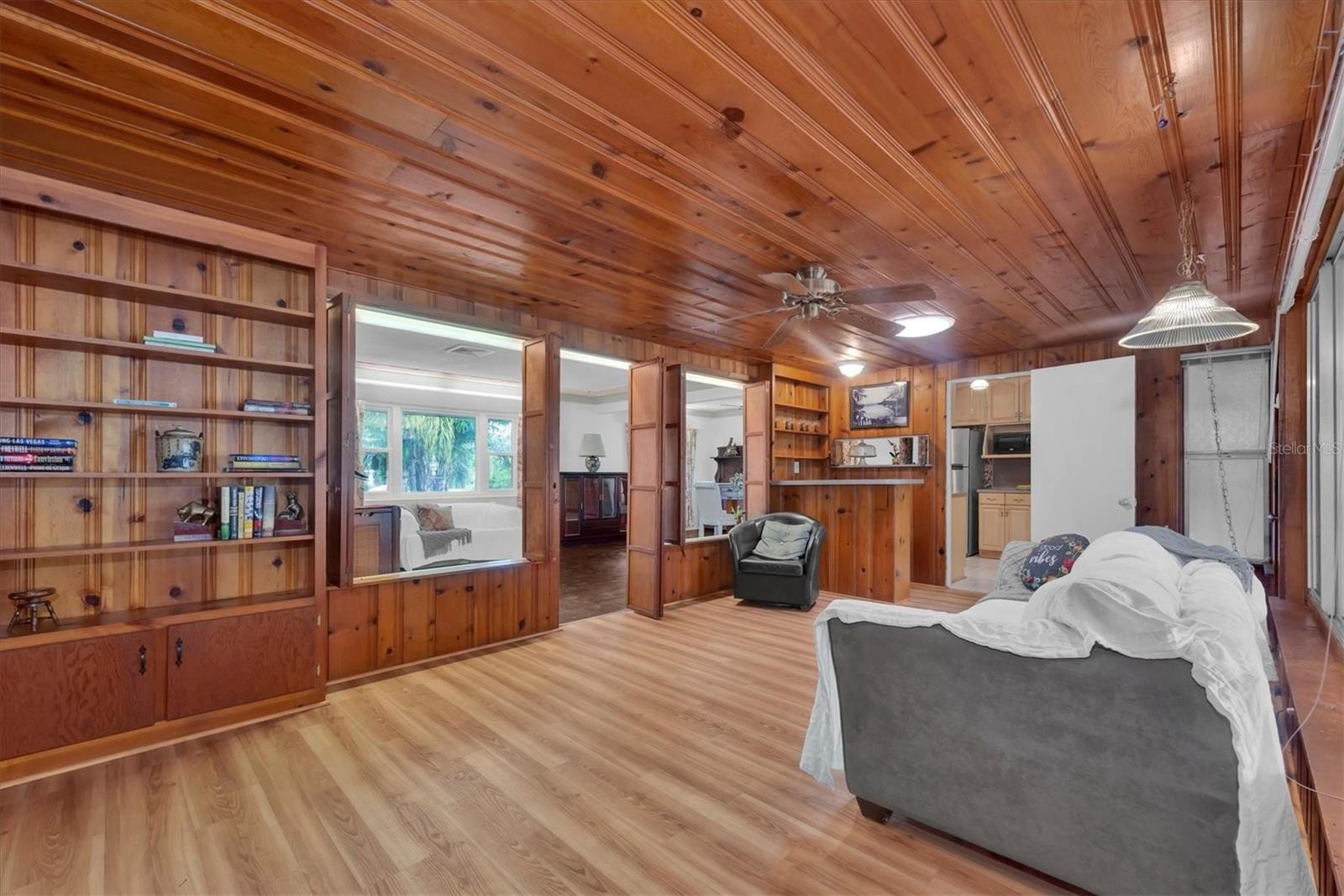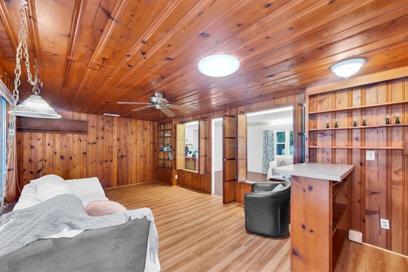 Welcome, dreamers and home-seekers, to a sun-kissed treasure from 1952! This captivating 2-bedroom, 1-bathroom, 1,316-square-foot gem features a garage and carport. Located in the highly desirable Central Park neighborhood. The wood floors and walls give this home character and charisma! In the living room and dining room combo, you will find 1950s curved ceiling architecture, which adds rich elegance, making it the perfect room for entertainment. In the family room, there is beautiful natural wood throughout, with a built-in wood bar and shelves. This is the ideal spot for displaying family heirlooms or stocking your favorite spirits. The home features a 23 x 18 Florida room that offers flexible space for various uses. This features large, double-pane vinyl windows that provide an abundance of natural light, ideal for Florida living. All this, with no HOA fee or Flood Insurance to contend with. All these amenities are located a short distance from Central Avenue, which has a variety of St. Petersburg spots, including renowned restaurants, craft beer bars, and famous burger joints. Also opening in 2025, The Central Park Food Mall, this 28,000sq ft destination will feature ten restaurants and other culinary hot spots.