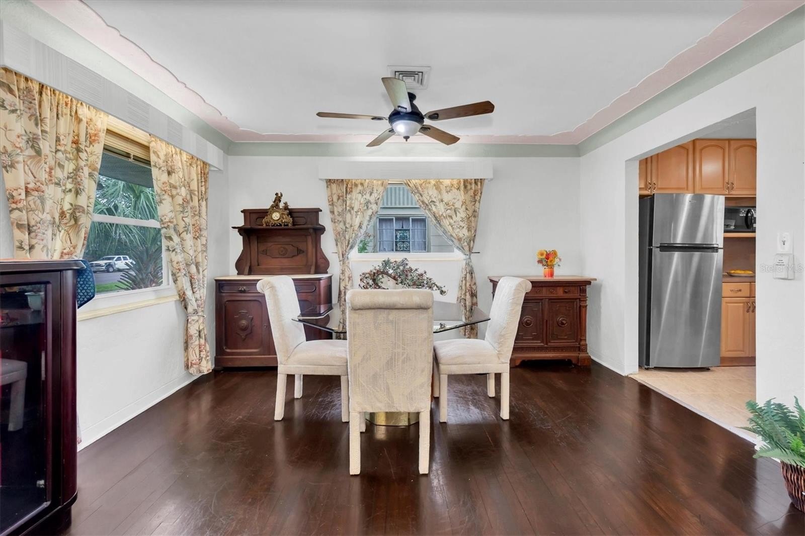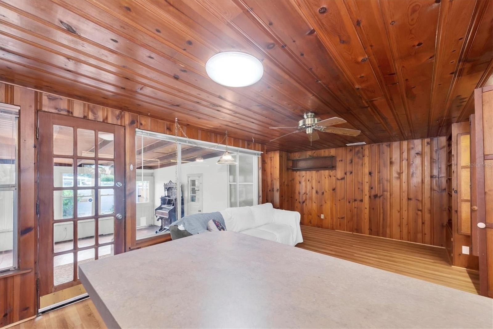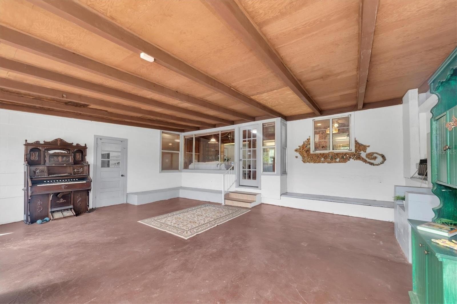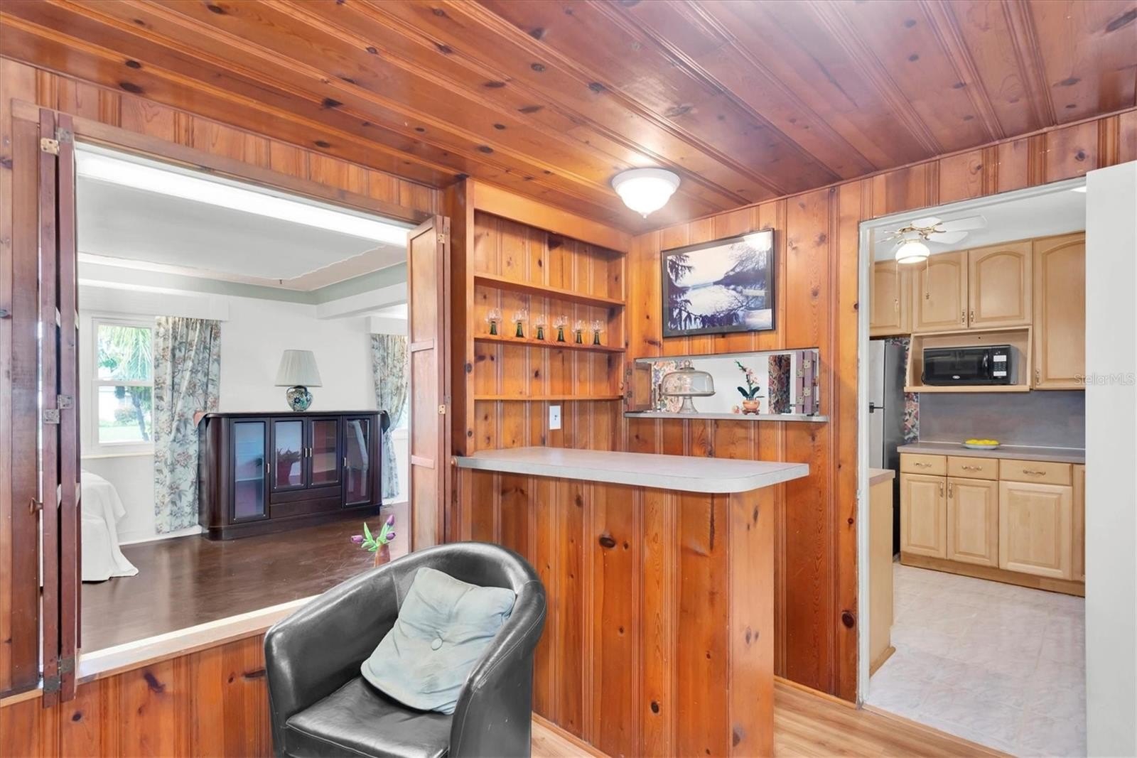 Welcome, dreamers and home-seekers, to a sun-kissed treasure from 1952! This captivating 2-bedroom, 1-bathroom, 1,316-square-foot gem features a garage and carport. Located in the highly desirable Central Park neighborhood. The wood floors and walls give this home character and charisma! In the living room and dining room combo, you will find 1950s curved ceiling architecture, which adds rich elegance, making it the perfect room for entertainment. In the family room, there is beautiful natural wood throughout, with a built-in wood bar and shelves. This is the ideal spot for displaying family heirlooms or stocking your favorite spirits. The home features a 23 x 18 Florida room that offers flexible space for various uses. This features large, double-pane vinyl windows that provide an abundance of natural light, ideal for Florida living. All this, with no HOA fee or Flood Insurance to contend with. All these amenities are located a short distance from Central Avenue, which has a variety of St. Petersburg spots, including renowned restaurants, craft beer bars, and famous burger joints. Also opening in 2025, The Central Park Food Mall, this 28,000sq ft destination will feature ten restaurants and other culinary hot spots.