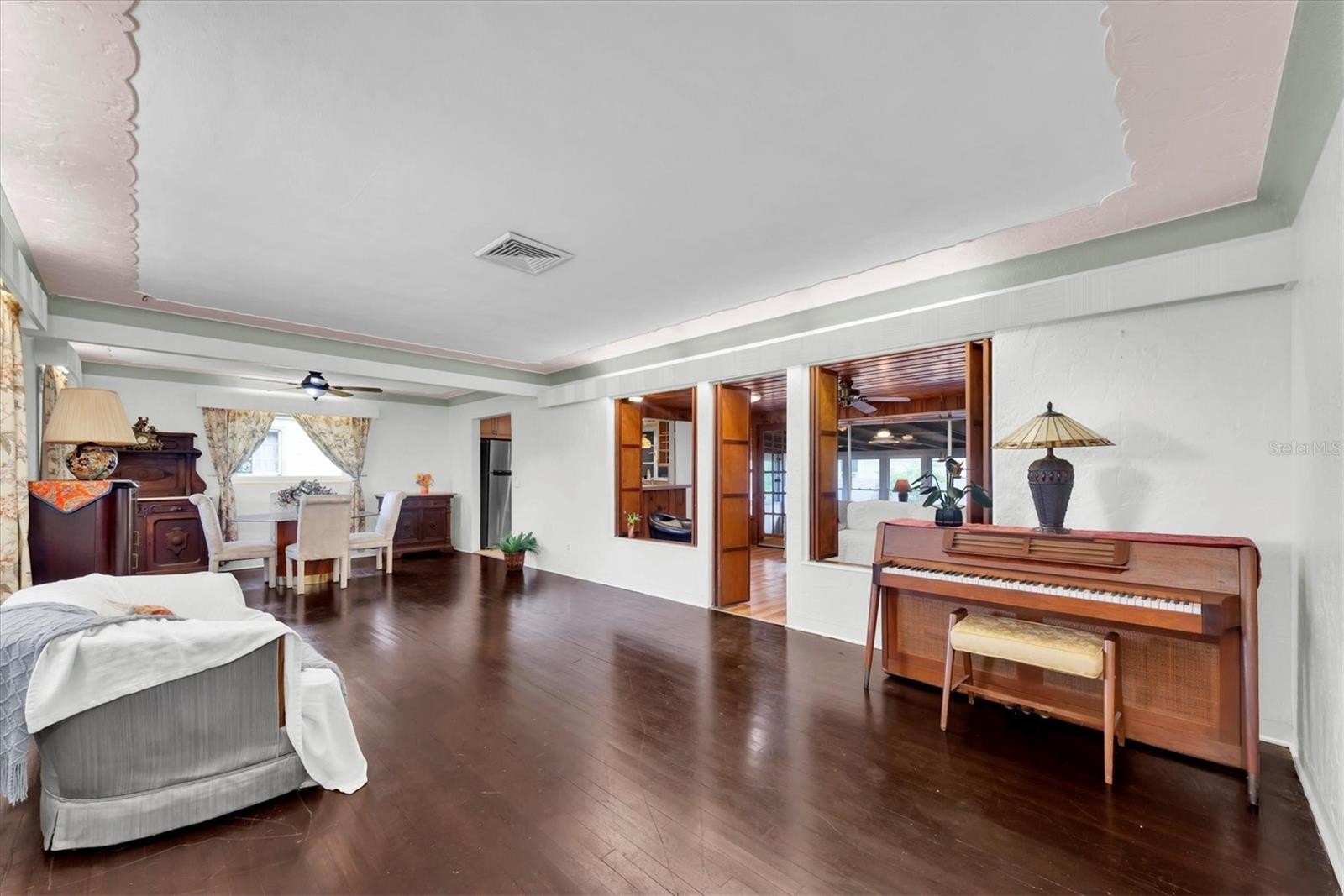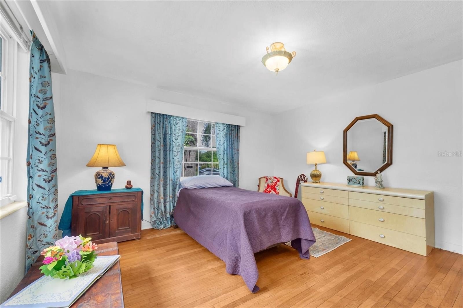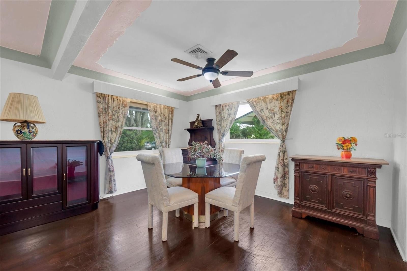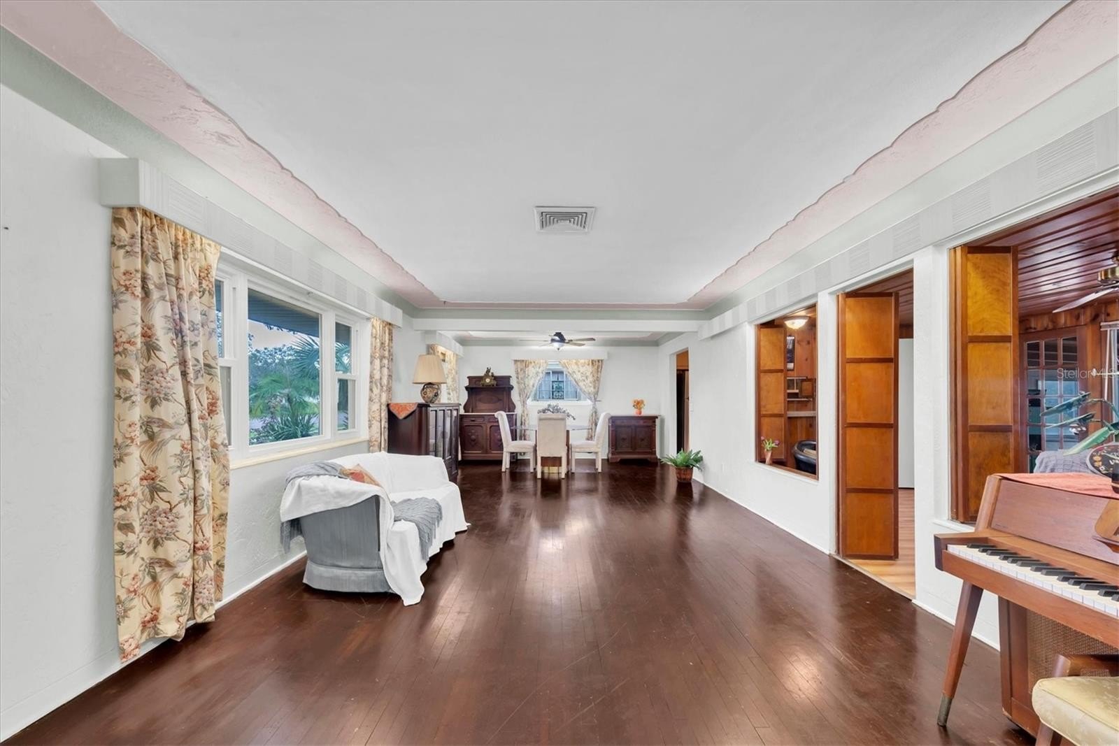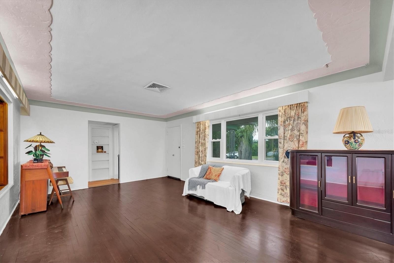 Welcome, dreamers and home-seekers, to a sun-kissed treasure from 1952! This captivating 2-bedroom, 1-bathroom, 1,316-square-foot gem features a garage and carport. Located in the highly desirable Central Park neighborhood. The wood floors and walls give this home character and charisma! In the living room and dining room combo, you will find 1950s curved ceiling architecture, which adds rich elegance, making it the perfect room for entertainment. In the family room, there is beautiful natural wood throughout, with a built-in wood bar and shelves. This is the ideal spot for displaying family heirlooms or stocking your favorite spirits. The home features a 23 x 18 Florida room that offers flexible space for various uses. This features large, double-pane vinyl windows that provide an abundance of natural light, ideal for Florida living. All this, with no HOA fee or Flood Insurance to contend with. All these amenities are located a short distance from Central Avenue, which has a variety of St. Petersburg spots, including renowned restaurants, craft beer bars, and famous burger joints. Also opening in 2025, The Central Park Food Mall, this 28,000sq ft destination will feature ten restaurants and other culinary hot spots.