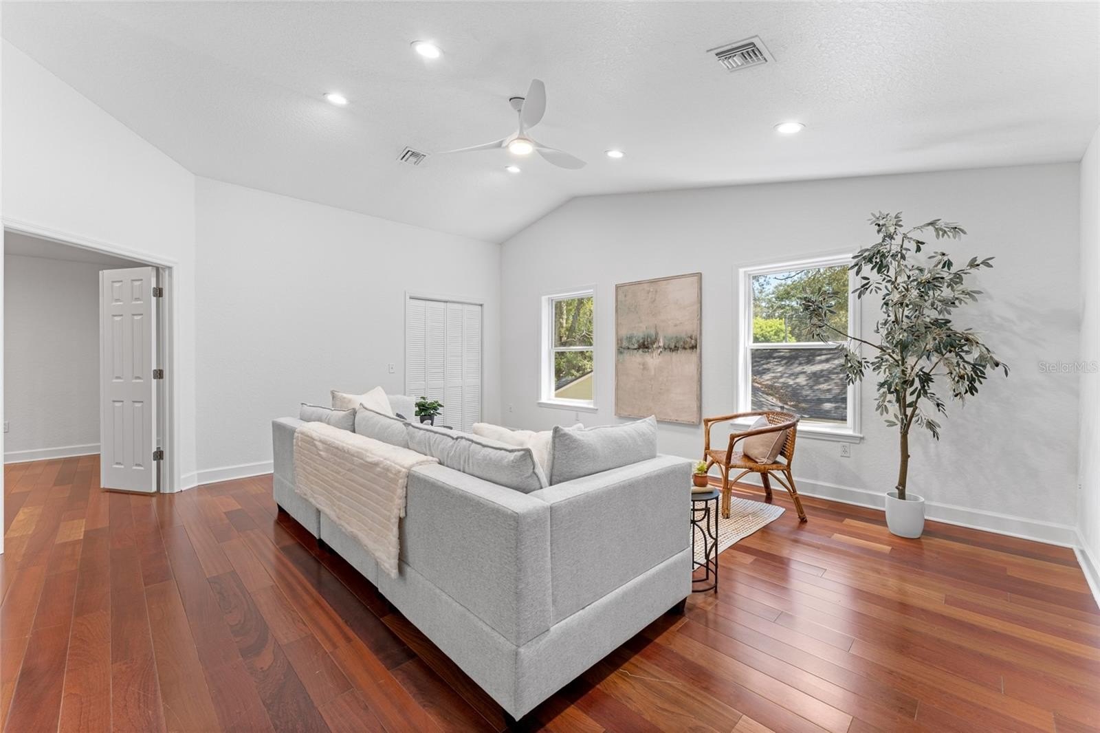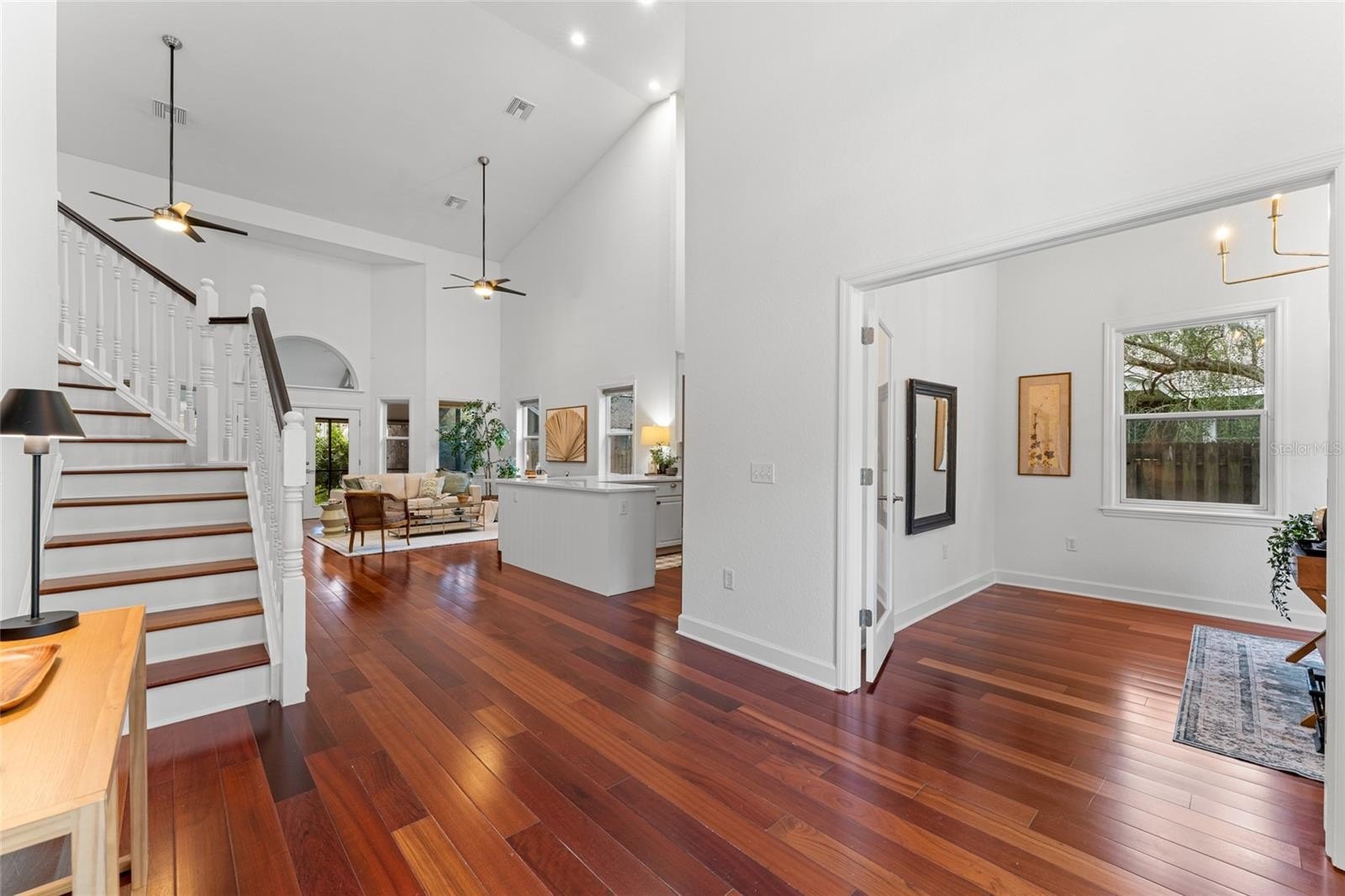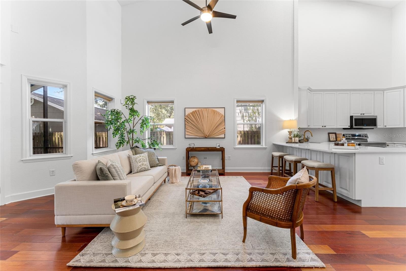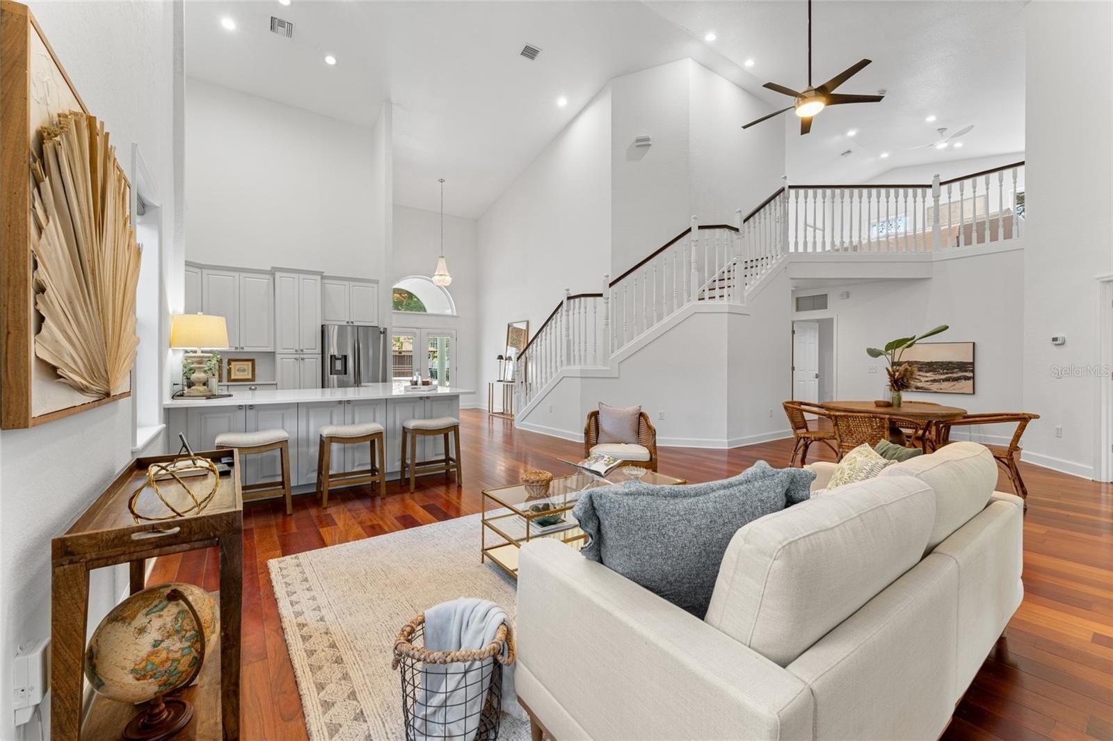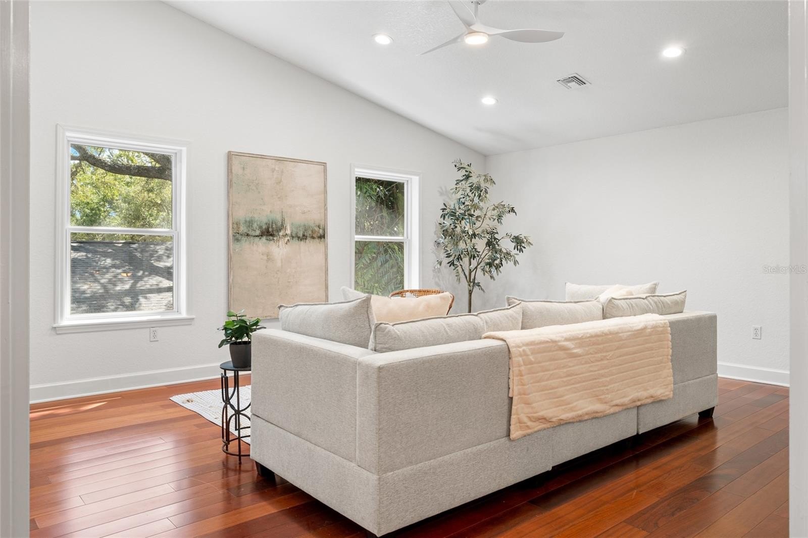 Nestled in the heart of highly sought-after Bayshore Beautiful neighborhood, this expansive South Tampa residence spans over 3,200 sq ft on a generous 70x120 lot, offering both privacy and presence in a premier location. Open the elegant double glass doors to be greeted by soaring cathedral ceilings, rich hardwood flooring and an abundance of natural light. The open layout offers multiple living and dining areas, perfect for both entertaining and everyday comfort. Thoughtfully updated throughout, this residence blends timeless charm and fresh designer finishes. The updated kitchen is open to all of the living spaces, has quartz countertops and backsplash, real wood cabinetry, ss appliances and bronze hardware. All bedrooms are located on the first floor with split floor plan. Primary bedroom has french doors giving you access to screened in back porch, double walk in closets, ensuite bathroom with private water closet, linen closet, massive shower and double vanity. Secondary bedroom has updated ensuite bathroom and ample closet space. Bedroom 3 & 4 are spacious and in close proximity to the updated 3rd bathroom. Upstairs offers an additional loft with private insulated room that can be used as home theatre, 2nd home office, workout room, playroom, library, (easy convert to 5th bedroom), etc. Your imagination is the limit! Outside, enjoy a vaulted screened in porch, over looking plenty of backyard space with room for a pool. The exterior construction of the home is cement based Hardie board siding to resist moisture and pests. Originally built in 1943, home was completely rebuilt in 2001, and beautifully updated 2020-2025. This special home is only a few blocks from Bayshore Boulevard, offering easy access to scenic waterfront paths, parks, award winning restaurants and boutique shopping. Call to schedule your private tour of this truly special property.