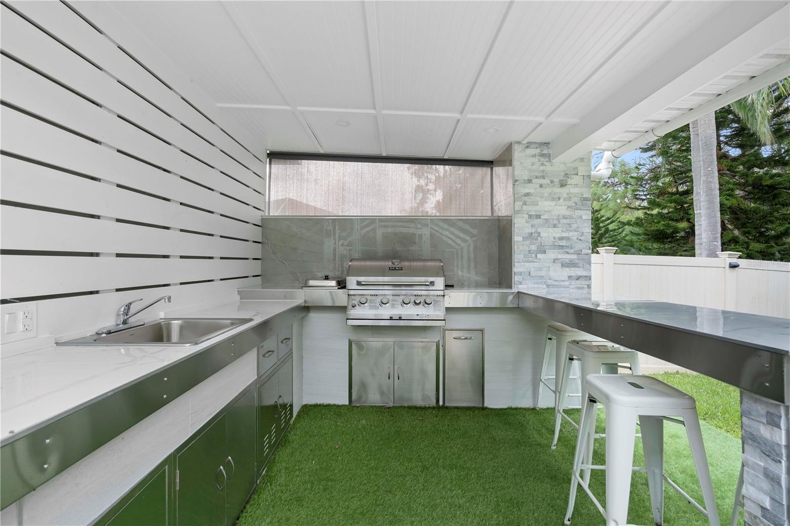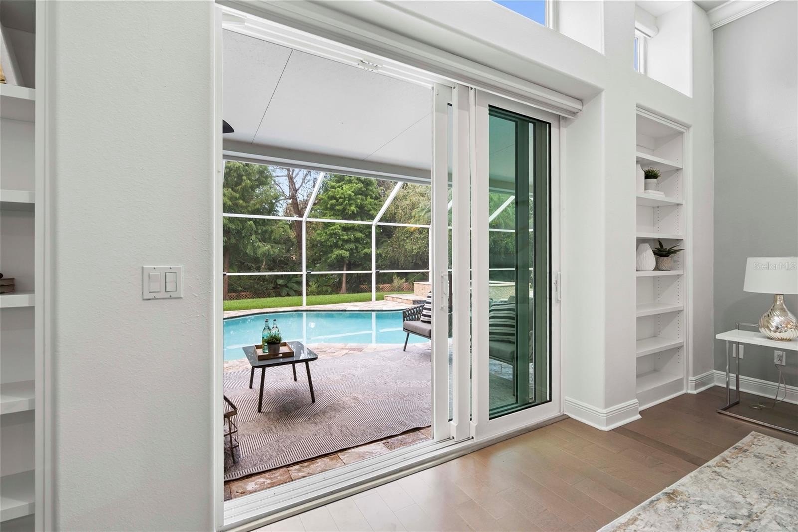 One of the four bedrooms offers the perfect remote-work or student retreat with custom built-ins, a walk-in closet, and private pool access. Outdoors, a travertine pool deck and custom outdoor kitchen (2024) set the stage for BBQs, family gatherings, and elegant entertaining—all while enjoying serene conservation views and no rear neighbors.