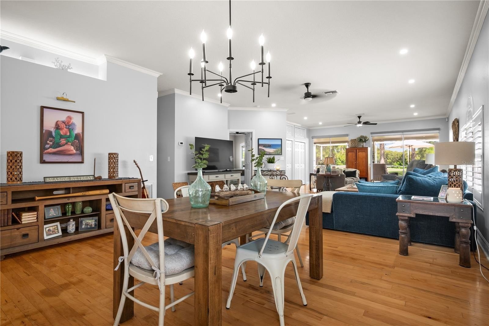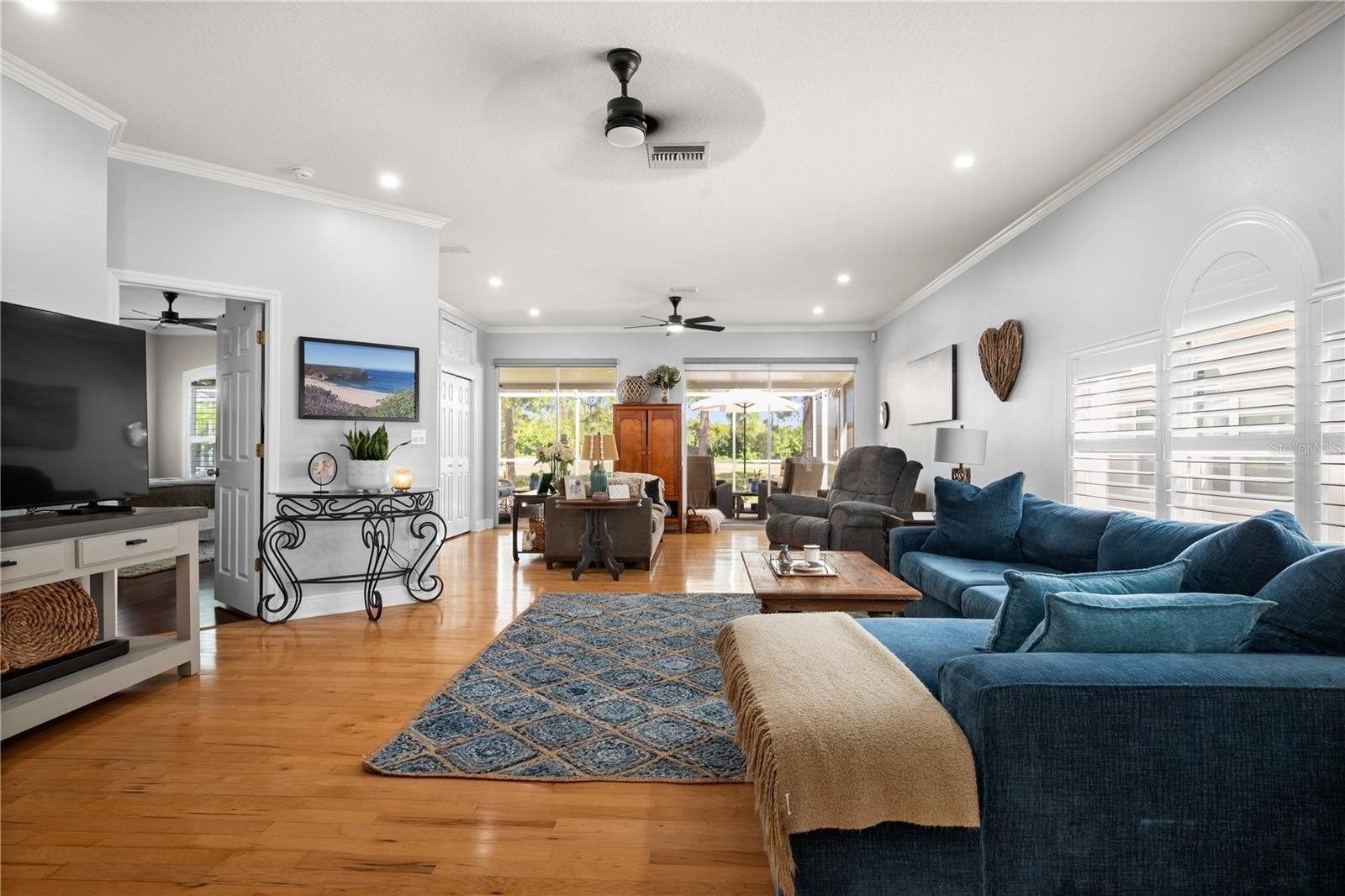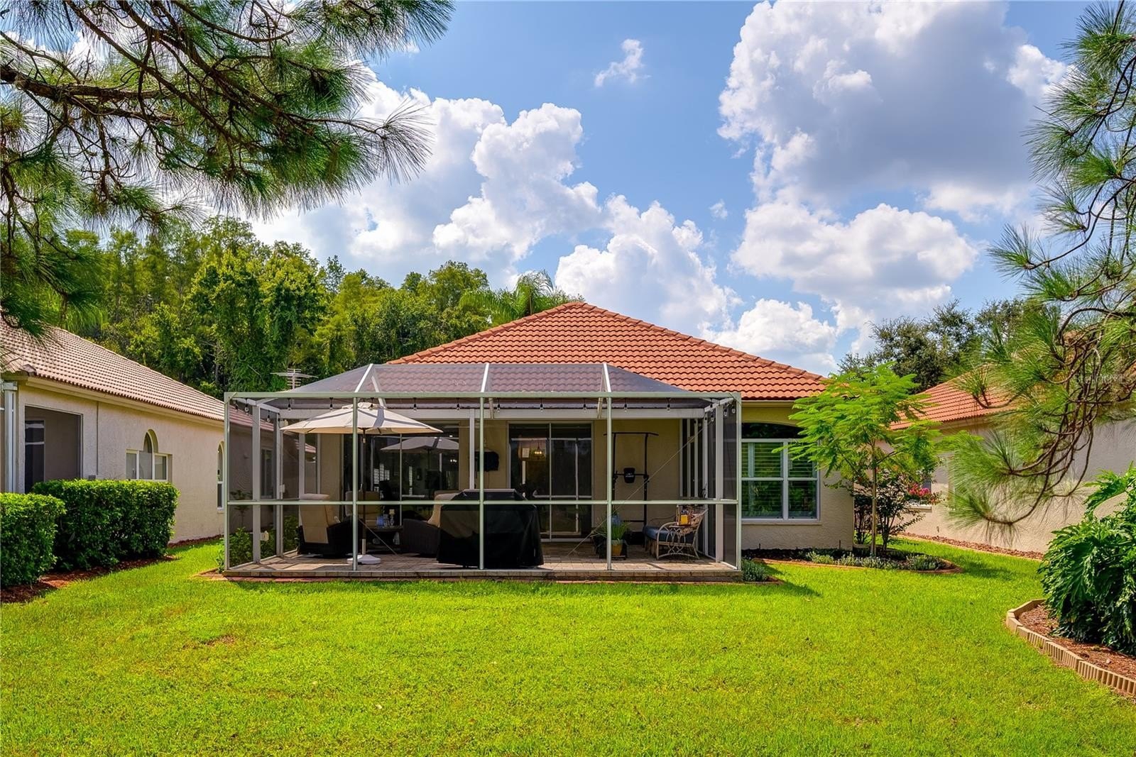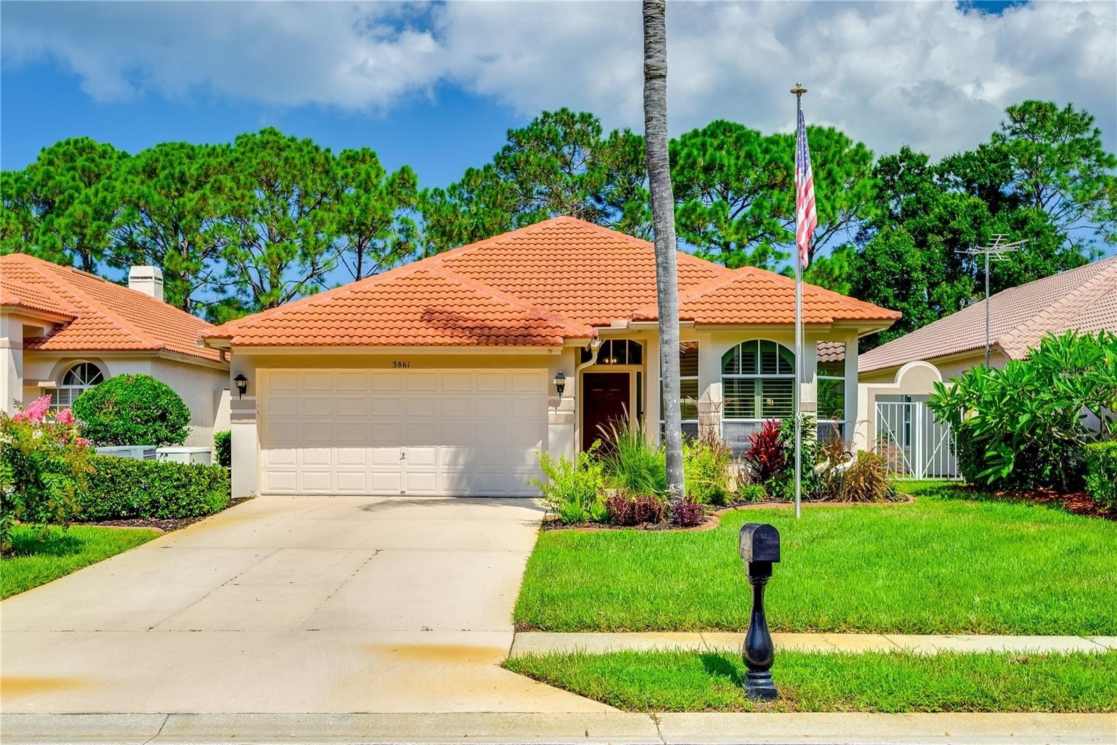 CLASSY & REMODELED HOME in the Crescent Oaks Country Club Community! Abundant wildlife from wild turkeys to deer often frequent the pristine grounds around this home, nestled on the 15th hole of the 18-hole championship Crescent Oaks Golf Course. Spacious and bright, the interior features a REMODELED KITCHEN, Plantation Shutters and double Sliders that open to a newly screened-in patio. The setting is ideal for entertaining and relaxing alike. Freshly painted with STUNNING WOOD FLOORS in the main living area add to the allure of this picture perfect space to enjoy your life. With the primary bedroom that offers a relaxing GARDEN TUB, a separate shower and a walk-in closet with custom shelving, along with a double vanity and a private toilet area and you have just landed in paradise! There are a host of modern conveniences that come with this home along with a new GENERAC WHOLE HOME GENERATOR - ensuring that you’re never without power. This home has never received water intrusion or flooded. And it comes with a transferable flood policy. The INDOOR LAUNDRY comes with a newer washer and dryer and the garage features a water softener and irrigation system. This home is loaded with storage space and is just exquisite!! Other highlights are NEWER ROOF (2021) fresh exterior PAINT (2024) HVAC system (2013). No CDD fees & Low HOA fees cover lawn care, shrub trimming, maintenance, exterior water, irrigation system, exterior home painting on a rotating basis, 24-7 guard, and access to the clubhouse. * DOG FRIENDLY * The community amenities include the 18-hole championship golf course plus clubhouse, nestled in this gated community! GOLF? TENNIS? PICKLEBALL, ANYONE?