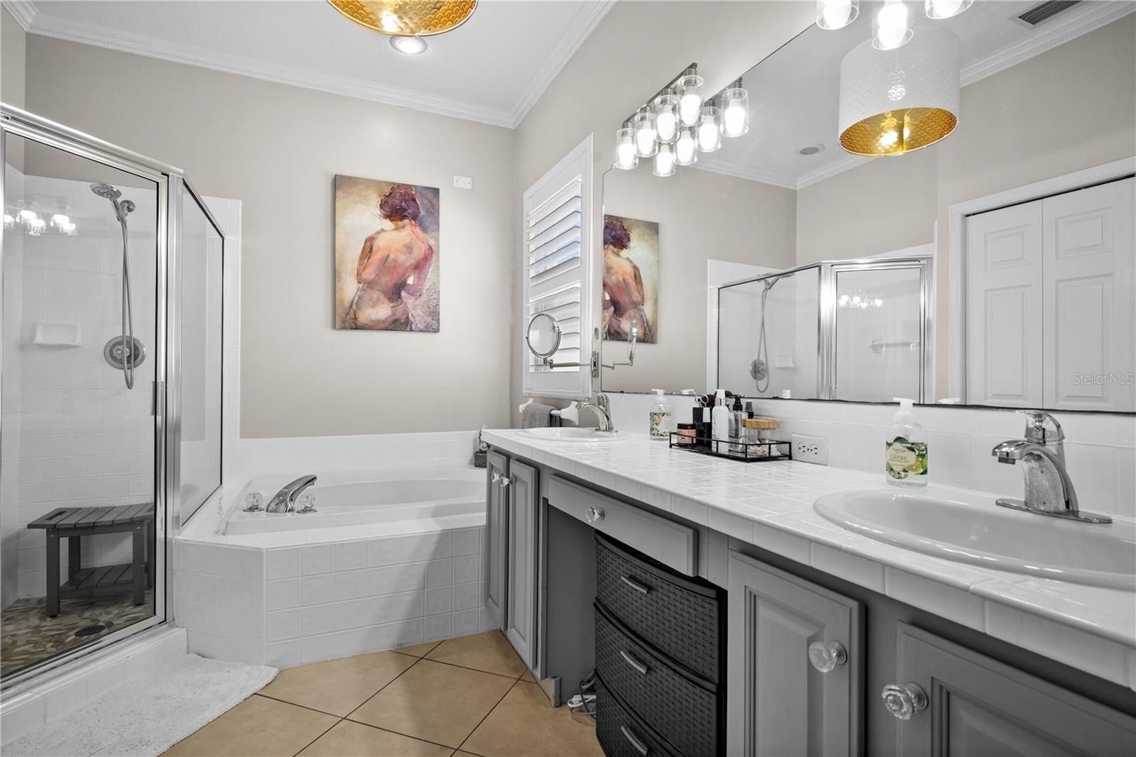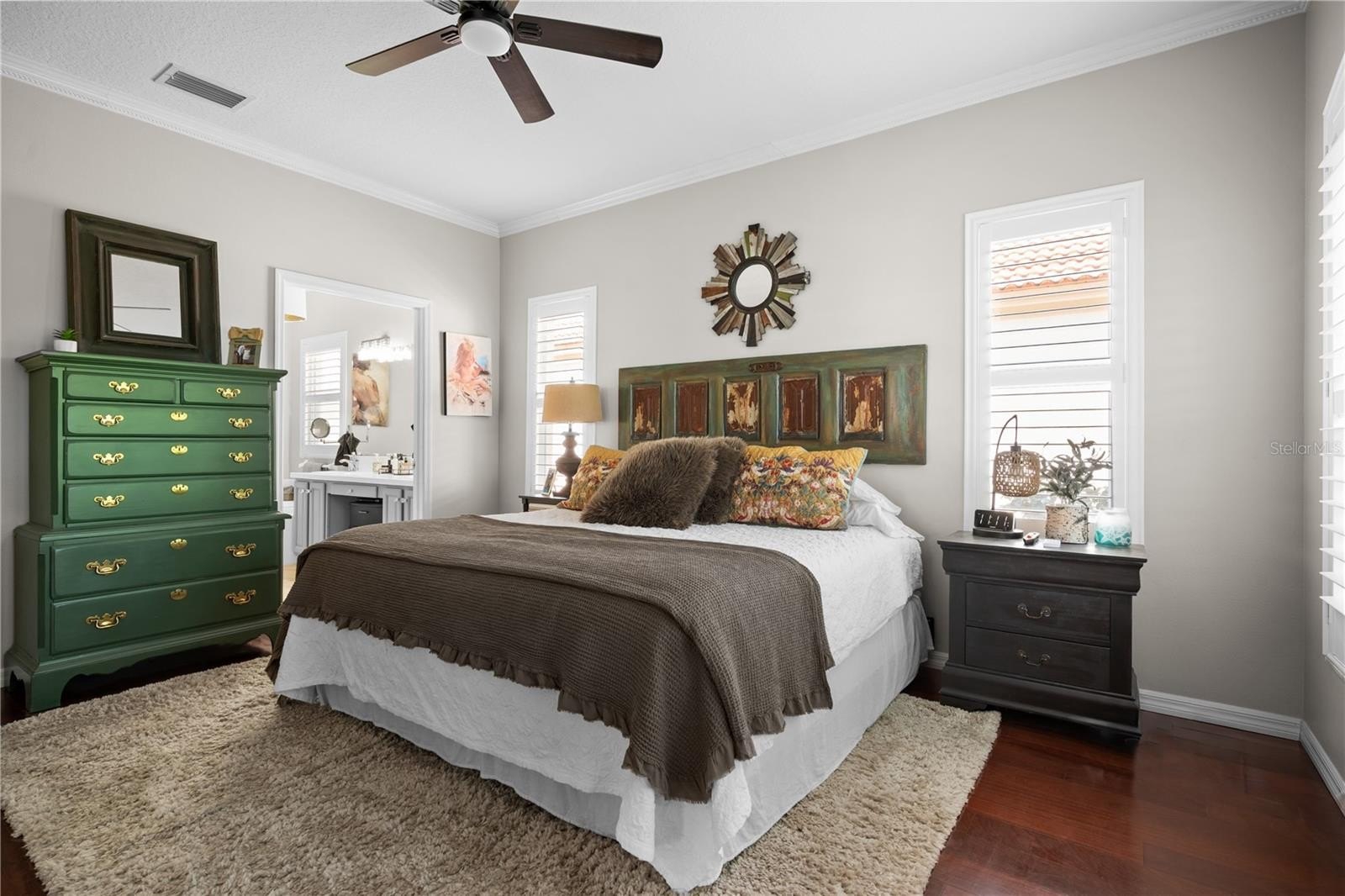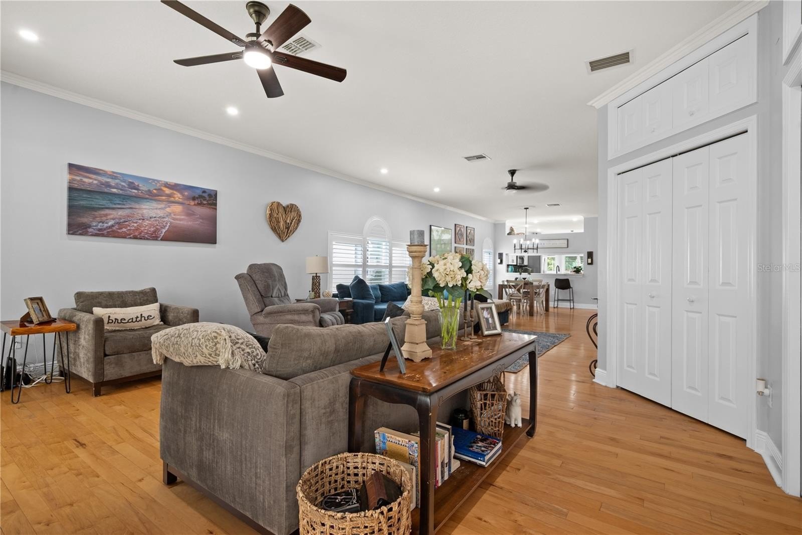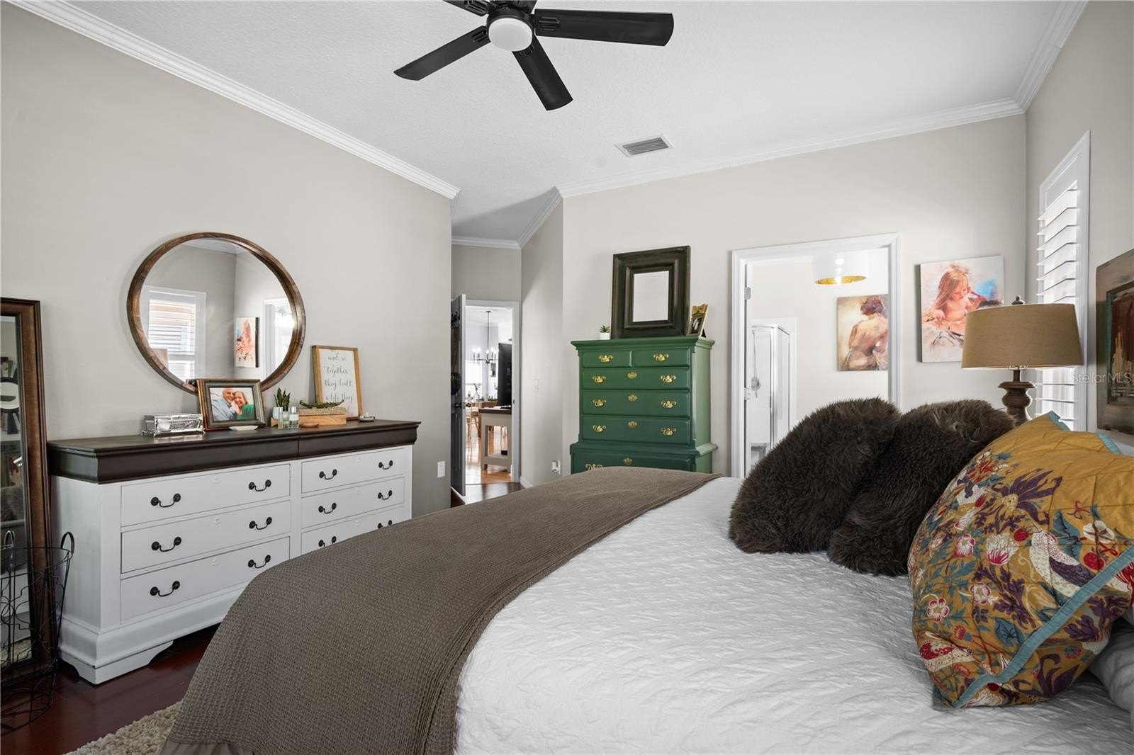 CLASSY & REMODELED HOME in the Crescent Oaks Country Club Community! Abundant wildlife from wild turkeys to deer often frequent the pristine grounds around this home, nestled on the 15th hole of the 18-hole championship Crescent Oaks Golf Course. Spacious and bright, the interior features a REMODELED KITCHEN, Plantation Shutters and double Sliders that open to a newly screened-in patio. The setting is ideal for entertaining and relaxing alike. Freshly painted with STUNNING WOOD FLOORS in the main living area add to the allure of this picture perfect space to enjoy your life. With the primary bedroom that offers a relaxing GARDEN TUB, a separate shower and a walk-in closet with custom shelving, along with a double vanity and a private toilet area and you have just landed in paradise! There are a host of modern conveniences that come with this home along with a new GENERAC WHOLE HOME GENERATOR - ensuring that you’re never without power. This home has never received water intrusion or flooded. And it comes with a transferable flood policy. The INDOOR LAUNDRY comes with a newer washer and dryer and the garage features a water softener and irrigation system. This home is loaded with storage space and is just exquisite!! Other highlights are NEWER ROOF (2021) fresh exterior PAINT (2024) HVAC system (2013). No CDD fees & Low HOA fees cover lawn care, shrub trimming, maintenance, exterior water, irrigation system, exterior home painting on a rotating basis, 24-7 guard, and access to the clubhouse. * DOG FRIENDLY * The community amenities include the 18-hole championship golf course plus clubhouse, nestled in this gated community! GOLF? TENNIS? PICKLEBALL, ANYONE?