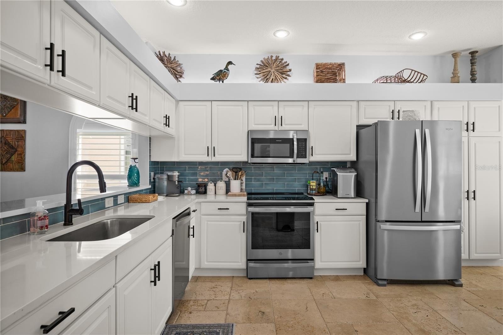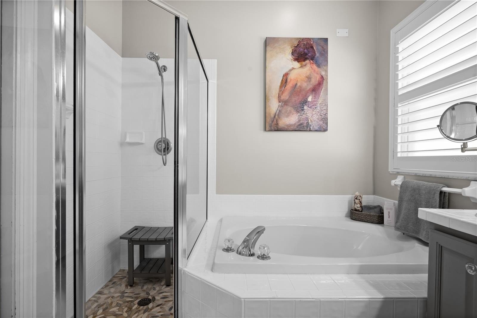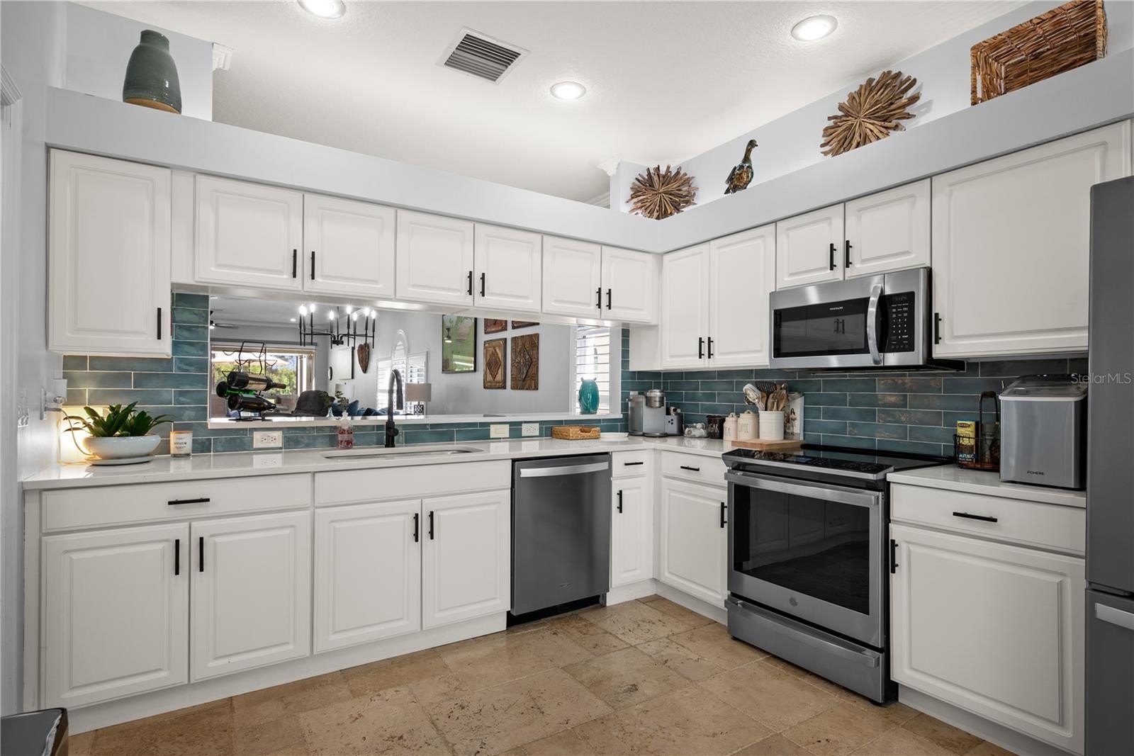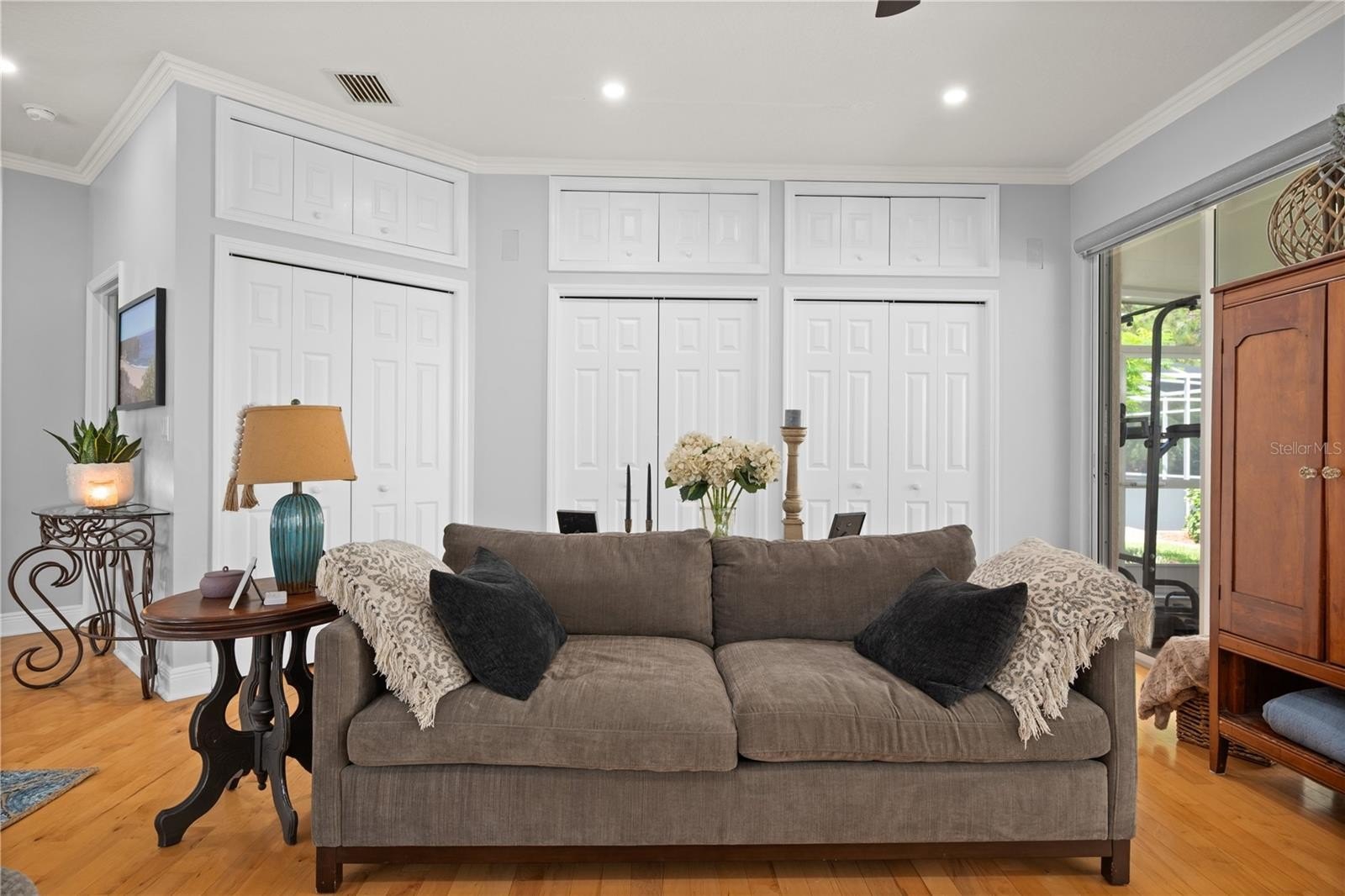 CLASSY & REMODELED HOME in the Crescent Oaks Country Club Community! Abundant wildlife from wild turkeys to deer often frequent the pristine grounds around this home, nestled on the 15th hole of the 18-hole championship Crescent Oaks Golf Course. Spacious and bright, the interior features a REMODELED KITCHEN, Plantation Shutters and double Sliders that open to a newly screened-in patio. The setting is ideal for entertaining and relaxing alike. Freshly painted with STUNNING WOOD FLOORS in the main living area add to the allure of this picture perfect space to enjoy your life. With the primary bedroom that offers a relaxing GARDEN TUB, a separate shower and a walk-in closet with custom shelving, along with a double vanity and a private toilet area and you have just landed in paradise! There are a host of modern conveniences that come with this home along with a new GENERAC WHOLE HOME GENERATOR - ensuring that you’re never without power. This home has never received water intrusion or flooded. And it comes with a transferable flood policy. The INDOOR LAUNDRY comes with a newer washer and dryer and the garage features a water softener and irrigation system. This home is loaded with storage space and is just exquisite!! Other highlights are NEWER ROOF (2021) fresh exterior PAINT (2024) HVAC system (2013). No CDD fees & Low HOA fees cover lawn care, shrub trimming, maintenance, exterior water, irrigation system, exterior home painting on a rotating basis, 24-7 guard, and access to the clubhouse. * DOG FRIENDLY * The community amenities include the 18-hole championship golf course plus clubhouse, nestled in this gated community! GOLF? TENNIS? PICKLEBALL, ANYONE?