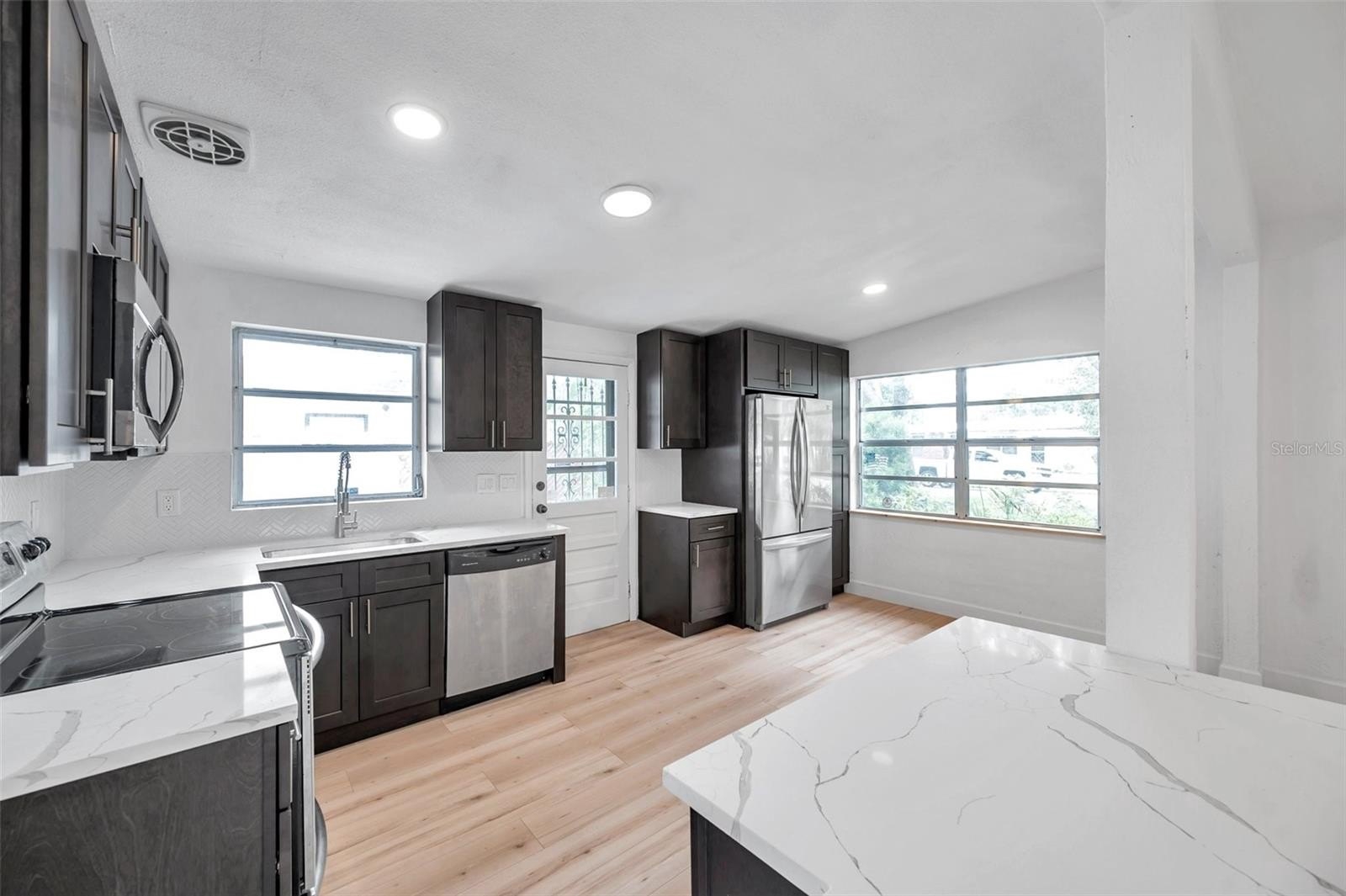 This home was NOT affected by either hurricane in 2024. Welcome to your next home in the heart of sunny St. Petersburg, Florida! This freshly remodeled gem is perfectly located just off vibrant 4th Street, offering unbeatable access to downtown St. Pete, top restaurants, coffee shops, parks, and the waterfront in just minutes. Step inside to find soaring vaulted ceilings that make the space feel open and bright. The home features two well-appointed bedrooms plus a large third room that’s perfect for anyone needing a stylish work-from-home office, creative studio, or even an oversized third bedroom – your choice! Every inch of the interior has been thoughtfully updated — from new finishes to modern fixtures — giving the space a fresh, clean, and comfortable feel that's move-in ready. Out back, enjoy a spacious fenced-in yard, ideal for entertaining, relaxing in the Florida sunshine, or letting your pets roam freely. Whether you're a remote professional or someone simply looking for a stylish space close to all the action, this home has the flexibility and location to match your lifestyle. Clear 4 point inspection