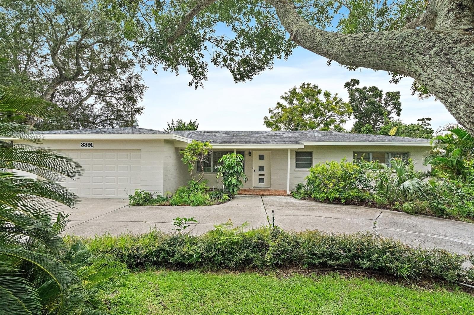 Welcome to 3391 Walnut St NE, a beautifully maintained Florida Ranch in one of St. Petersburg’s most desirable neighborhoods! Built in 1959, this spacious home offers 2 bedrooms, 2 bathrooms, and a versatile den with closet that can serve as a home office, guest room, or hobby space. The primary suite is generously sized and features a large closet, en-suite bath, and a private sitting area perfect for reading or working from home. The second bedroom also includes two oversized closets. Throughout the home, you’ll find original terrazzo and brick floors along with wood flooring in the bedrooms—no carpet. The open living, dining, and kitchen areas are filled with natural light from abundant windows, creating a bright and welcoming atmosphere. An inside laundry room and brand-new appliances add extra convenience. Set on nearly one-third of an acre, this corner lot offers a circular driveway, two-car garage, tropical landscaping, and a fully fenced yard. The backyard and patio provide the perfect outdoor retreat for grilling, entertaining, or enjoying the Florida sunshine. Ample storage and closet space make this home as functional as it is charming. The location is unbeatable—nestled between the Vinoy Golf Course and Smacks Bayou, and only two blocks from Crisp Park, where you’ll enjoy a playground, picnic pavilion, exercise equipment, and dual boat ramps with direct access to Tampa Bay. The NorthEast Park Placido Shores/Snell Isle area is private, quiet, and highly sought after, while still being minutes from downtown St. Petersburg, The Vinoy, world-class beaches, shopping, dining, Tampa, and international airports. Freshly painted and move-in ready, this home offers peace of mind and the opportunity to own in one of the most desirable parts of the city. Don’t miss out on this hidden gem—schedule your private showing today!