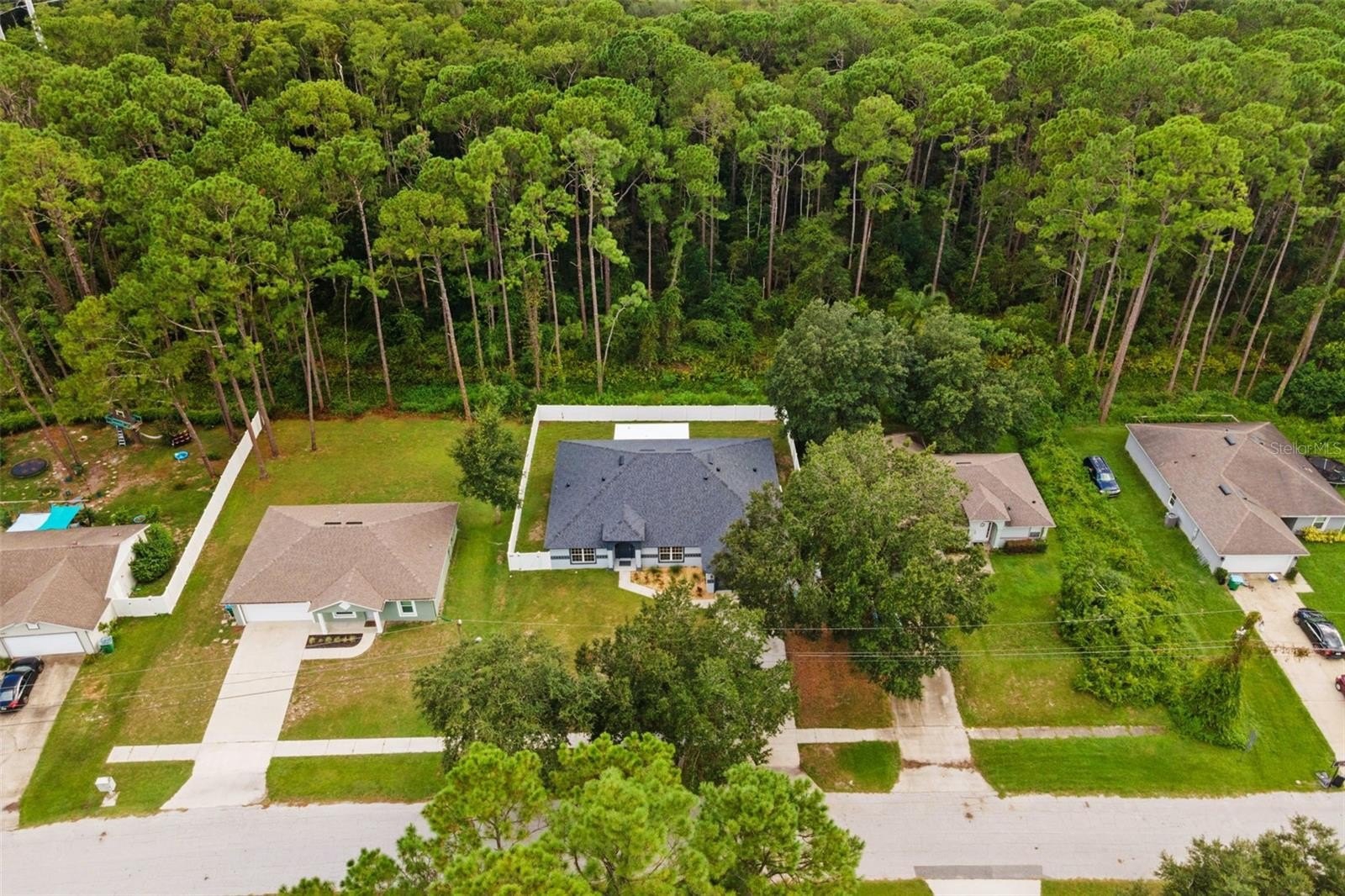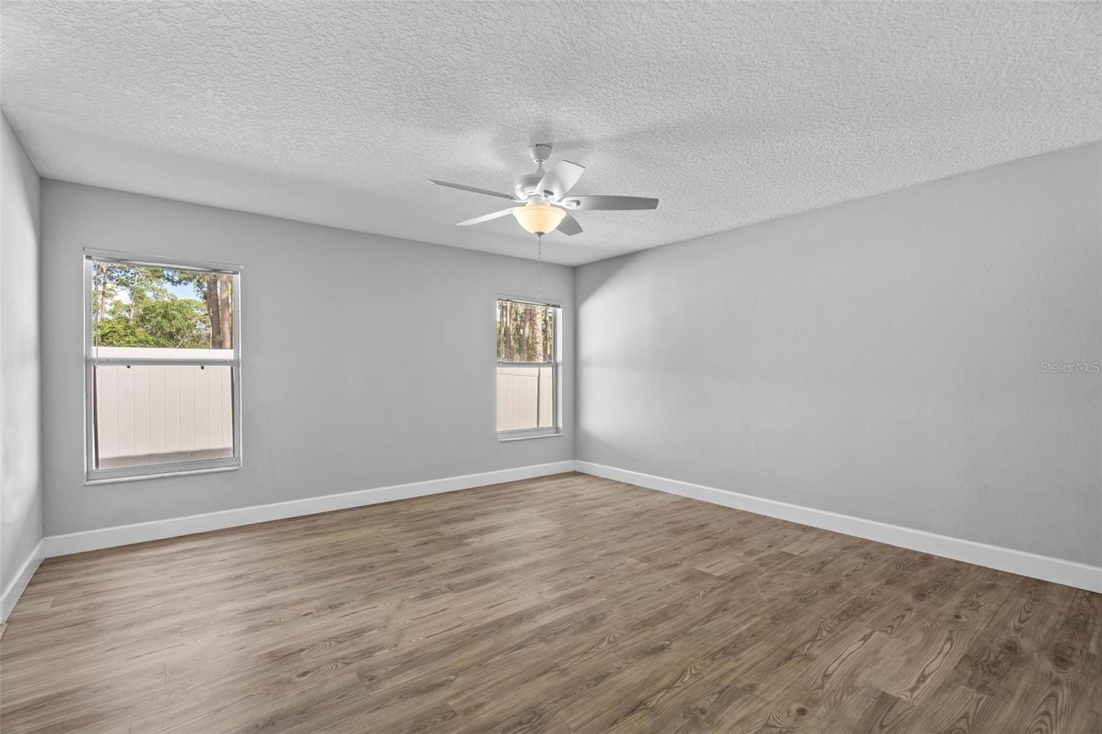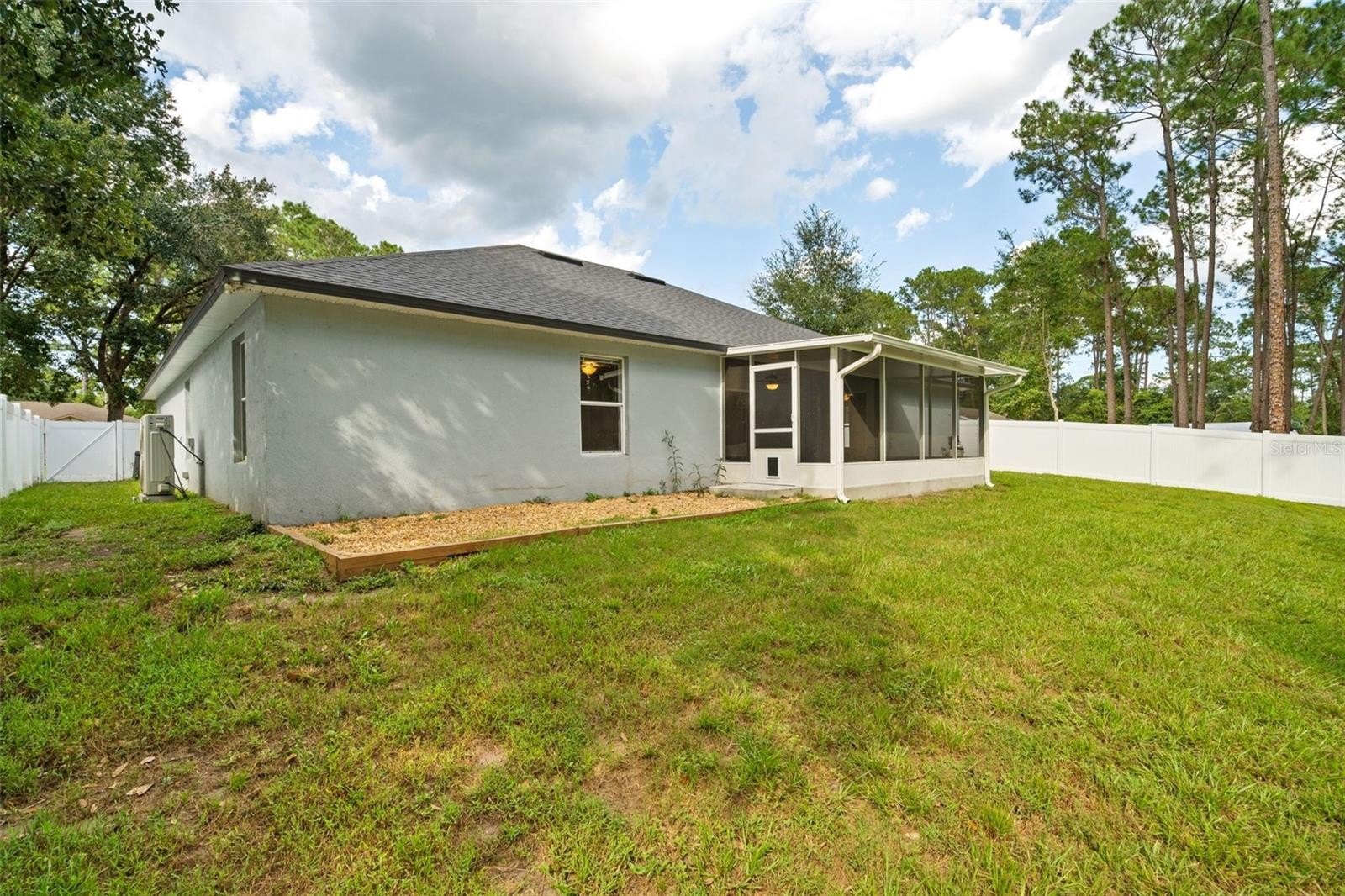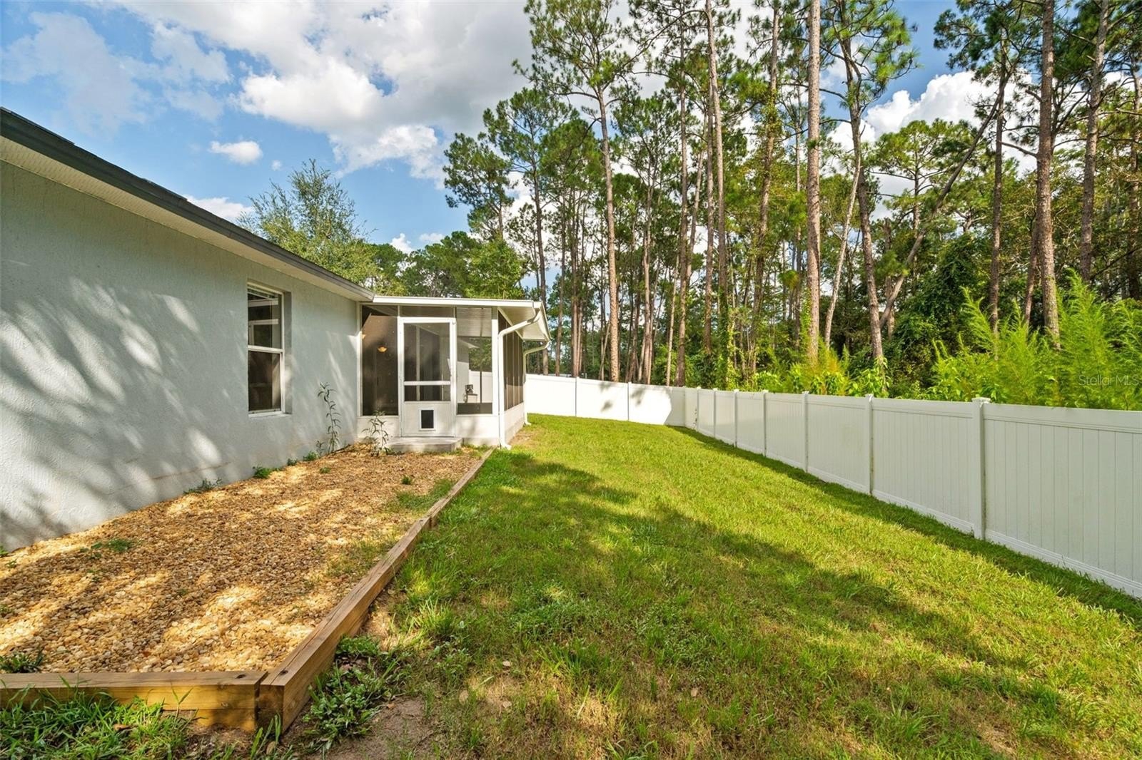 Outdoor living is a highlight, with a newly expanded screened porch with ceiling fan, a white vinyl privacy fence, a fire pit area, and dusk-to-dawn security lighting. The property backs directly to a peaceful nature preserve with access to a creek, creating a serene and private setting—ideal for relaxing or entertaining.