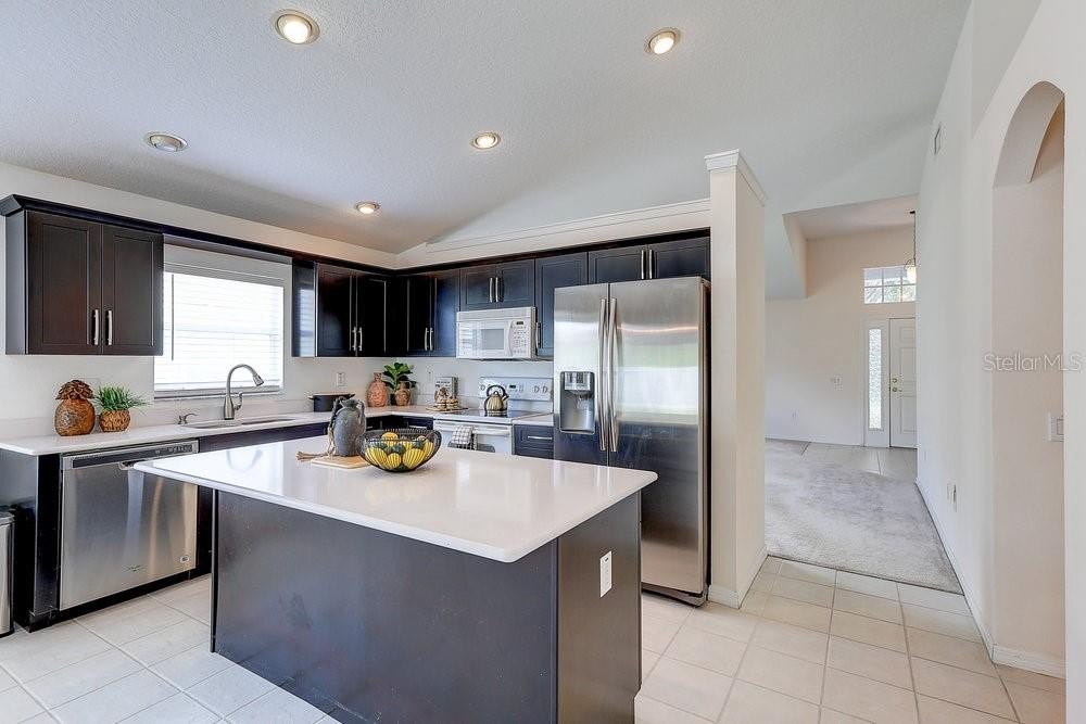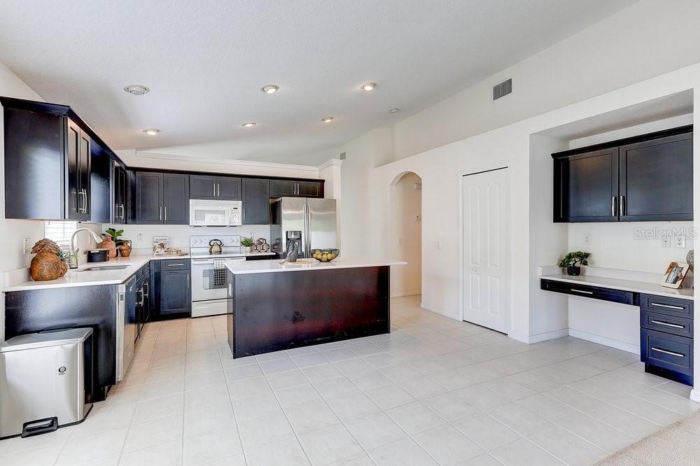 Offering $10,000 toward new flooring! Enjoy peace of mind with a roof just 5 years old and a beautifully updated kitchen completed 5 years ago as well! Welcome to Buckhorn Preserve, a beautifully maintained community of 419 single-family homes in Valrico, Florida with a low annual HOA fee. This inviting 4 bedroom, 2 bath, 2-car garage home offers a spacious open layout enhanced by vaulted ceilings for an airy, welcoming feel. The well-appointed kitchen features rich, deep-colored cabinetry that contrasts beautifully with white and stainless steel appliances, a functional island, tile flooring, and even a built-in “home management” desk—perfect for work, school, or organization. A split-bedroom design places the owner’s suite privately at the rear of the home, while three additional bedrooms and a full bath are conveniently located near the entry along with the laundry room. Enjoy cozy carpet in the living, dining, and bedrooms, plus sliders from the main living area that open to a screened lanai, ideal for relaxing or entertaining year-round. With its thoughtful layout, stylish features, and prime location in one of Valrico’s most desirable communities, this home is ready to welcome its next owner.