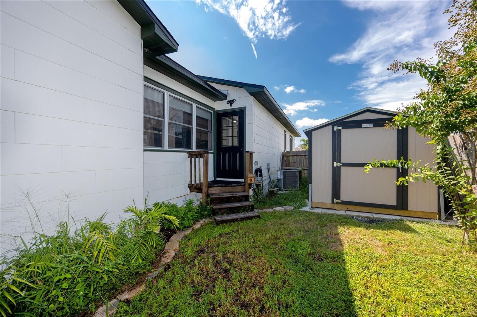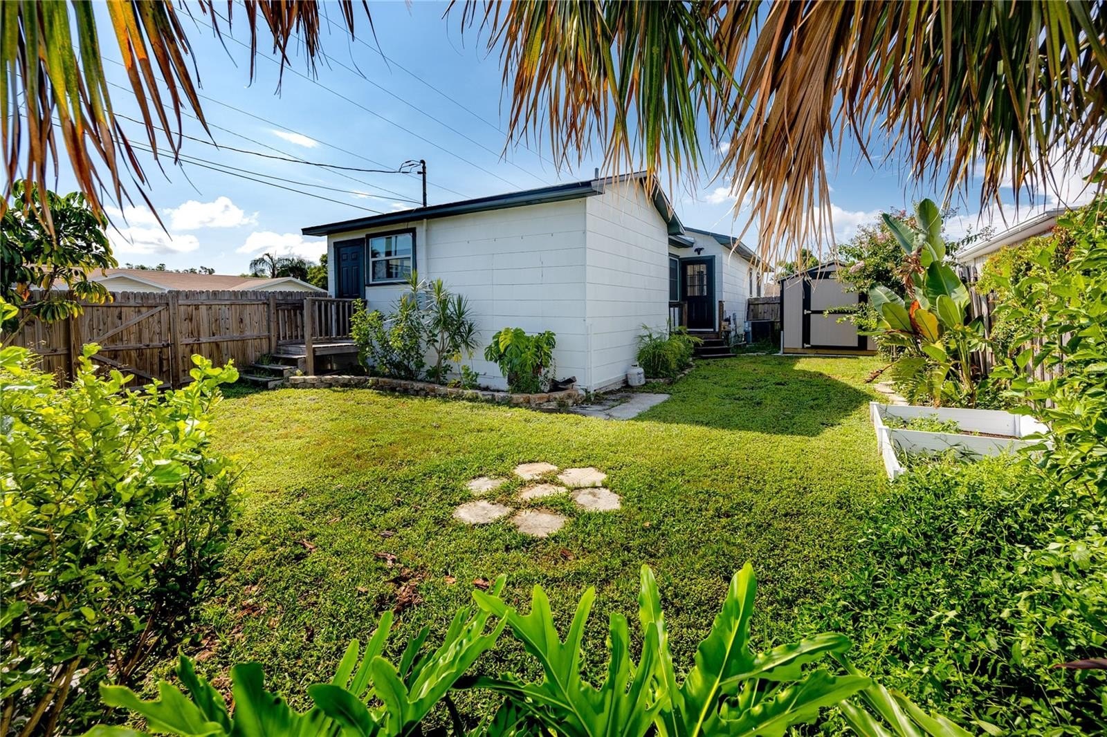 Set on an oversized 54x104 ft. corner lot, the outdoor space is fully fenced and ready to enjoy. Features include shaded seating areas, raised garden beds, mature tropical landscaping, and a large Tuff shed for extra storage. With alley access and NT-2 zoning, the property offers future ADU potential, adding flexibility for guest housing, multigenerational living, or supplemental rental income.
