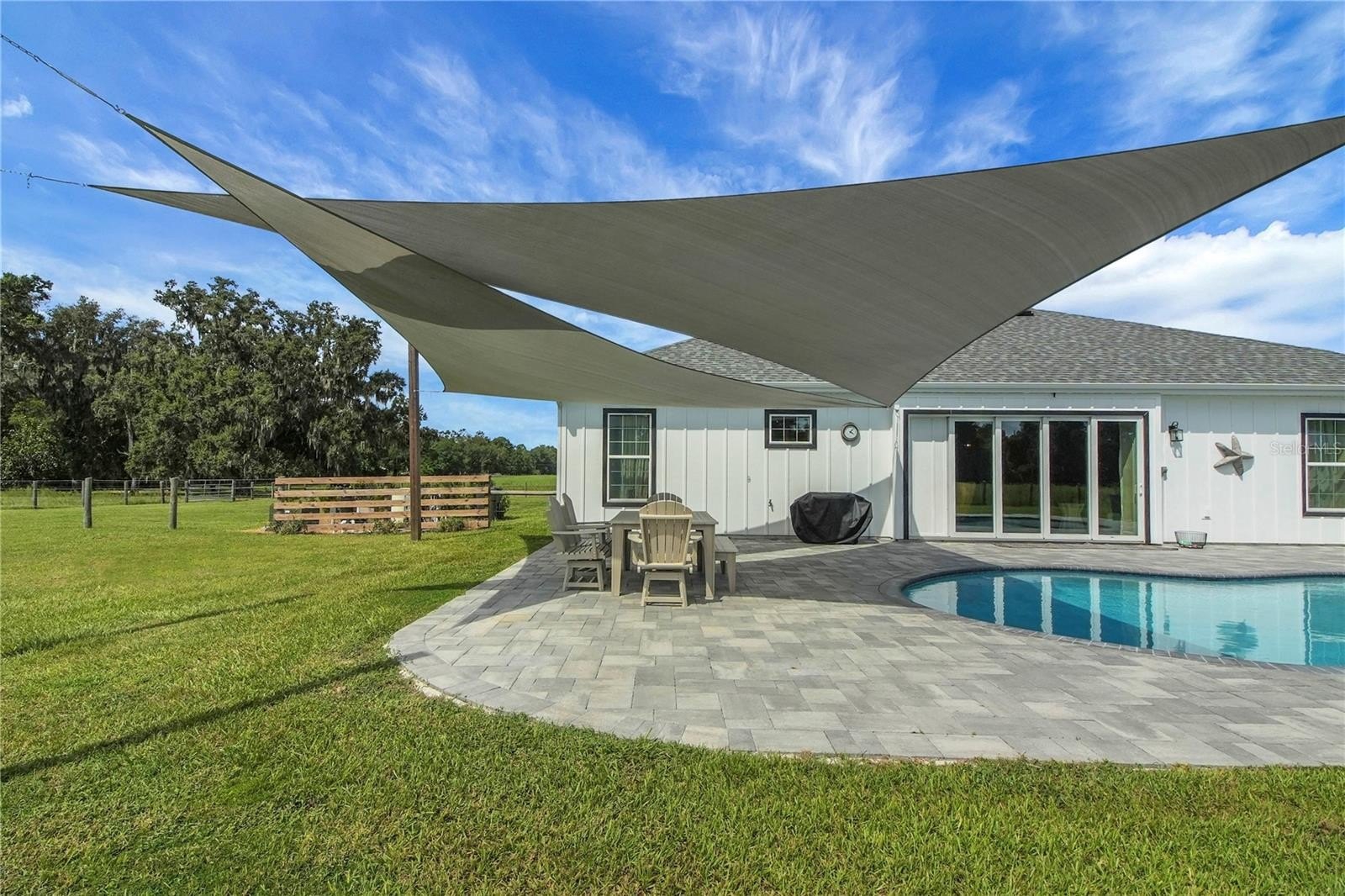 Country living at its finest! Nestled on over 10+ lush and mostly cleared acres in desirable Oxford, this custom 4-bedroom, 3-bath salt water pool home with bonus room is a true showstopper. Built in 2021 with BLOCK construction and Hardieboard siding, the home offers over 2,700 sq. ft. of thoughtfully designed living space. Step inside to find luxury vinyl flooring, crown molding, high ceilings, and 5-inch baseboards throughout the main areas. The open, split floor plan is ideal for entertaining, featuring a chef-inspired kitchen with quartz countertops, stainless steel appliances, white cabinetry, a farmhouse sink, crown accents, and a cabinet pantry. The spacious living room overlooks the sparkling saltwater pool and wide-open views beyond. The primary suite is filled with natural light and includes a spa-like bath with dual sinks, granite countertops, a corner soaking tub, and a beautifully tiled shower. The versatile bonus room includes a closet and private outdoor access—perfect as a game room, guest suite, or additional bedroom. Guest baths are equally impressive with granite counters, white cabinetry, and stylish tile shower & shower/tub combo. Step outside to your own private retreat! Enjoy the resort-style pool with sun shelf, paver decking, and plenty of space to host family and friends. With 10+ acres, there’s more than enough room for pets, toys, and the lifestyle you’ve been dreaming of. Copy & Paste this link to view the video: https://bbemaildelivery.com/bbext/?p=video_land&id=D0450ADD-E8B5-46AF-8DC7-03157E206D06