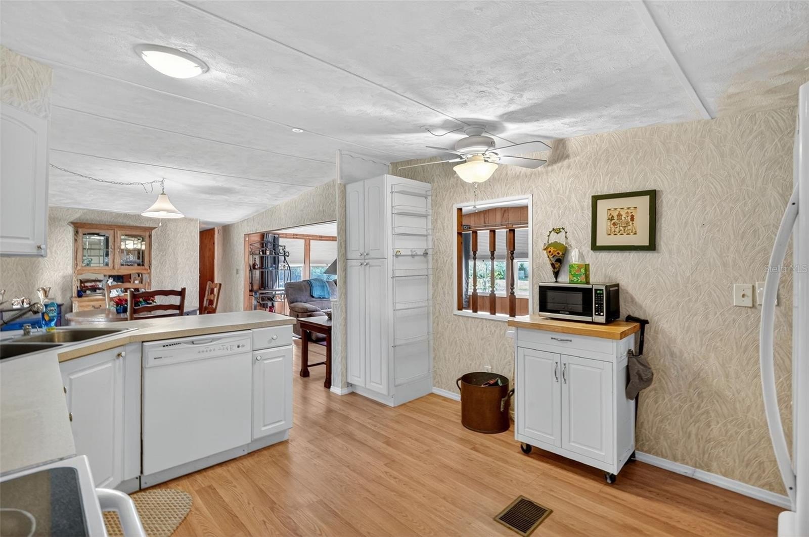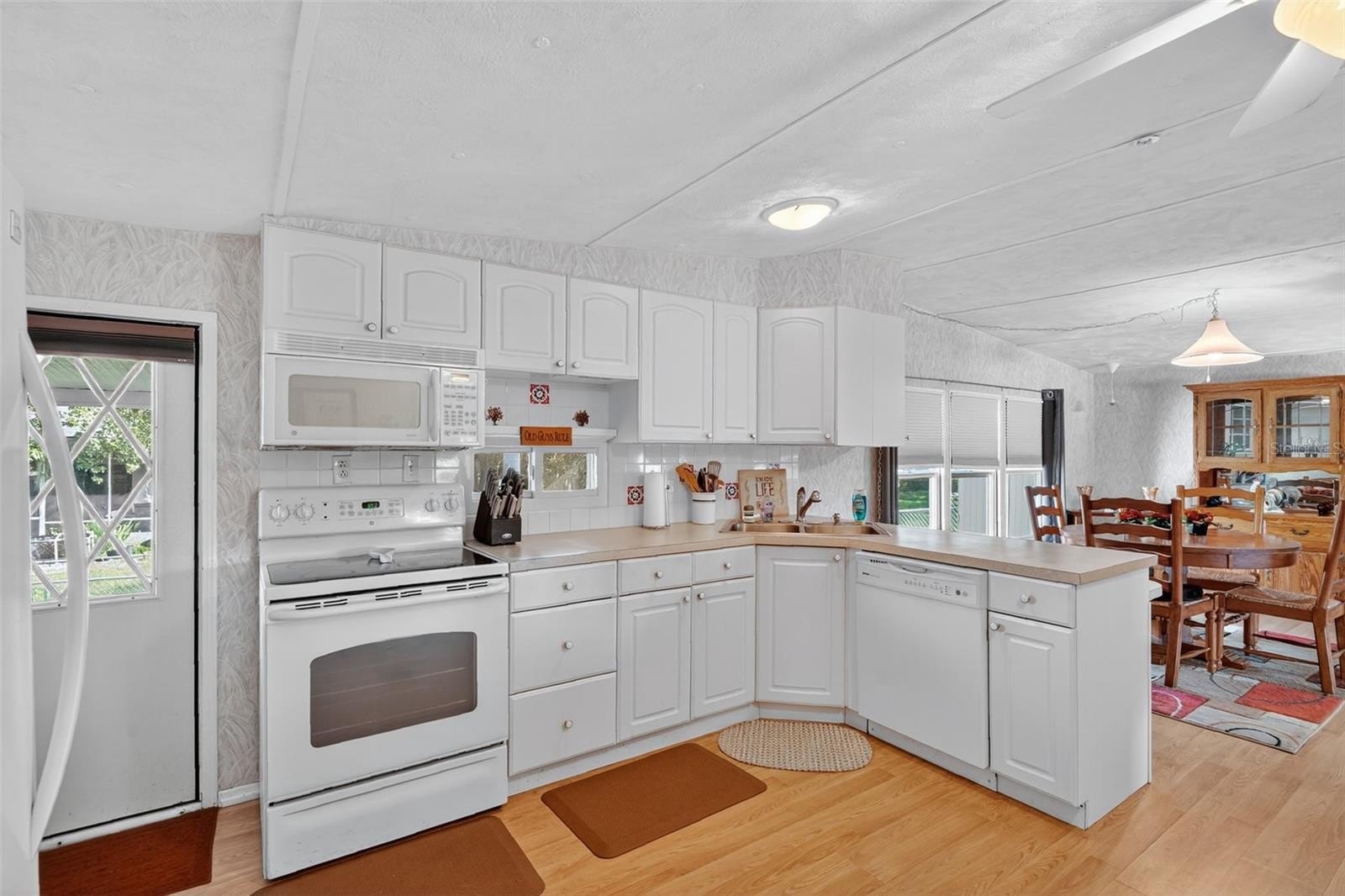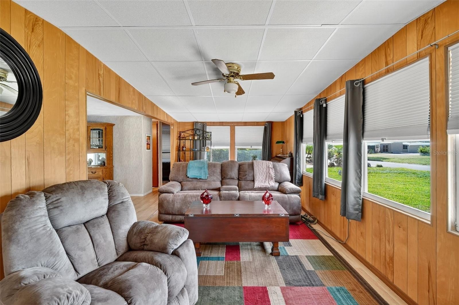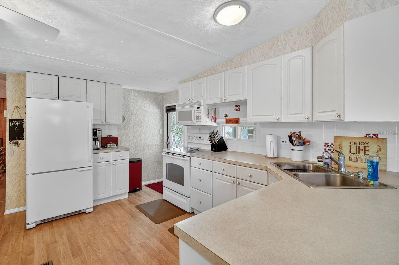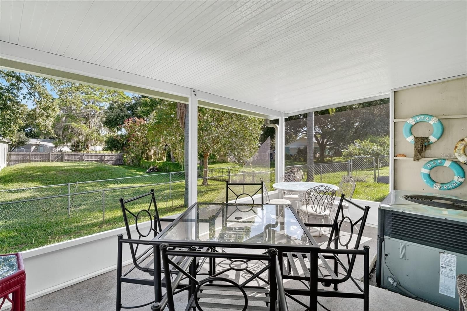 THIS CHARMING 2-bedroom, 2-bath mobile home is nestled in the 55+ community of IMPERIAL TEST WEST (ITW) IN TAVARES. This cozy retreat offers the perfect blend of simplicity and comfort. The vinyl flooring throughout adds a touch of warmth and character to the space. As a FULLY FURNISHED HOME, you can move right in and start enjoying your new surroundings, which include SHADED WINDOW COVERINGS with CURTAIN ACCENTS that allow for lots of SUNLIGHT during the day and PRIVACY at night, SOLID kitchen cabinets, electric stove, microwave and refrigerator/freezer. This home has both a FRONT and REAR screened in Florida style porch. The back yard is fenced in all around for a furry friend, or just for privacy. The room for your WASHER, DRYER AND ADDITIIONAL REFRIGERATOR/FREEZER are at your fingertips just outside the front door. The carport provides ample room for two cars or one car and an ELECTRIC GOLF CART W/CHARGER, which IS INCLUDED in the price of the home. The community's active atmosphere includes planned events throughout the year, along with an indoor POOL and JACUZZI/HOT TUB, LIBRARY, CLUBHOUSE with a POOL TABLE and outdoor SHUFFLEBOARD. There is also a MARINA with BOAT SLIPS to rent, space to store your boat or enclosed trailers, and all with a peaceful serene wildlife like sanctuary surrounding the area. The low HOA of $25/MONTH AND "YOU OWN YOUR OWN LAND" makes this a great place to live! Schedule your showing today!