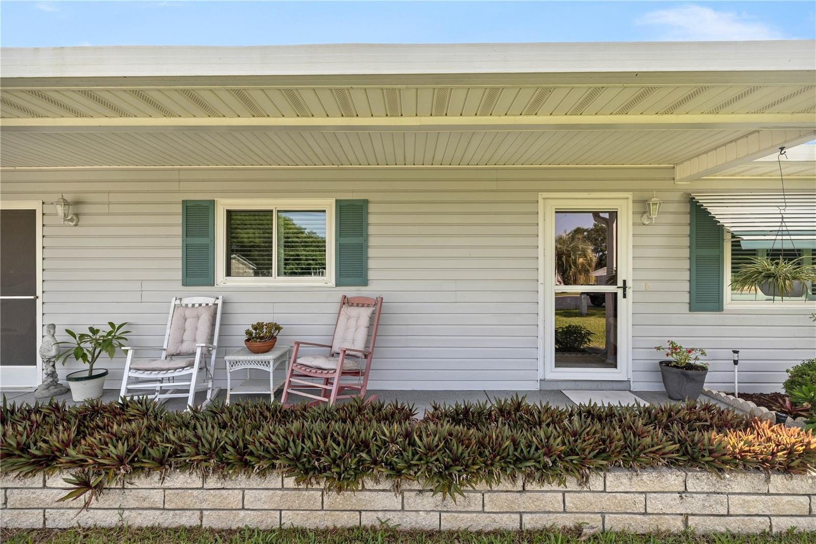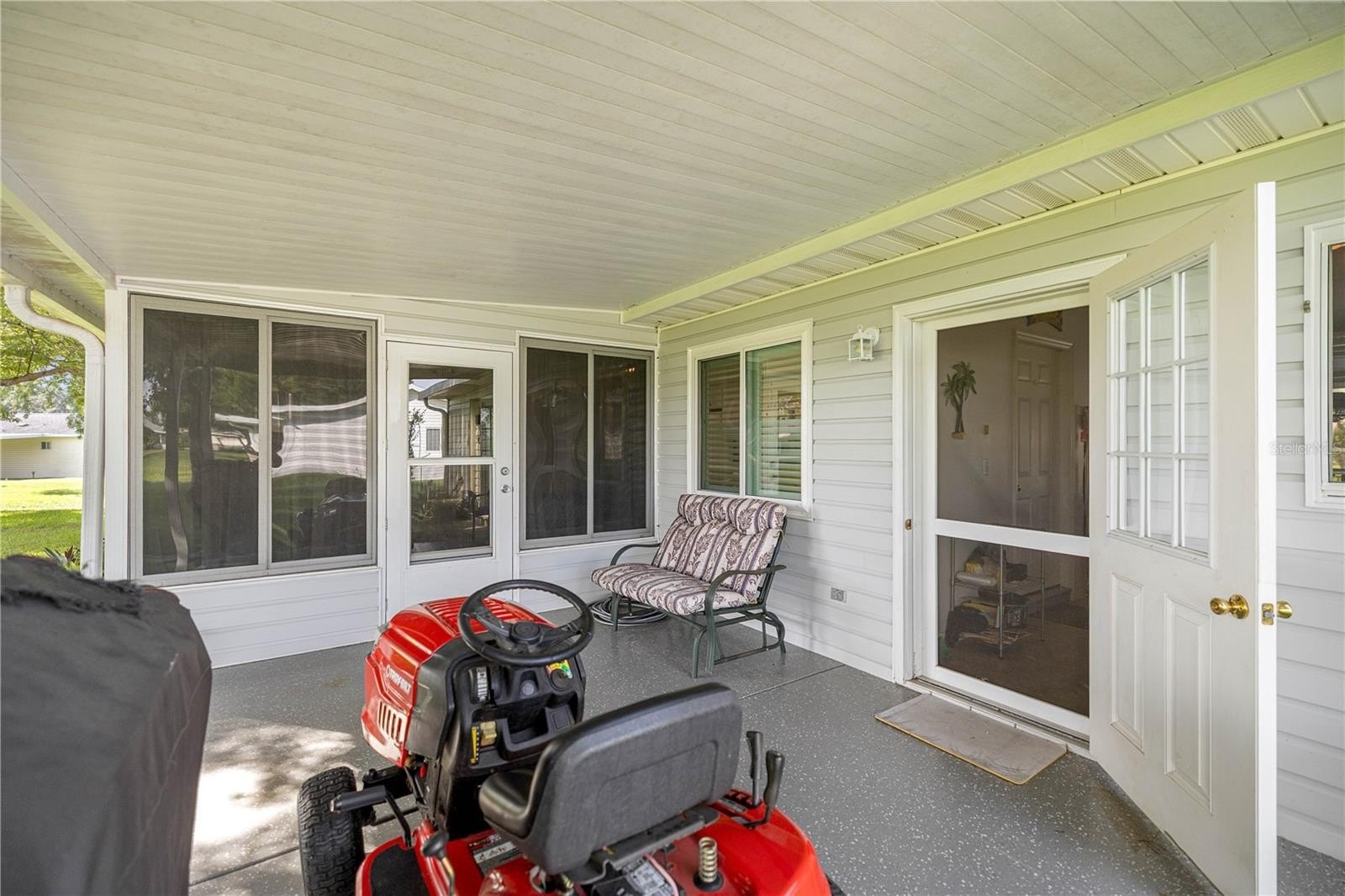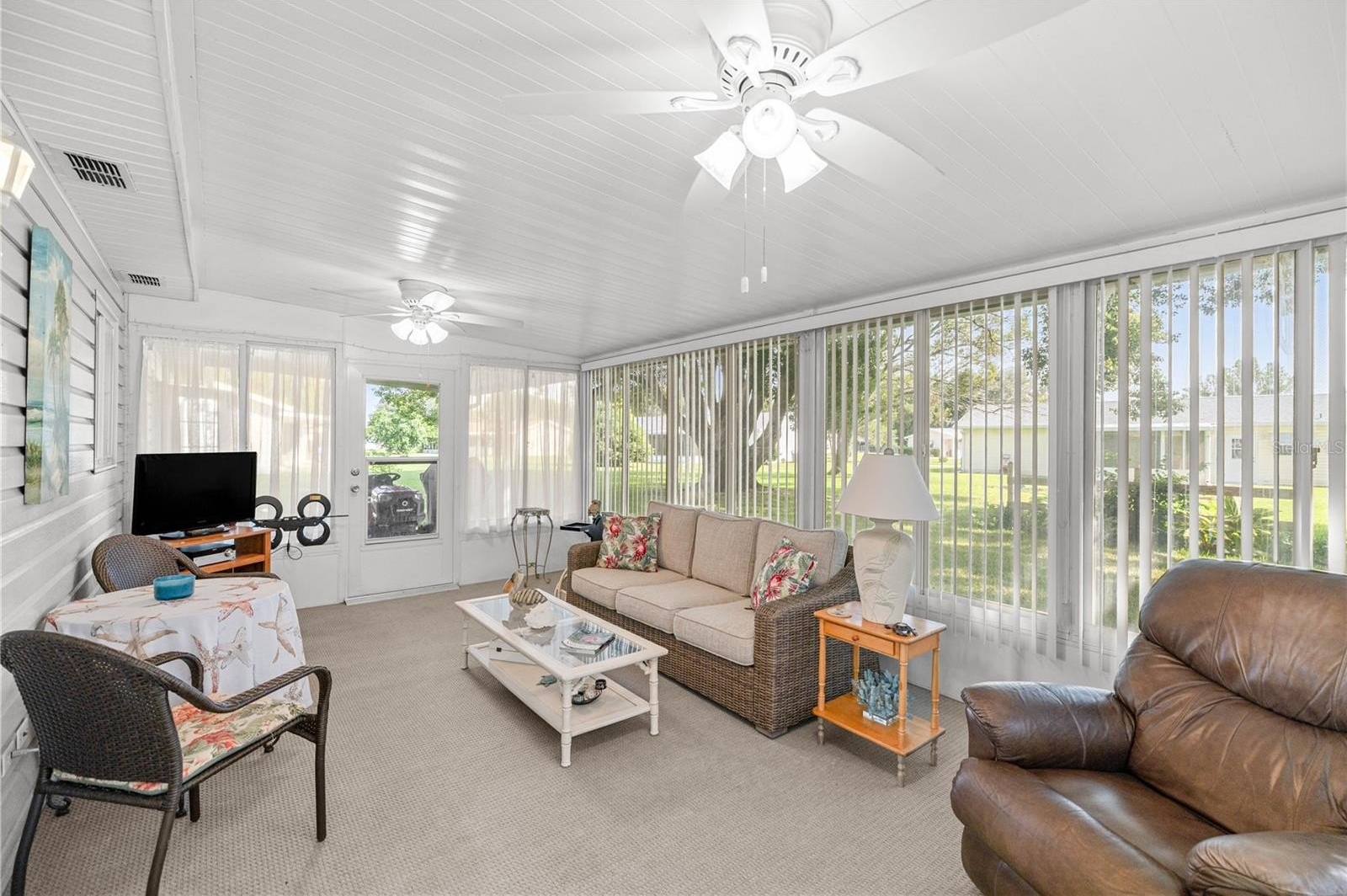 Acrylic-enclosed lanai with Vertical blinds (12x14) plus extended rear patio (12x19 total)