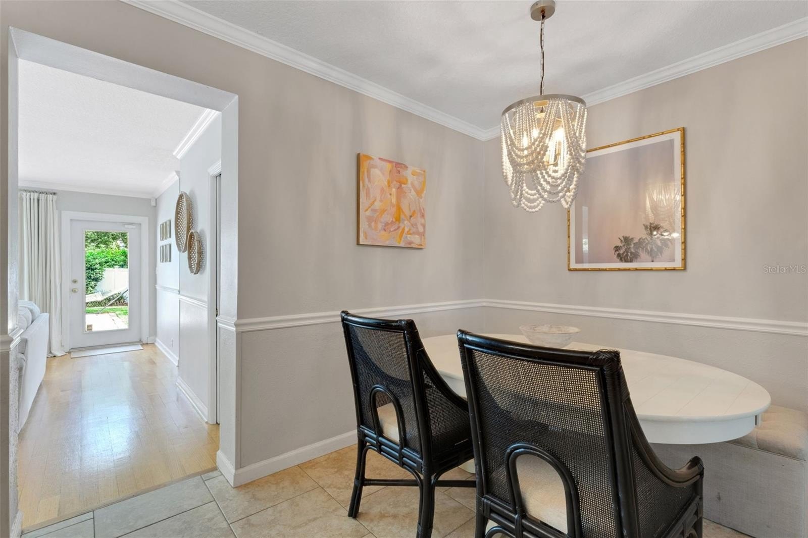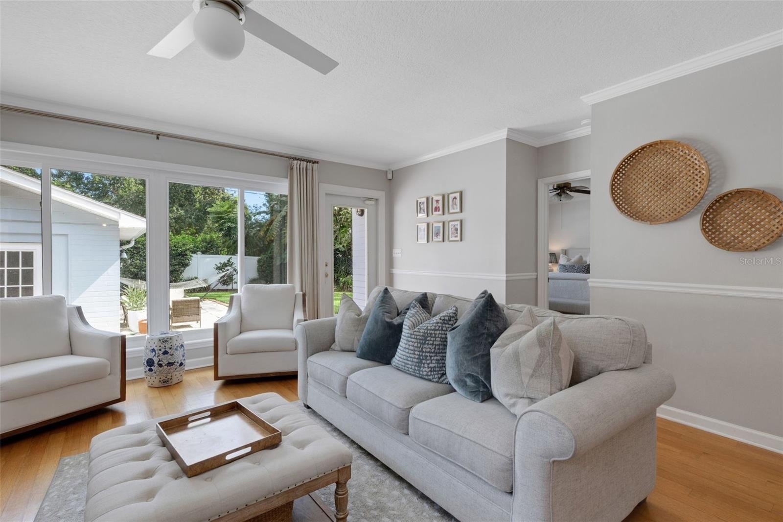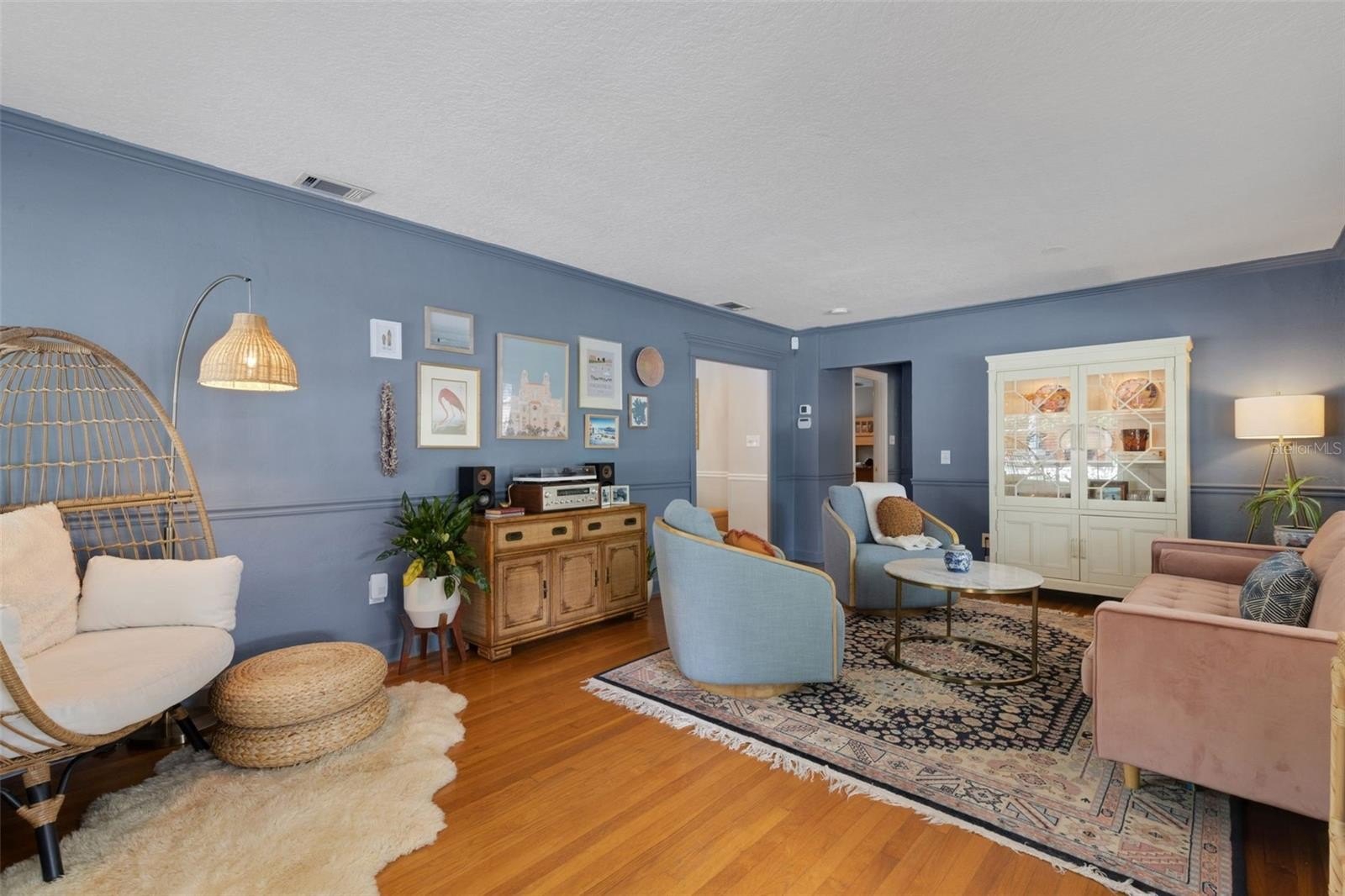 Offering 3 bedrooms and 2 baths with a desirable split layout, the home features a spacious great room, a formal living room, and a kitchen/dining combination perfect for gatherings. The updated kitchen shines with granite countertops, stainless steel appliances, and timeless details like crown moulding, chair rail, and gleaming wood floors.