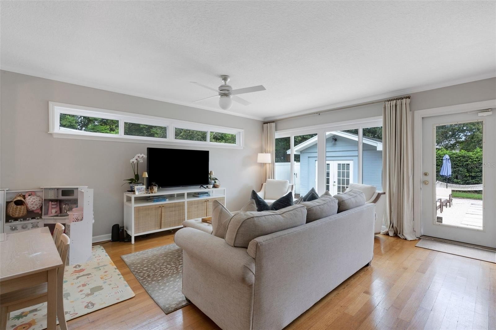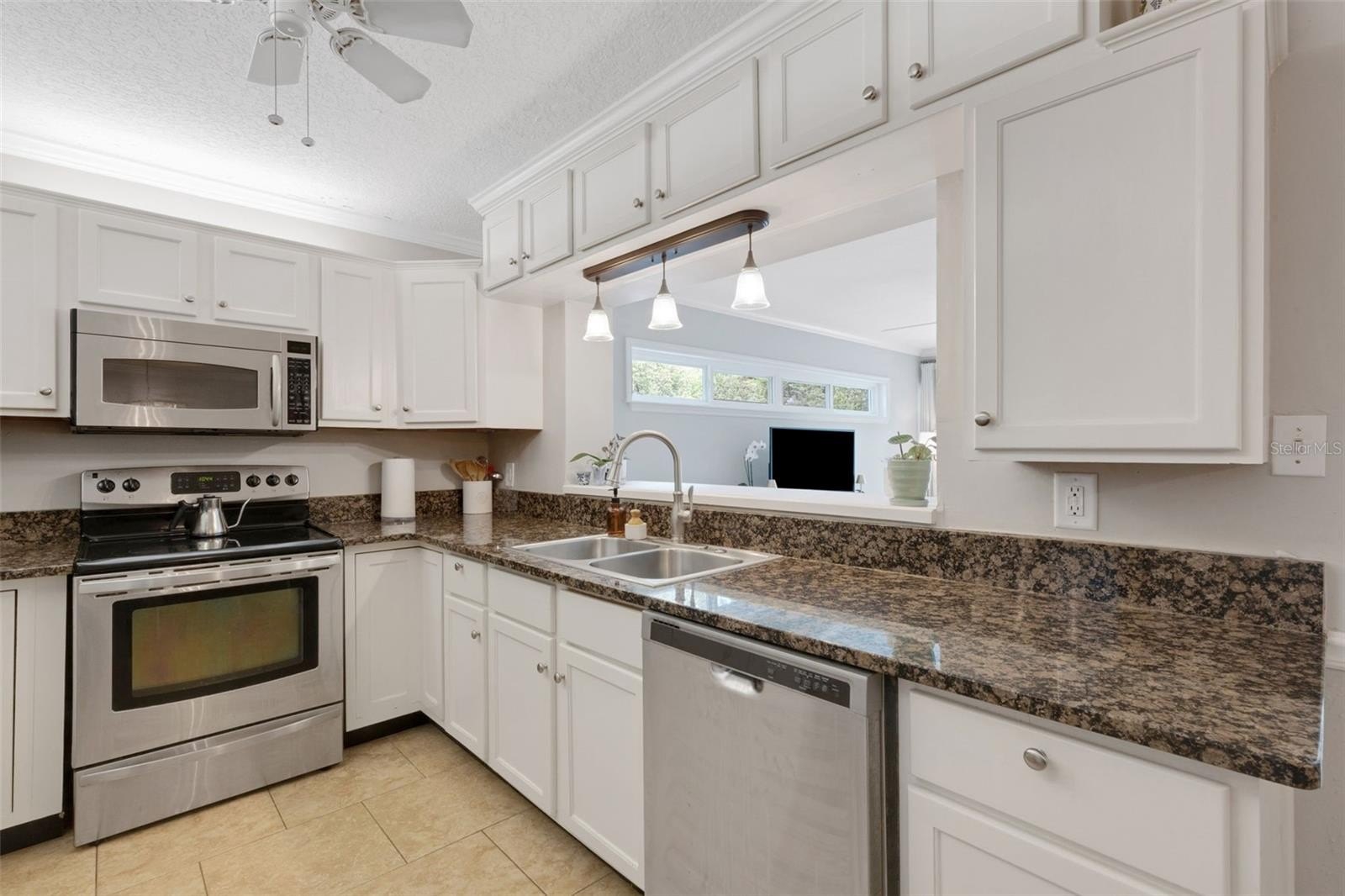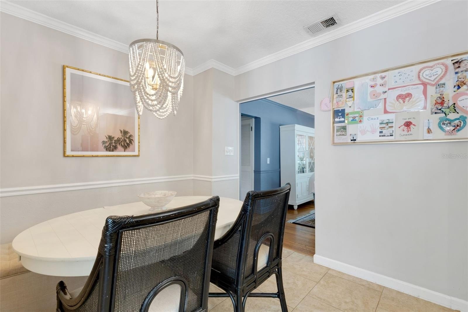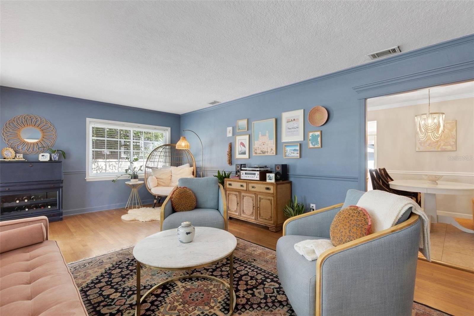 Offering 3 bedrooms and 2 baths with a desirable split layout, the home features a spacious great room, a formal living room, and a kitchen/dining combination perfect for gatherings. The updated kitchen shines with granite countertops, stainless steel appliances, and timeless details like crown moulding, chair rail, and gleaming wood floors.