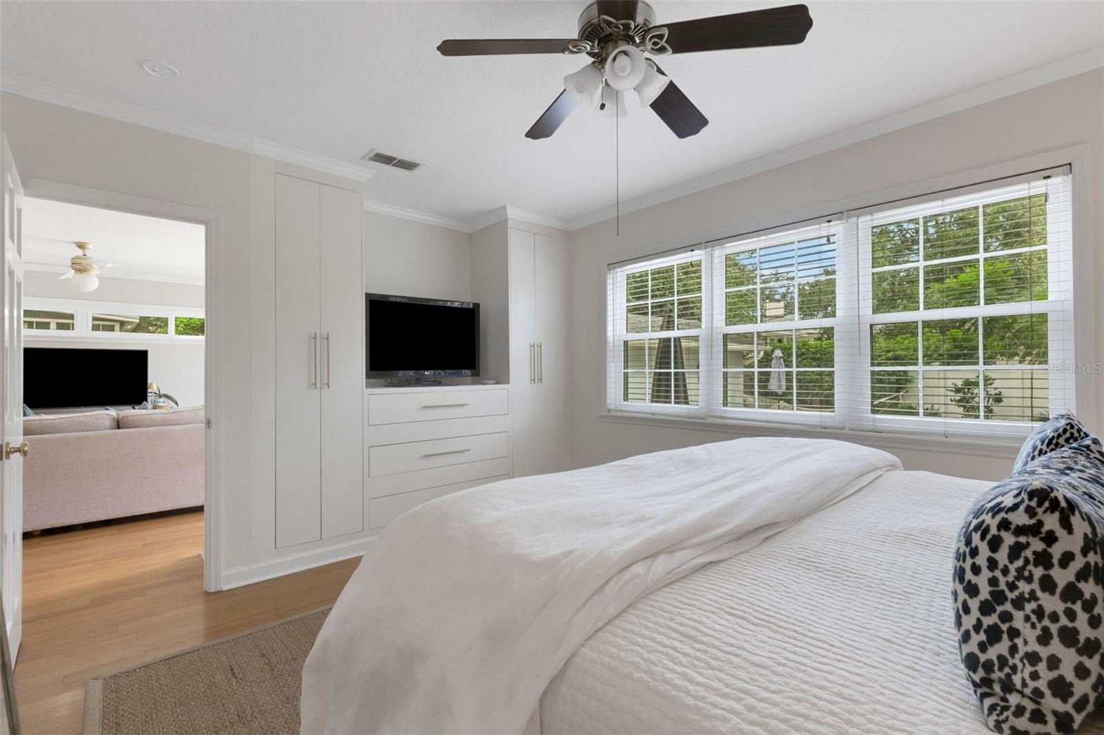 The private primary suite is a true retreat, boasting new custom built-ins, a fully updated ensuite bath with granite counters, walk-in shower, and an organized walk-in closet. The hall bath also impresses with a brand-new vanity and plenty of storage.