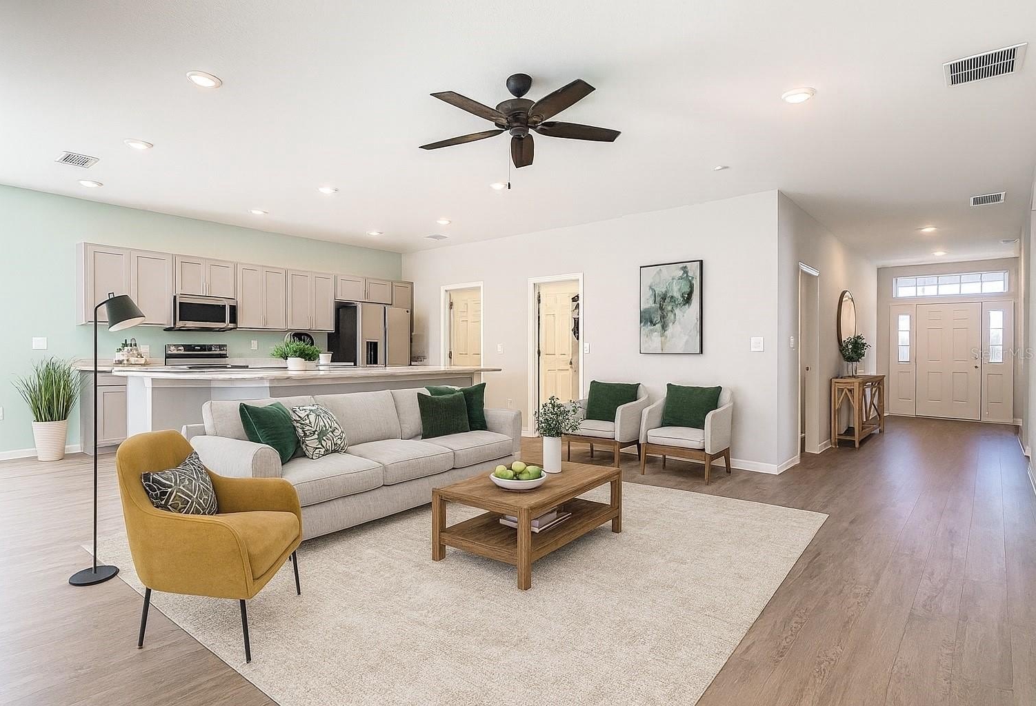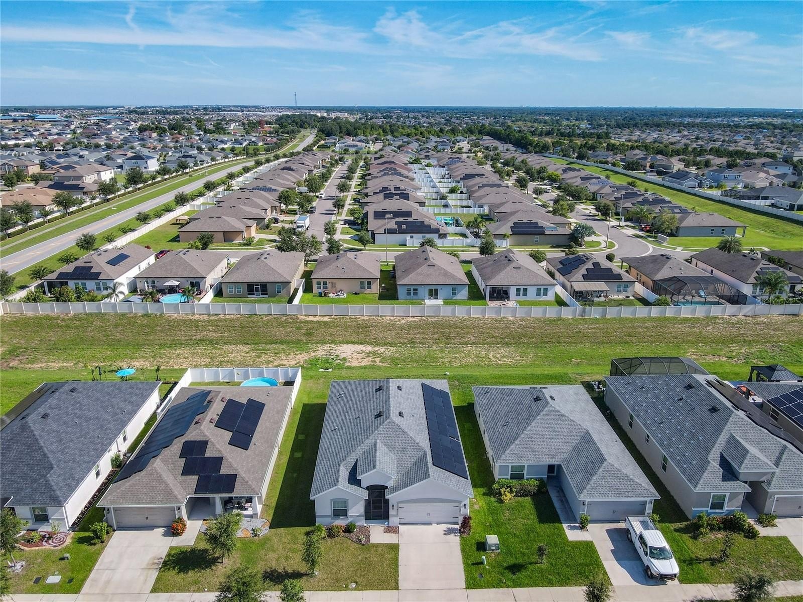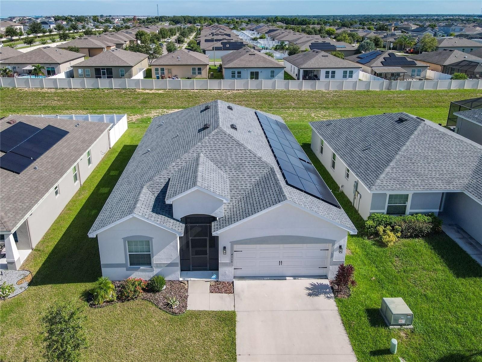 One or more photo(s) has been virtually staged. Home Eligible for an ASSUMABLE LOAN of 3.5%.Nestled in the vibrant and growing community of Haines City, this 4-bedroom, 2.5-bathroom home is the perfect blend of modern design, smart upgrades, and everyday comfort. Built in 2022 and offering 2,029 sq. ft. of thoughtfully planned living space, it comes equipped with energy-saving BRAND NEW SOLAR PANELS and a fully paid-off PURE TOUCH WATER FILTRATION SYSTEM—both adding lasting value and convenience. Inside, an airy open floor plan seamlessly connects the living area, dining space, and a sleek kitchen featuring stainless steel appliances, plentiful cabinetry, and generous counters that inspire both casual meals and gourmet creations. The primary suite offers a private retreat with its own bath and walk-in closet, while three additional bedrooms adapt easily for guests, family, or a home office. A roomy laundry/mud area off the garage keeps things organized, and the screened front porch and lanai provide the perfect spots to enjoy Florida’s melow evenings—made even better by a private backyard with no rear neighbors. Just a short walk to community amenities like a pool, playground, dog park, and soccer field, and minutes from Legoland with easy access to Tampa and Orlando, this home offers small-town charm without sacrificing convenience. Ready to welcome its next owner, it’s a move-in ready opportunity you won’t want to miss.
