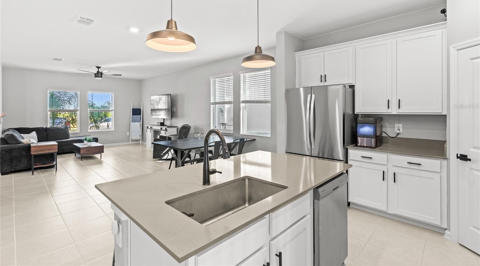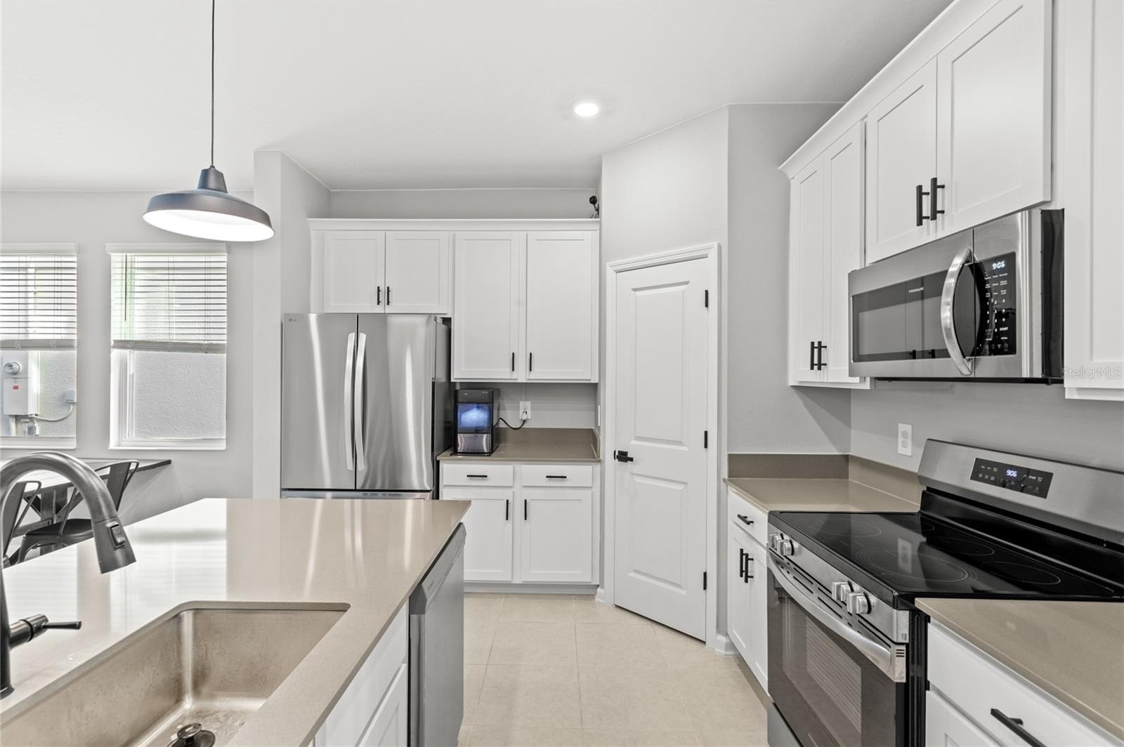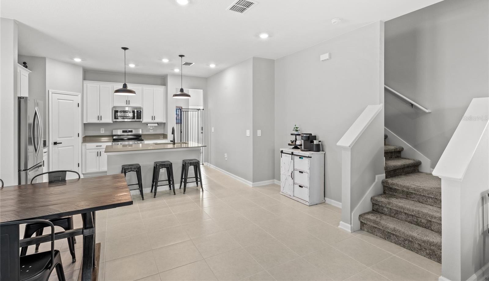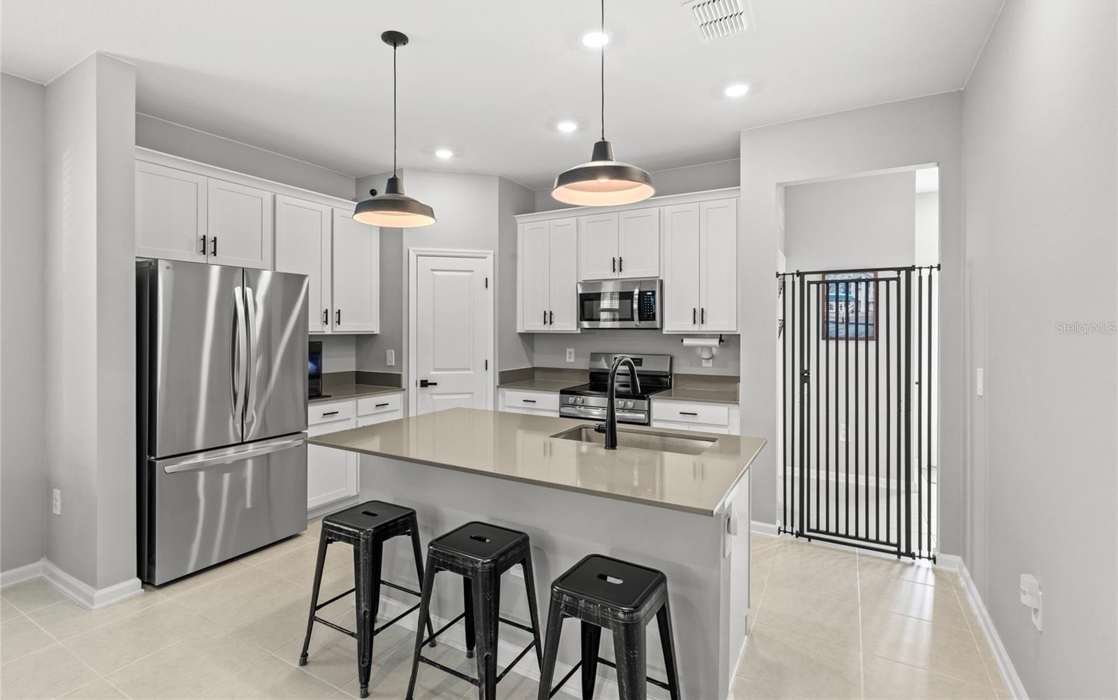 Better than new, this 2024-built home comes with a rare 4.75% assumable loan for qualifying buyers and is filled with thoughtful upgrades. As you enter, you’re welcomed by an abundance of natural light, fresh interior paint, and tile flooring that flows through a spacious open-concept floor plan. The kitchen offers a generous layout with quartz countertops, a large pantry, and modern touches including new mirrors, fixtures, faucets, light fixtures, hardware, and blinds. The first floor also features a full bedroom and bathroom, along with a convenient mudroom drop zone that leads out to the fenced-in lanai and brick-paved patio connecting to the two-car garage and ample parking area.