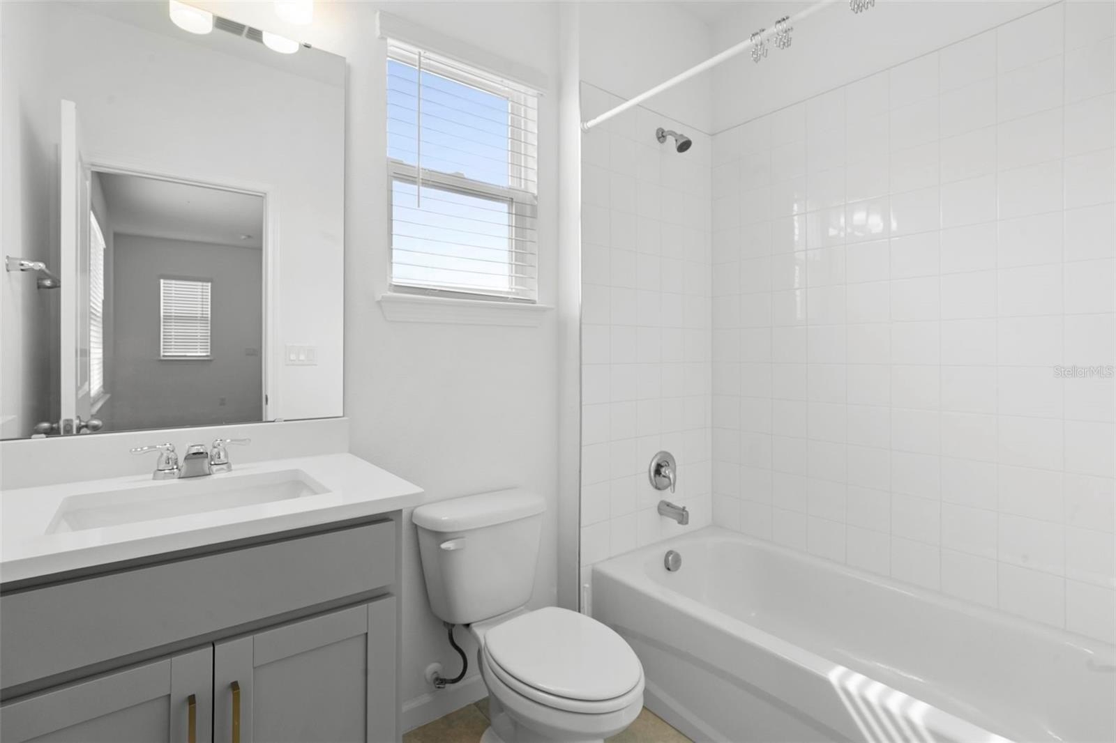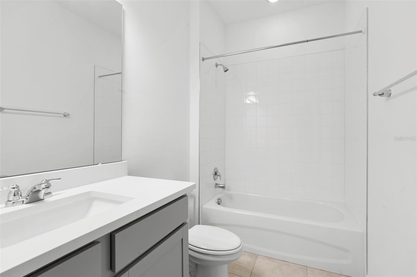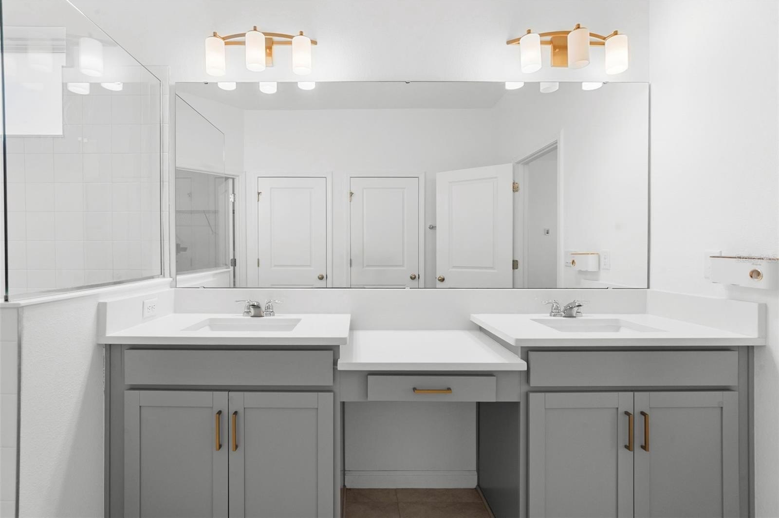 The thoughtfully designed floor plan is ideal for families, especially those with little ones. The main level features four spacious bedrooms, including a luxurious primary suite complete with dual walk-in closets and a beautifully appointed double-vanity bathroom. The home also offers two full bathrooms and one half-bath, a separate dining room, and a welcoming living area perfect for entertaining. The gourmet kitchen is a true highlight, featuring modern gray cabinetry, elegant quartz countertops, and an oversized island designed for family gatherings, holidays, and special occasions.