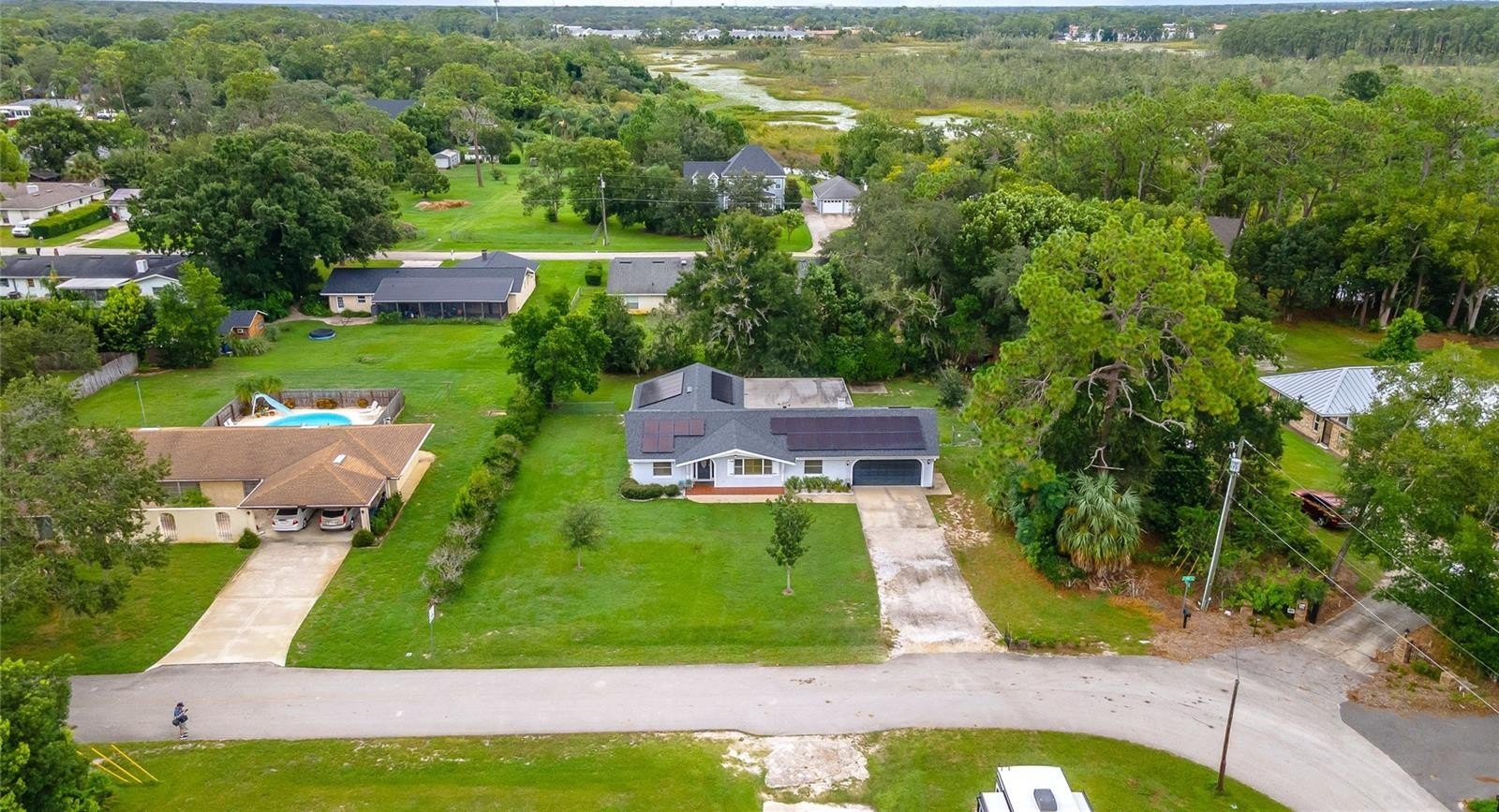 Welcome to 1200 Adams St - A Rare Opportunity in the Heart of Longwood! Nestled in a beautiful tree-lined neighborhood filled with lush green spaces, this charming home perfectly blends location with long-term value. Boasting 4 bedrooms and 2 bathrooms with a generous bonus room, it's perfectly suited for families and remote workers alike. The home is set on 1/3+ acre with a fully fenced back yard, allowing ample room for outdoor living, pets, gardens, or a future pool. Key updates offer peace of mind for years to come — including a new roof (2023) and solar panels (will be paid off at closing) delivering incredible energy efficiency with no additional cost, and electric bills of approximately $50-70 per month. The HVAC system was replaced in 2014, adding to the home’s solid mechanical foundation. Inside, is a blank slate, ready for your personal touch. Whether you're looking to design your dream kitchen, reimagine the living spaces, or just want something move in ready, this mid-century ranch home checks so many boxes, all with NO HOA. Enjoy the best of Central Florida living with a prime location just minutes from I-4, offering easy access for trips to our world-famous theme parks, restaurants, sports venues, and of course our state's stunning beaches. Whether you're commuting for work or exploring the area’s countless attractions, you’ll absolutely love the convenience this location provides. Don’t miss your chance to own a home with great bones, unbeatable location, and room to make it your own. Schedule your showing today!