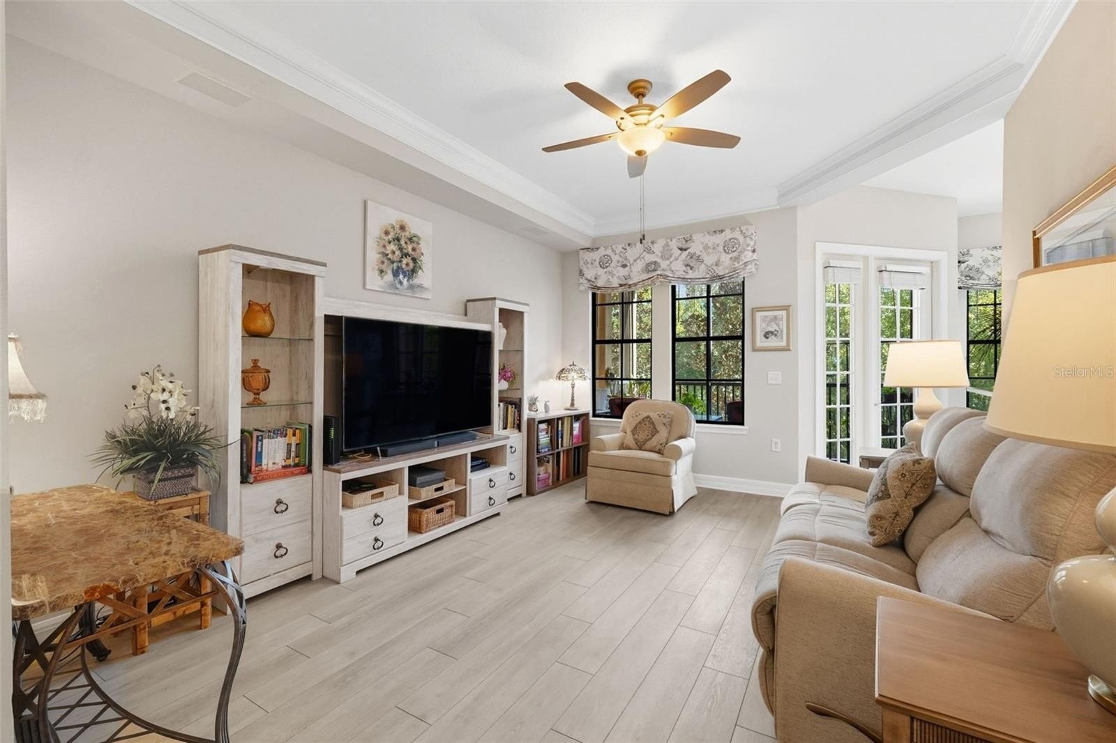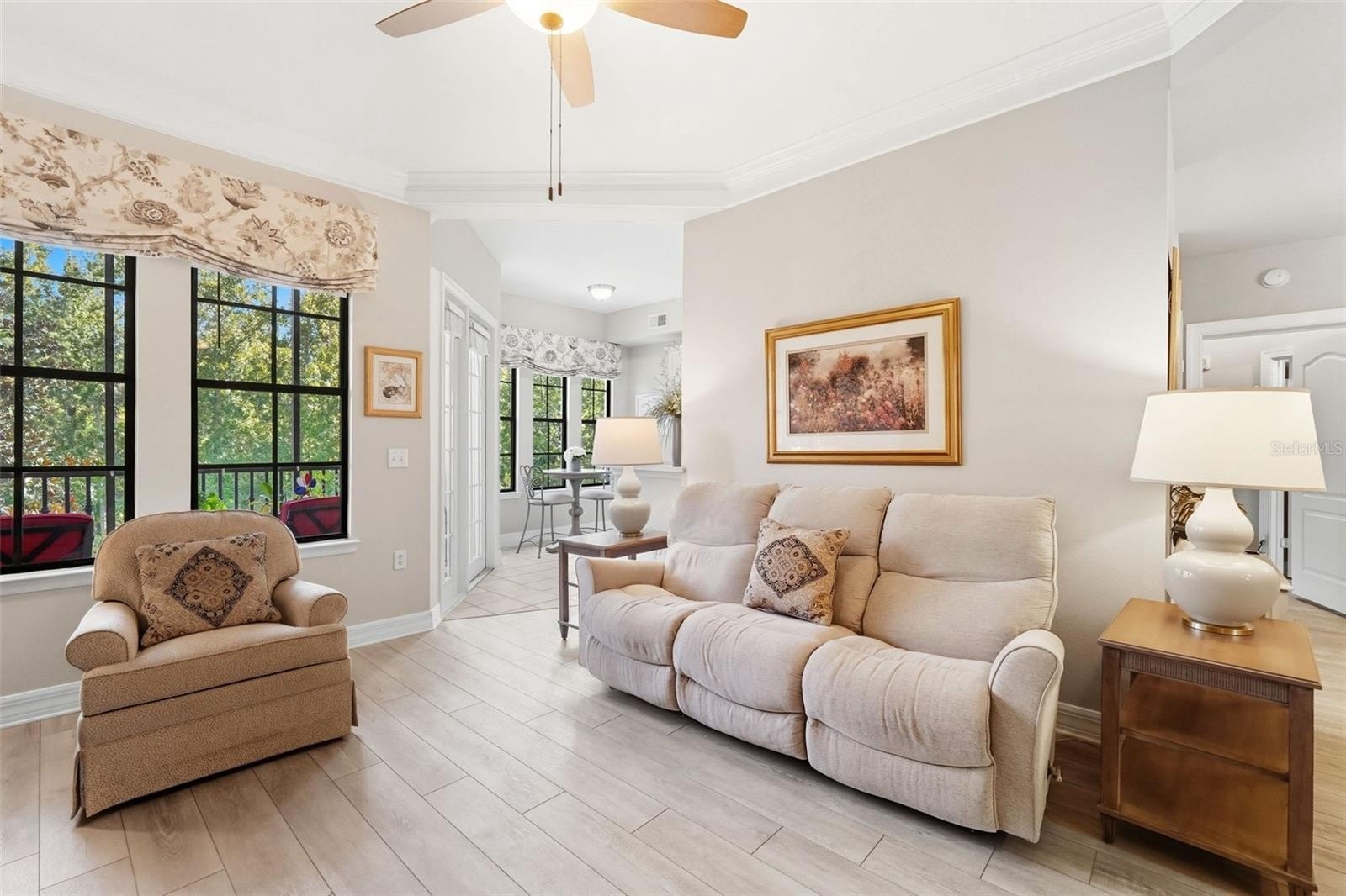 Wake up each morning to serene views of the nature preserve and a warm greeting from the sunrise, best enjoyed from your private screened balcony. This spacious one-bedroom residence in a resort-style community offers versatile living with both a dining area and a cozy breakfast nook, providing the flexibility you desire. Located on the 3rd floor with convenient elevator access, the home features an inviting kitchen with stainless steel appliances, elegant quartz countertops, 42-inch white cabinetry, glass tile backsplash, breakfast bar, and a built-in desk. The 10-foot ceilings with crown molding enhance the open feel throughout.The owner’s suite boasts a generous walk-in closet and a luxurious bath with a Roman soaking tub and separate shower, creating a perfect retreat.Mirasol at Celebration showcases award-winning architecture and an array of top-notch amenities designed to enhance your lifestyle, including an on-site day spa, a fully equipped 24-hour fitness center, on-site professional management services, a resort-style heated pool and spa, a resident clubroom with billiards, and a business center with a private conference room and cyber café. Nestled in the vibrant Celebration Village, you’ll have access to 26 miles of scenic trails and be just a short distance from the town center, offering fine dining, eclectic shops, and entertainment options, as well as tennis courts. Plus, enjoy the convenience of being minutes away from Walt Disney World, Sea World, and Universal Studios, with the airport only 20 minutes away. Assigned parking space #65 is included. Competitively priced and move-in ready, this home is a rare find that won’t last long! Schedule your viewing today!