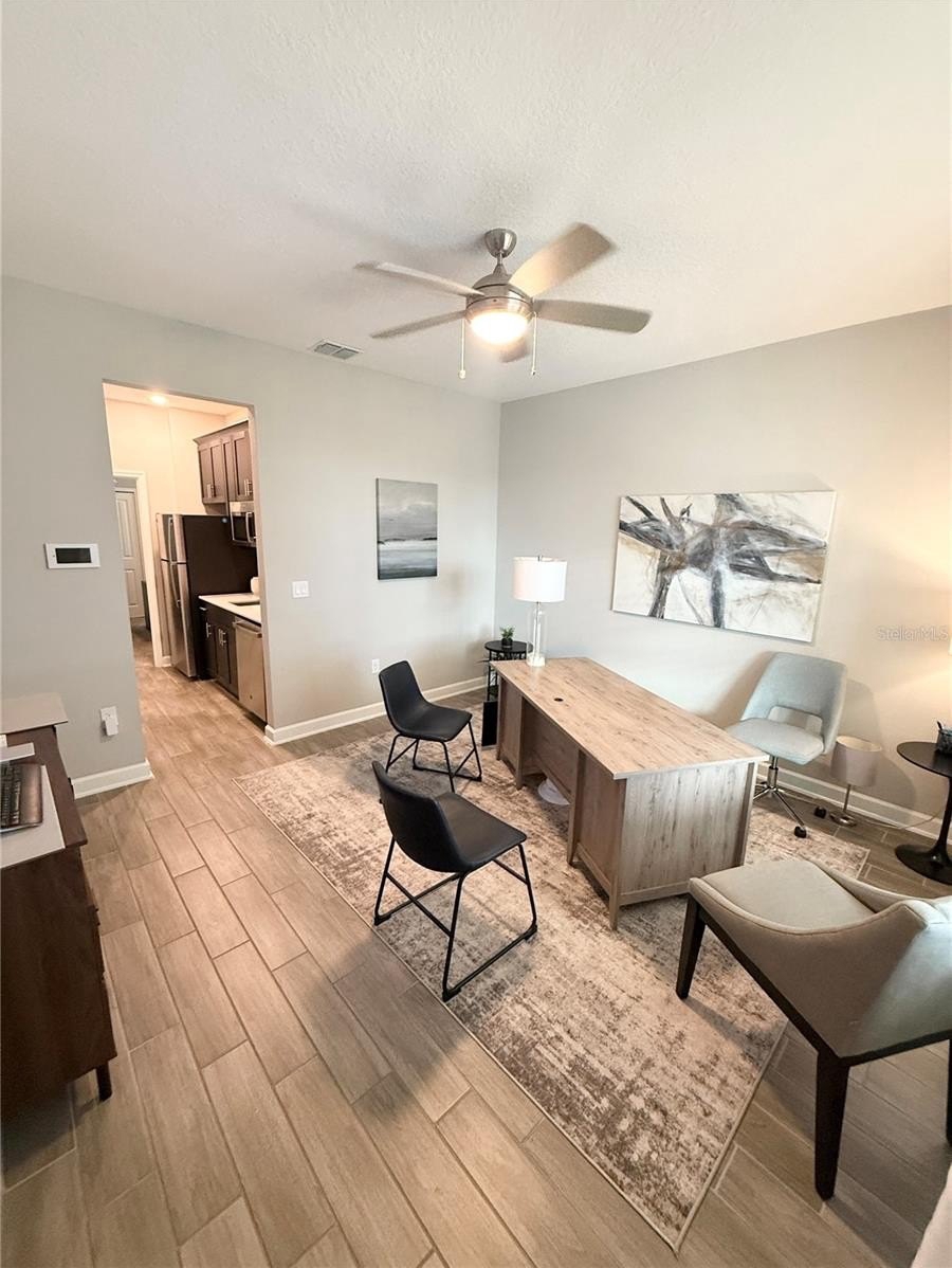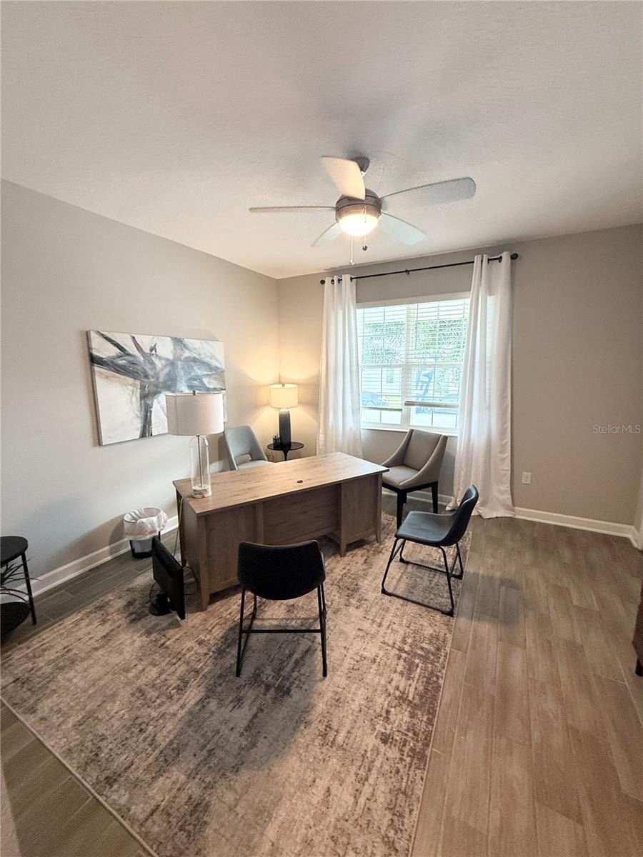 The owner’s suite is privately tucked at the back of the home and offers a peaceful retreat with a walk-in closet and a spa-inspired en-suite bathroom. Two additional bedrooms, a versatile study, and a full bath complete the main living area, providing comfort and flexibility for the whole household.