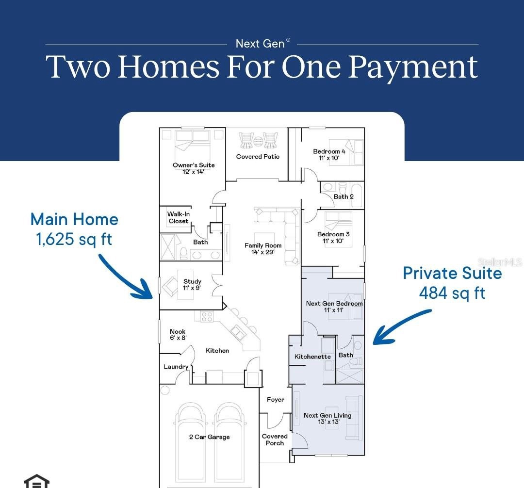This Freedom floor plan is a thoughtfully designed Next Gen® single-story home offering the perfect balance of style, function, and flexibility. Featuring a private suite with its own entrance, living room, kitchenette, bedroom, and full bathroom, this space is ideal for multigenerational living, in-laws, or even a private rental opportunity.