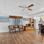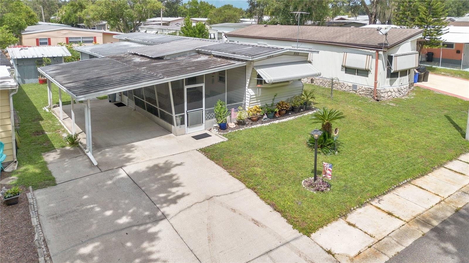 As you arrive, you’ll notice the carport and spacious screened wrap-around patio, perfect for enjoying morning coffee or evening breezes. Step inside to find wood flooring throughout, a cozy kitchen with an eat-in space, solid wood cabinets, stainless steel appliances, and a white refrigerator framed by windows with a pleasant view. The home features two comfortable bedrooms and a full bath.