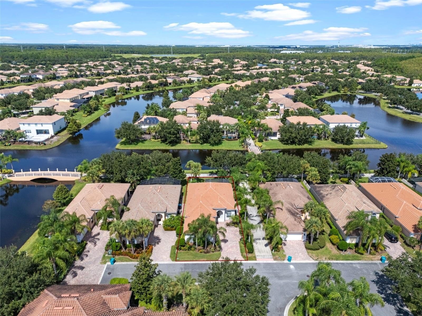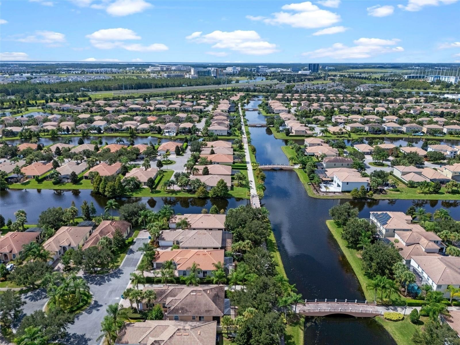 Experience the Ultimate Live-Work-Play Lifestyle in VillageWalk at Lake Nona! Just one mile from Lakenona Medical City, this beautifully upgraded DiVosta-built home sits on a premium corner lot with water views and features a freshly painted interior and exterior. Inside, you’ll find rich wood cabinetry, granite countertops, crown and door moldings, extended screened patio, and custom designer finishes throughout. A flexible den/office (or 4th bedroom) includes luxury vinyl plank flooring and a custom built-in wall unit. The gourmet kitchen boasts granite surfaces, stainless steel appliances, and abundant storage with custom closets. Built for comfort and convenience, this home offers energy-efficient construction, hurricane shutter prep, and 24-hour guard-gated security. VillageWalk Amenities include: Resort-style & lap pools, State-of-the-art fitness center, Tennis & basketball courts, Clubhouse with ballroom, catering kitchen & activity director, Playground & 4+ miles of walking/biking trails, On-site gas station, convenience store, salon & post office, HOA covers complete lawncare, internet, and cable TV for stress-free living. Lake Nona offers top-rated schools, UCF Medical School, VA & Nemours Hospitals, Lake Nona Performance Center, Boxi Park, shopping, dining, and easy access to 417, 528, Orlando International Airport, Brightline, and area attractions. Once you live here, you won’t want to live anywhere else. Schedule your private showing today!