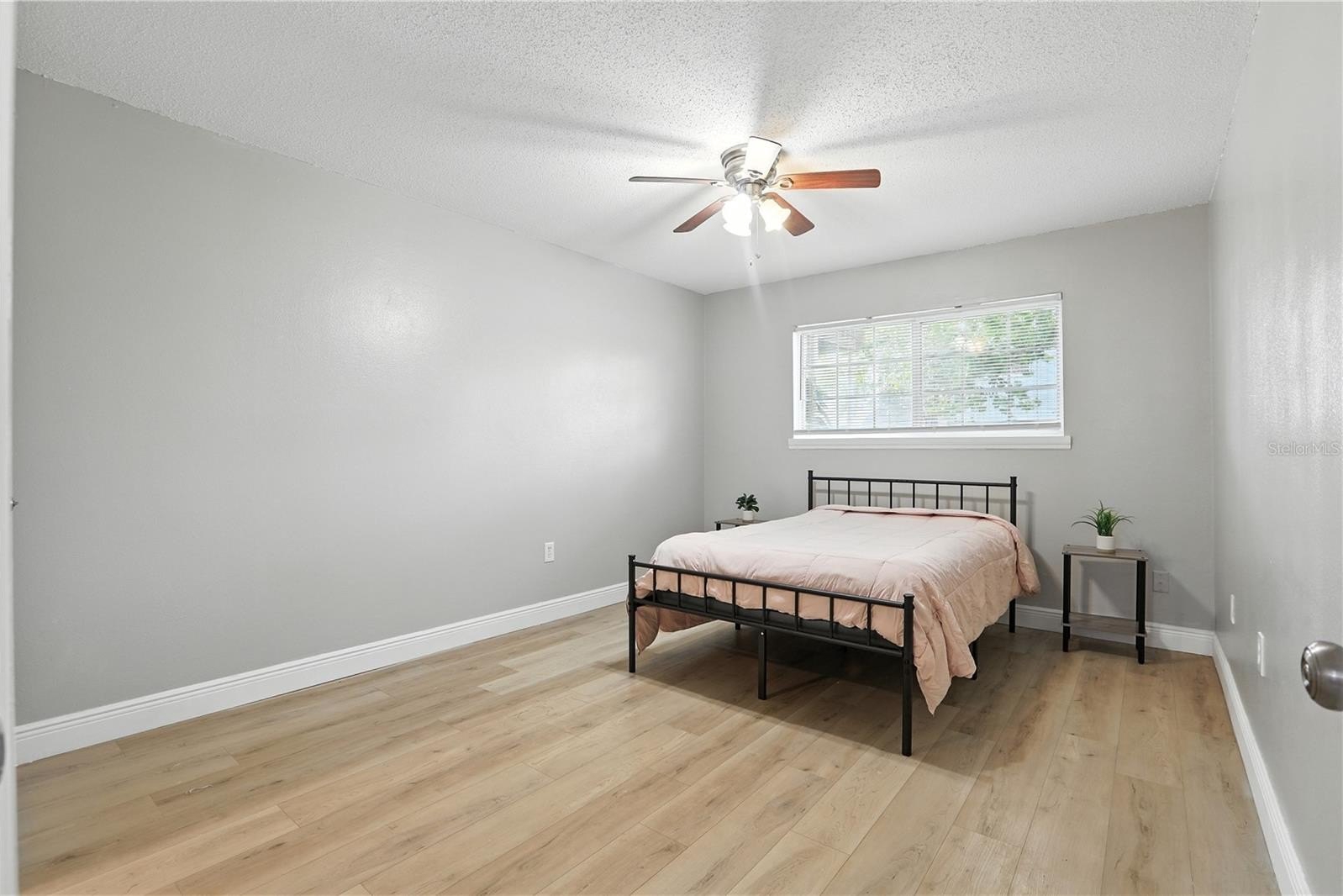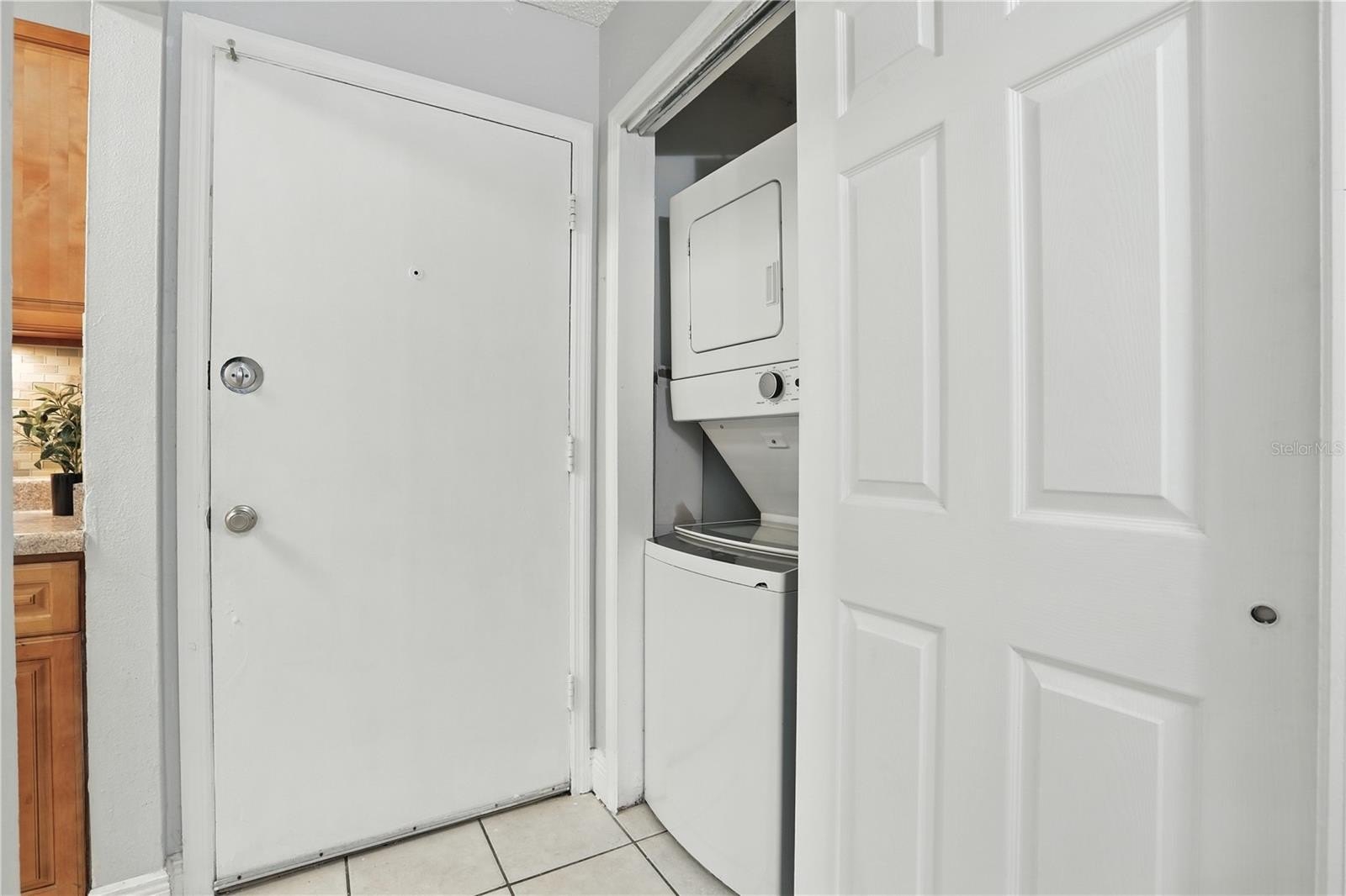 The kitchen features ample cabinet space and next to it you will find the laundry closet (washer and dryer included). Both bedrooms are generously sized with great closet storage, and the bathroom is well-maintained with modern finishes. AC 2024