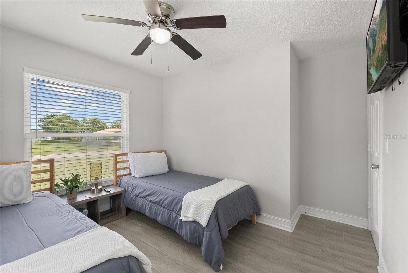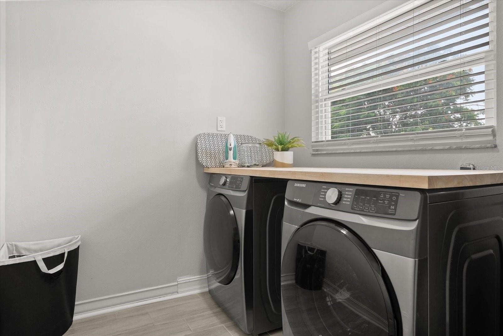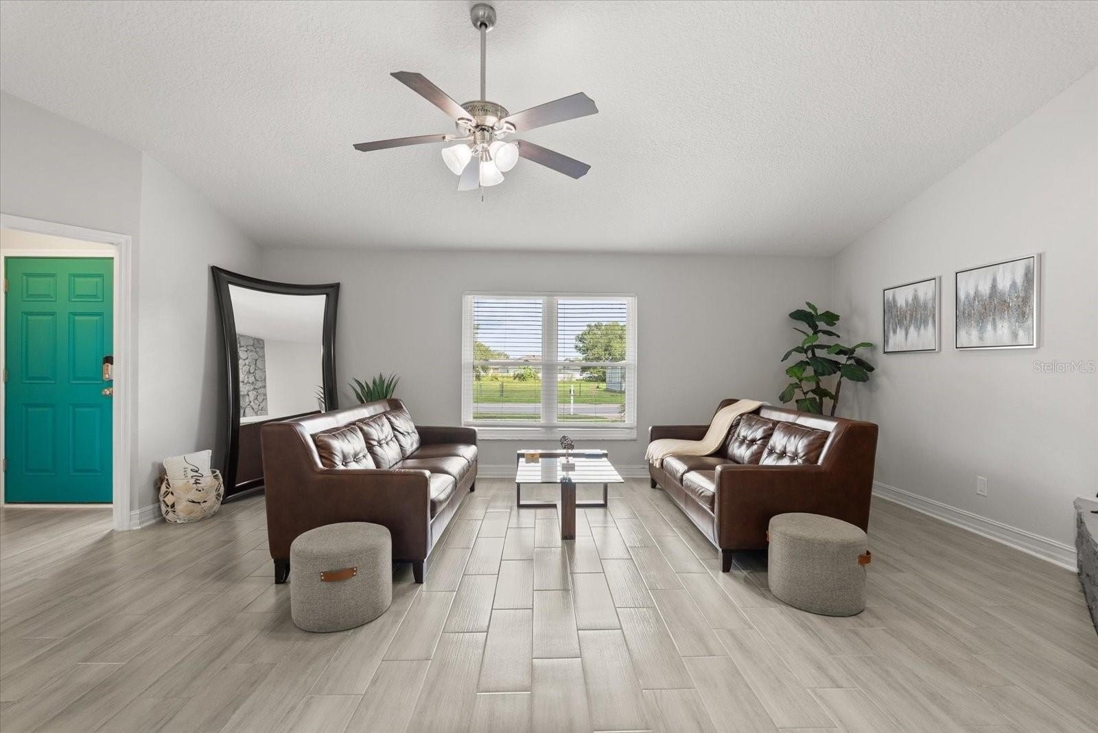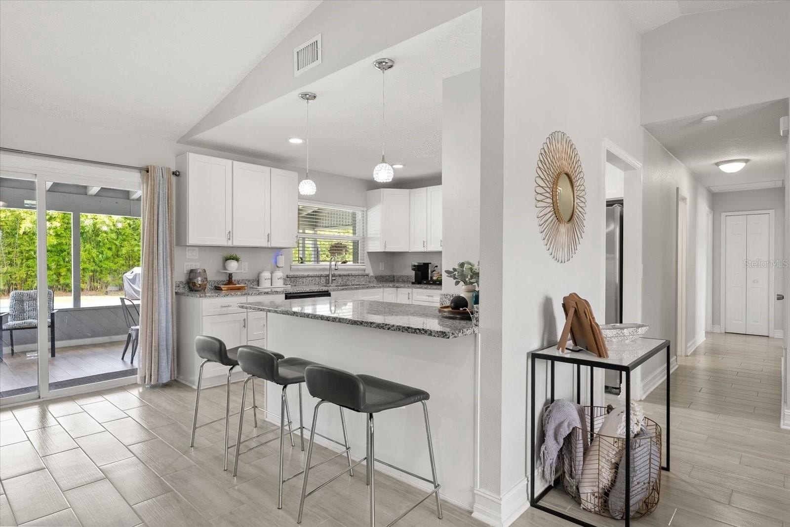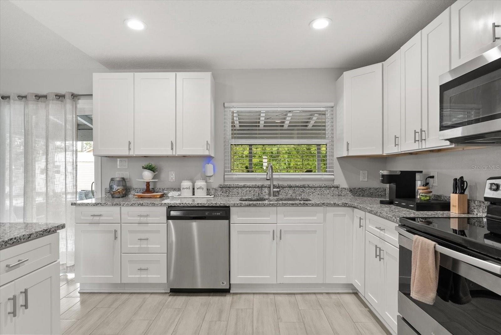 Sliding doors lead to a spacious lanai overlooking the sparkling pool and fully fenced backyard—an outdoor retreat ready for weekend barbecues or quiet evenings under the Florida sky. Recent updates give peace of mind, including a new roof (2021), A/C (2021), resurfaced pool deck (2024), new water heater (2025), fresh stucco and exterior paint (2025), and newer windows (2019).