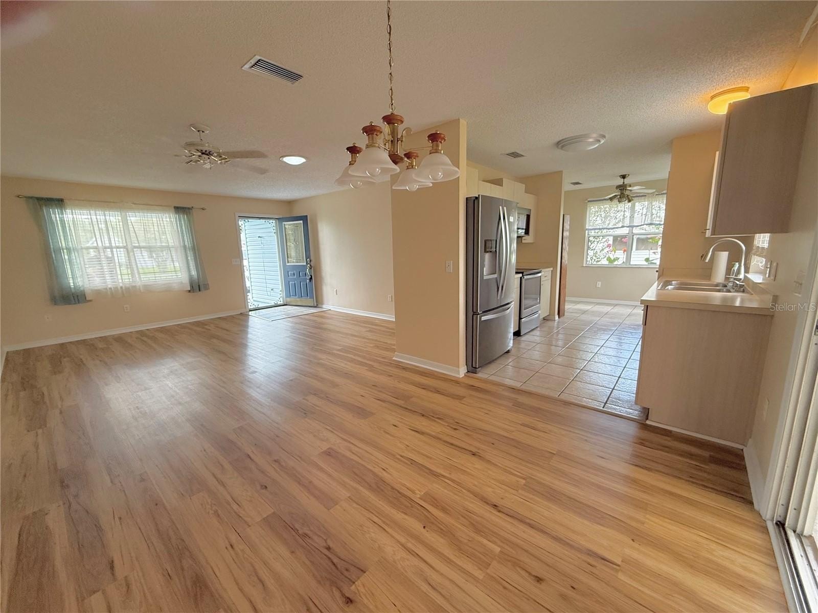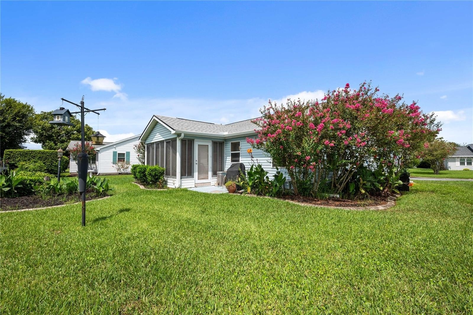 Welcome to The Villages ! Located in The Villages of Del Mar, this home will make your Villages lifestyle a reality. Featuring a 2- bedroom ,2- bath floorplan,with a greatroom,breakfast nook/dining room combo,enclosed lania,with open air patio ,a cozy front porch,and a one car garage perfect for auto or golf cart. Upgrades all completed in 2023 include : new roof, stainless steel appliances, new hvac,and vinyl plank flooring .The driveway and porch flooring were recoated in 2024,blinds replaced in 2025 and interior completely repainted in August 2025. The breaker box in the garage is wired for a portable generator. This property is centrally located to Spanish Springs Town Square ,Rio Grande Neighborhood Recreation Center and Pool,and Chula Vista Recreation Center . Whether you are looking for a full time residence or a seasonal get away, 1224 Santos place delivers comfort, convenience and Florida living at its best , Call today for a tour. And best of all there is NO Bond!