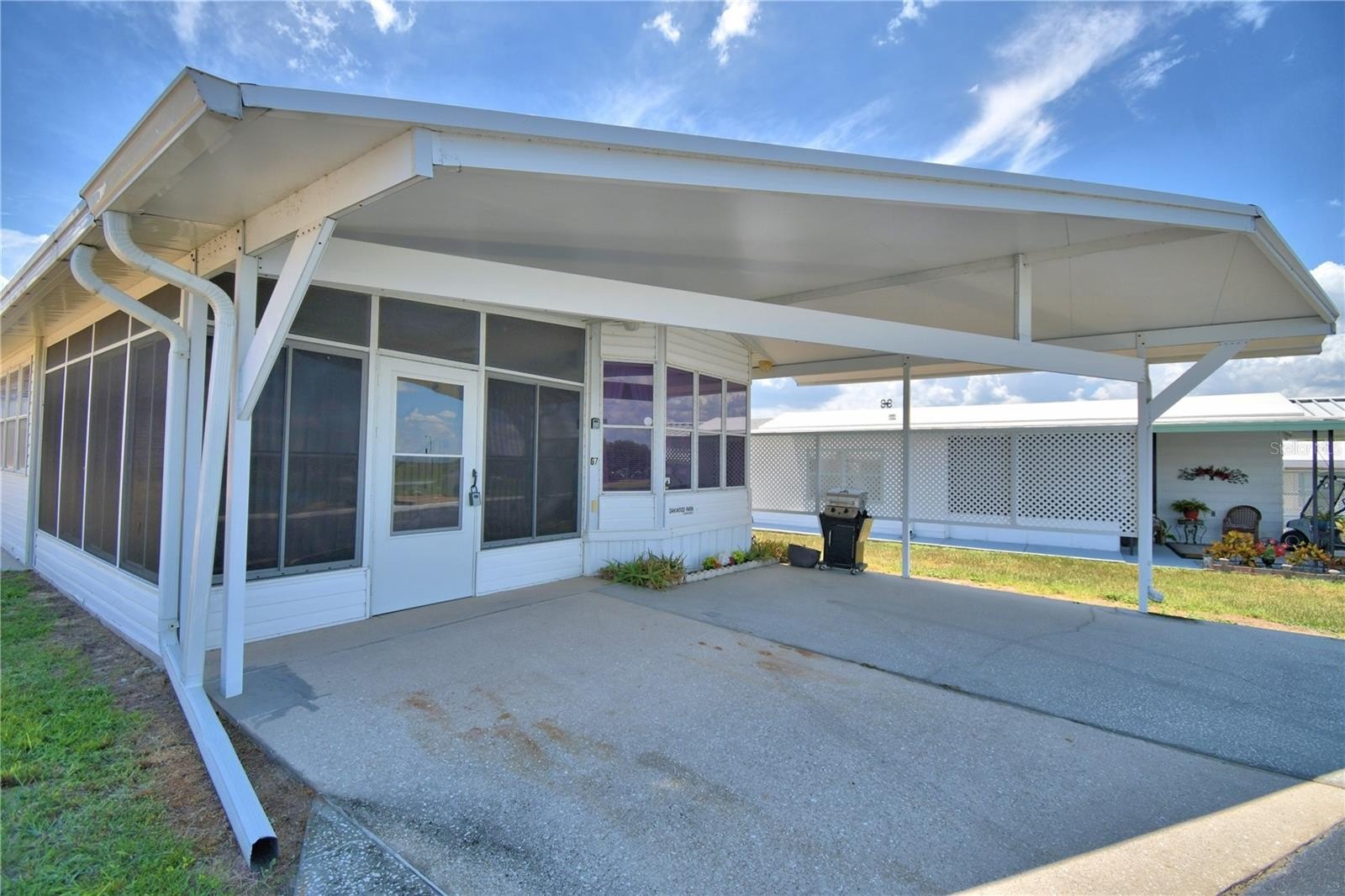FLORIDA LIFESTYLE AT ITS BEST... GATED 55+COMMUNITY...OWN YOUR LAND...1B/1B POND VIEW HOME facing the west to see some AMAZING Florida Sunsets. FURNISHED well-maintained home with BONUS ROOM, could be utilized as a second bedroom. Inside Laundry Room with washer/dryer. Screen Lanai on back of home as well as a separate standing shed for your additional storage. Newer Membrane/Forever Roof. Covered carport for parking of your golf cart (seller has golf cart/negotiable) and up to 2 vehicles. Enter home through your windowed lanai for your morning coffee outside yet inside. Community offers a Recreational Building, SOLAR Heated POOL, Pickleball Court, Bocce Ball and many, many more amenities and activities provided by the community. Close to restaurants/shopping/medical/major highways leading to our Florida Attractions and EAST/WEST COAST Beaches. Whether Full-Time or Seasonal....YOUR HOME AWAITS YOU. Call Susie today for your private showing.