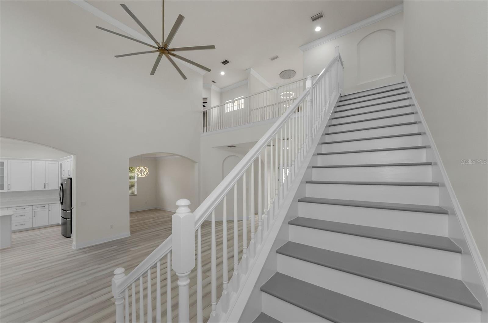 Brace yourself for a breathtaking transformation. An open-concept floor plan, flooded with natural light, creates an inviting atmosphere that makes every room feel brand new. Step inside to a fresh and modern living space, featuring a chef-inspired kitchen with gleaming quartz countertops and 42"cabinets that make this home a vibrant, yet elegant place to call home. Our paint scheme brighten each room with a unique personality of a happy color and open floor plan. This is the move-in ready home you've been waiting for in the award-winning community of Stonegate in Pasco County that has NO CDD! This home is a MUST SEE! As stunning inside as out, this gorgeous 4 bedroom, 3.5 bath, 3 car garage, pool home has high ceiling and natural light throughout to brighten up your days.. This wonderful home has beautiful pond views from many rooms in the home. Downstairs is the master bedroom ensuite with new Laminate vinyl plank flooring, double sinks, garden tub and huge double walk in closets. The downstairs has a large great room with two story ceilings, separate dining room, separate living room and a bonus room an a 1/2 bath which also includes all new Luxury vinyl planks. Upstairs you find an additional 3 bedrooms, 2 baths with separation to make sure everyone has their privacy. The seller has done many upgrades which includes items like New 42” modern cabinets with crown, new stainless steel appliances, new lighting, new mirrors, toilets etc, new interior/exterior paint, New Luxury vinyl planks flooring (2025), Newer Roof (2023), crown molding(2022), , Newer AC units(2 of them 2020), heater for spa(2021), exterior painting (2025), salt water conversion for pool and newly screened birdcage (2025). Electric awning with lights to extend covered lanai, fenced in yard, entire house filtration system. The list goes on and on. This gated community includes a clubhouse with POOL and WORKOUT FACILITY basic cable and internet are INCLUDED No CDD Fees and low HOA! NO FLOOD ZONE. New traffic light built outside the community. Easy access to Fred Howard park with Gulf Access and other Gulf Beaches, Tampa International Airport, Raymond James Stadium, home to the Tampa Bay Buccaneers and Amalie Area home to the Tampa Bay Lightning. As well as I-75, 589 and Dale Mabry Highway. Zoned for A Rated Land O Lakes Schools Sunlake High School & Charles S. Rusche Middle School & Oakstead Elementary.