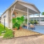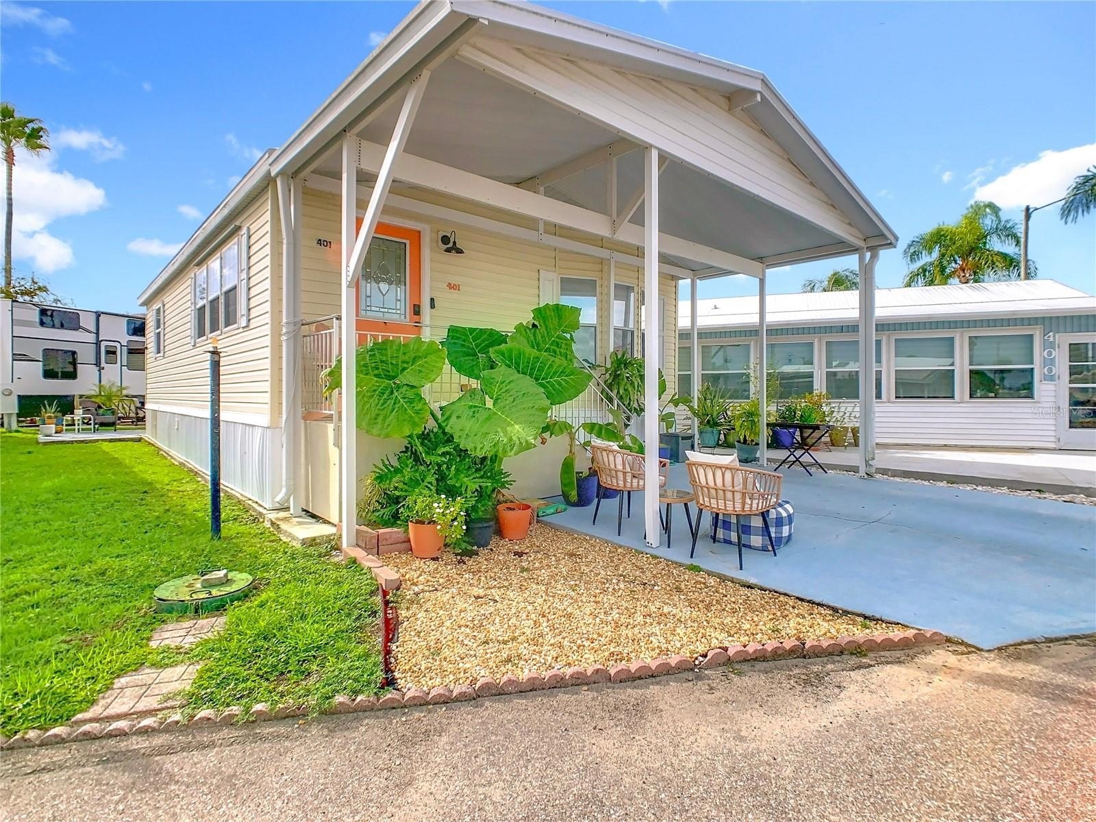 Great curb appeal to this beautifully maintained ONE LEVEL, two bedroom, 1 bath home in the highly sought after 55+, guard gated community of Outdoor Resorts! NO LOT RENT - YOU OWN THE LAND!! The home has been lovingly maintained by the owner and has a beautiful open contemporary feel. One bedroom is currently used as a spacious office and also houses the stackable washer/dryer. The home benefits from a NEW ROOF 2025!! and NEW A/C 2024!! New laminate flooring throughout the living area. Carpet in both bedrooms. Home is being sold unfurnished with a few exceptions - please refer to Inventory sheet in attachments. Come and experience the fantastic lifestyle that this unique community offers. Amenities include 2 heated swimming pools; private access to a 179 acre lake (Lake Davenport); 9 hole golf course; tennis; pickleball; shuffle board; 9 hole putt-putt golf; 8 bath houses scattered throughout the community; laundry facilities; beautiful 2 story clubhouse offering an endless array of entertainment throughout the year. All of this for the low Association Fee of $691 per quarter which also includes Cable TV, Lawn Mowing, Sewer, Trash and Water. UNBELIEVABLE VALUE FOR MONEY - you won't find a more AFFORDABLE LIFESTYLE !!!! Please remember 55+, no VA or FHA financing, 1 pet rule. The park benefits from close proximity to Disney, medical facilities, restaurants & grocery stores. Don't delay!! Put this home on your 'must see list' and ask to arrange a viewing today.