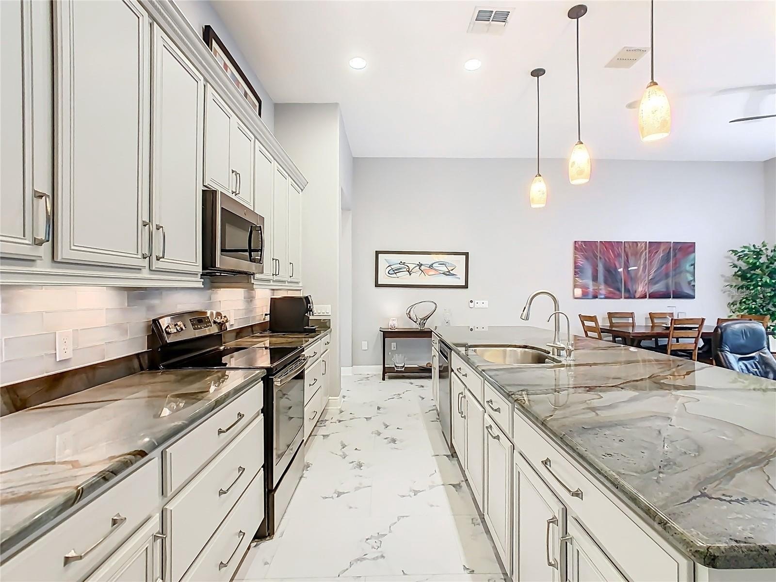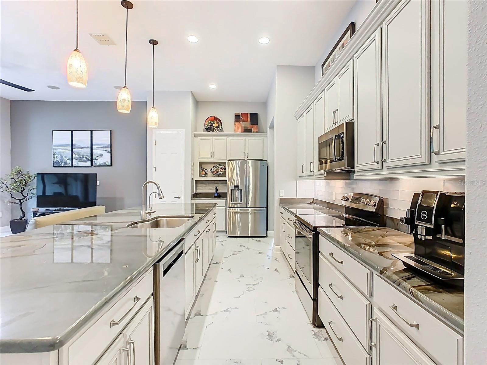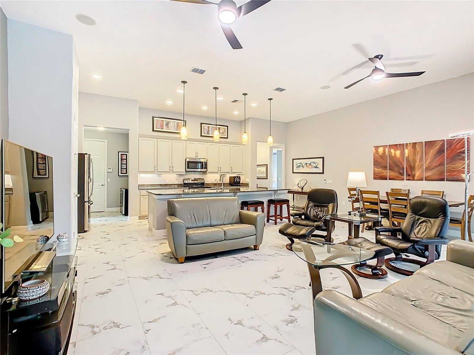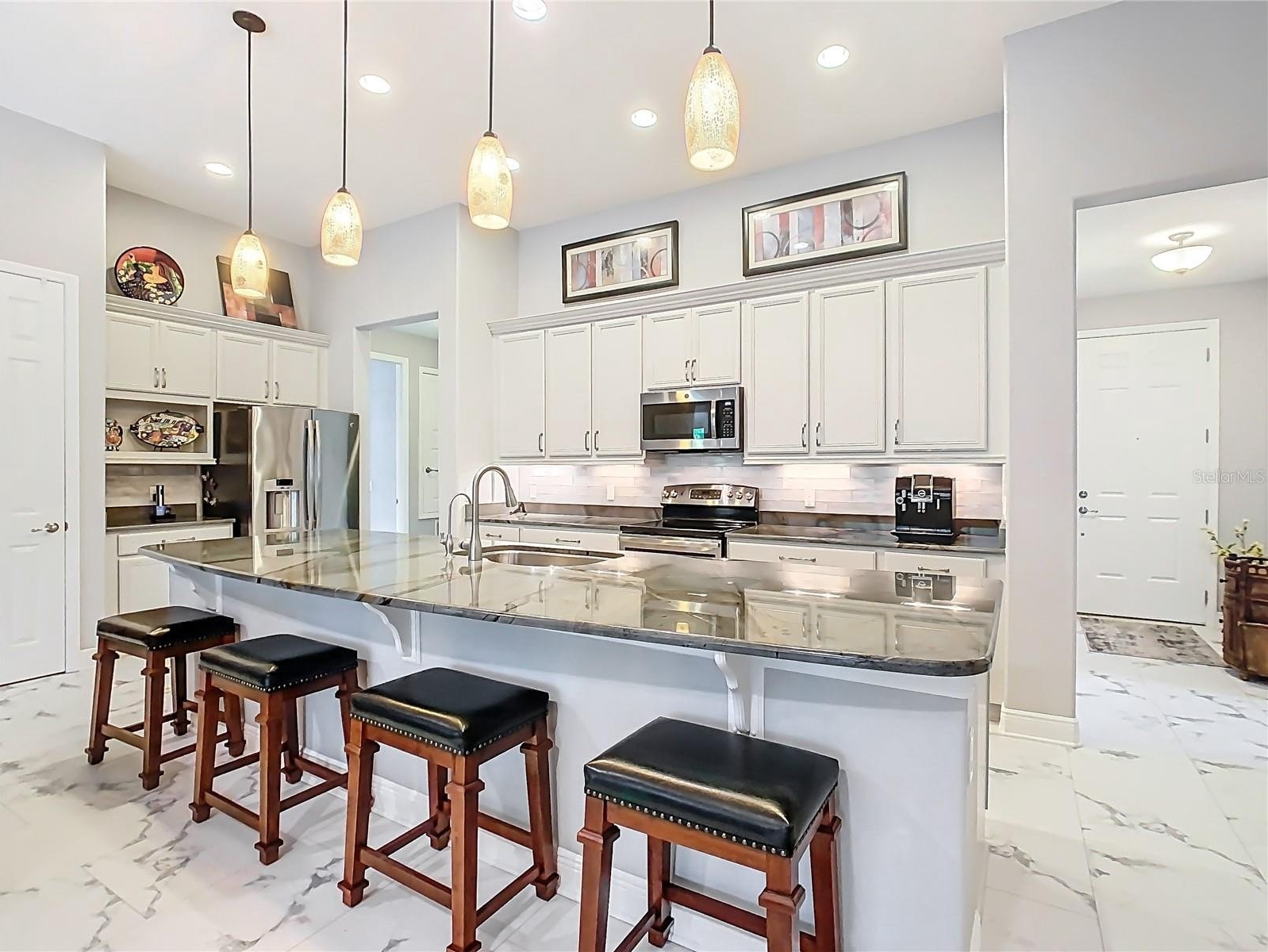 SPECTACULAR Home LOADED WITH UPGRADES. This JACKSONVILLE Model w/ 2 PRIMARY SUITES built in 2013 on a cul-de sac & oversized lot in the Vizcaya subdivision of Solivita will not disappoint! HVAC new in 2023. Marble-look LUXURY VINYL FLOORING in the main living areas in 2024. Upgraded Carpet in bedrooms & TILE in laundry room & Primary Bathrooms. The Kitchen features QUARTZITE counters, SUBWAY tile backsplash, STAINLESS STEEL appliances, 42" upper cabinets with CROWN MOLDING & LIGHT RAILS, SOFT-CLOSE doors & drawers, PULL-OUT drawers in lower cabinets, RECESSED, PENDANT & UNDER CABINET lighting & a closet pantry. This home boasts TWO PRIMARY SUITES with ENSUITE BATHROOMS, WALK-IN CLOSETS and BUILT-IN DRAWERS w/ GRANITE COUNTERS in each Suite! DUAL VANITIES with a Shower in one bathroom & Tub/Shower in the other suite. COMFORT HEIGHT Commodes. PICTURE WINDOW in Primary Suite #2 new in 2023. 3rd Bedroom w/ full bath nearby. Flex Room can be used as you see fit. 8' doors, 5.5" baseboards & rounded corners throughout. CENTRAL VACUUM & WHOLE HOUSE KINETICO water softener system. ENERGY EFFICIENT with ICYNENE spray foam insulation in attic ceiling & Double Pane Low E windows throughout. Room Darkening PUSH-PULL Levelor window blinds with an ACCORDIAN blind across the slider in the Great Room. CEILING FANS throughout home. Front Landscaping is upgraded with STONE PAVERS around the flower beds, red rocks in flower beds & and EXPANDABLE "VOLT" landscape lighting system. Built-in SURROUND SOUND SPEAKERS in Great Room & Lanai. Laundry Room has a SINK, cabinets & counter space. HUGE EXTENDED, SCREENED & Partially Covered LANAI looking out to the landscaping with over 20 palm trees which provides complete privacy. 2 CAR GARAGE plus an attached GOLF CART GARAGE. **See the FULL LENGTH VIDEO on Tour Link 1.** ***Solivita is an active adult 55+ community located in Kissimmee, Florida. It is approximately 50 minutes from Disney World & the Orlando International Airport. Solivita has a total of 5,470 homes. Approximately 10,000 - 11,000 people live in Solivita during the winter while approximately 7,500 live in Solivita during the summer. Enjoy your active years in this piece of paradise. Solivita's amenities include: - a manicured SOFTBALL diamond & field - 36 holes of CHAMPIONSHIP GOLF that can be played by joining the Stonegate Golf Club or paying as you go - 2 STATE of the Art AMENITY centers with updated exercise equipment, yoga studio & meeting rooms - 3 restaurants - 14 HEATED POOLS - 17 PICKLEBALL courts - 9 TENNIS courts - 4 BOCCE BALL courts - 4 SHUFFLEBOARD courts - 3 HORSESHOE pits - a BILLIARDS room - miles of bike paths - 2 DOG PARKS (Small & Large Dogs) - Corn Hole - Tot Lot PLAYGROUND - COMMUNITY GARDEN - over 250 resident clubs. The HOA: - maintains the LANDSCAPING & IRRIGATION systems in the common areas as well as at individual homesites - PROVIDES SECURITY with gate guards and mobile patrols including the Polk County Sheriff - allows AUTOMATED GATE ACCESS for residents via license plate readers - provides residents with Fiber Optic Internet & TV service.***Poinciana Lakes Plaza is a MAJOR NEW SHOPPING CENTER that opened directly across from the Solivita Main Gate in Summer of 2024. It features Sprouts Grocery, TJ MAXX, Ross, Burlington, Rack Room Shoes, 5 Below, Ulta, Outback, First Watch, 5 Guys, Urgent Care, Dentist, TD Bank, Petco & Hair Cuttery PLUS MORE TO COME.***