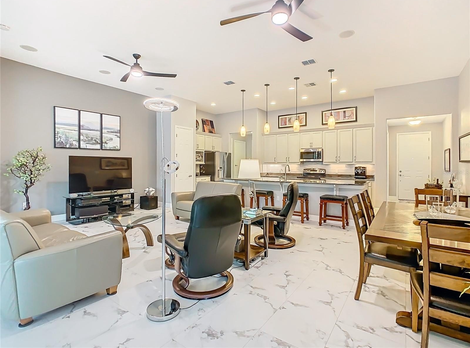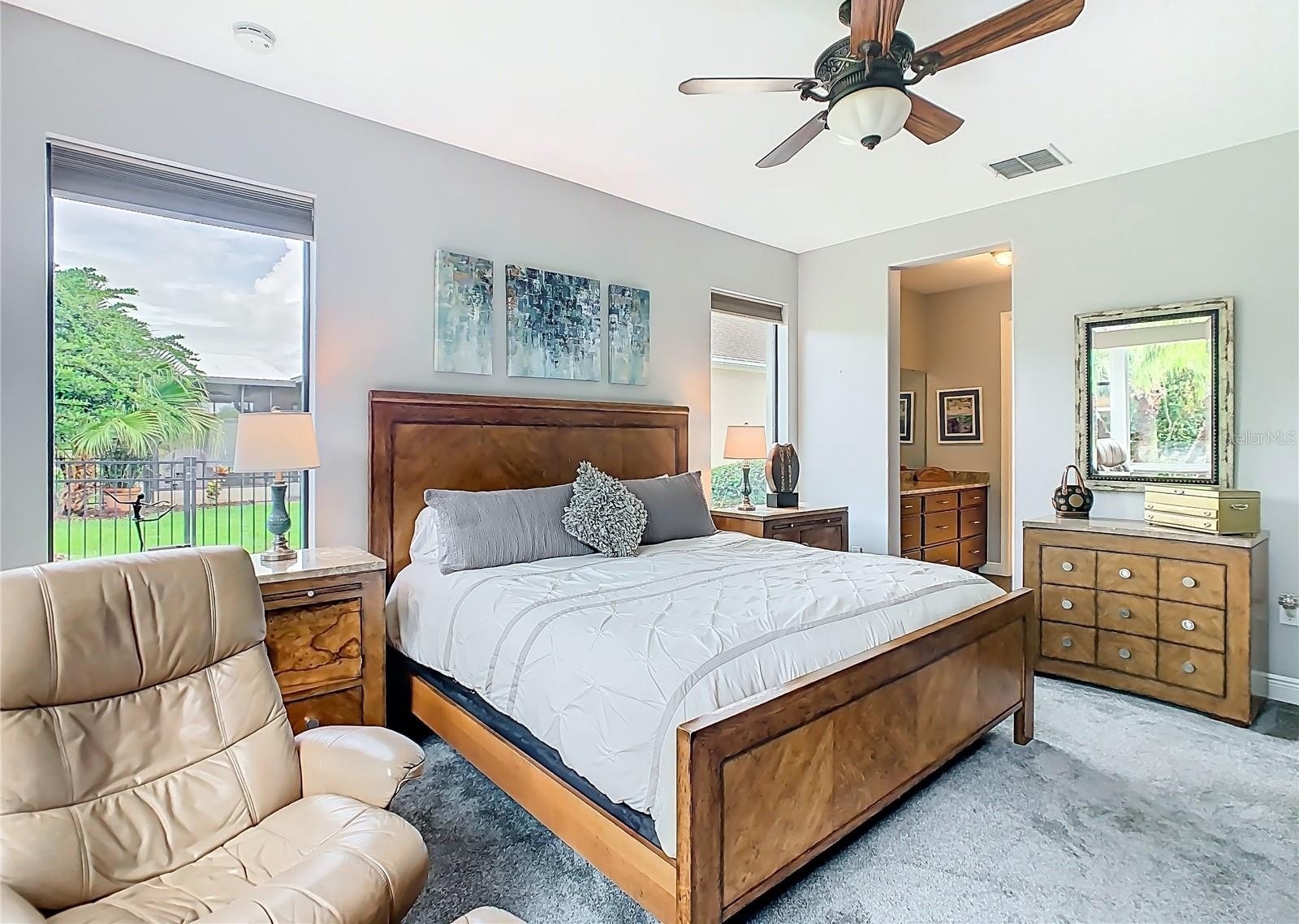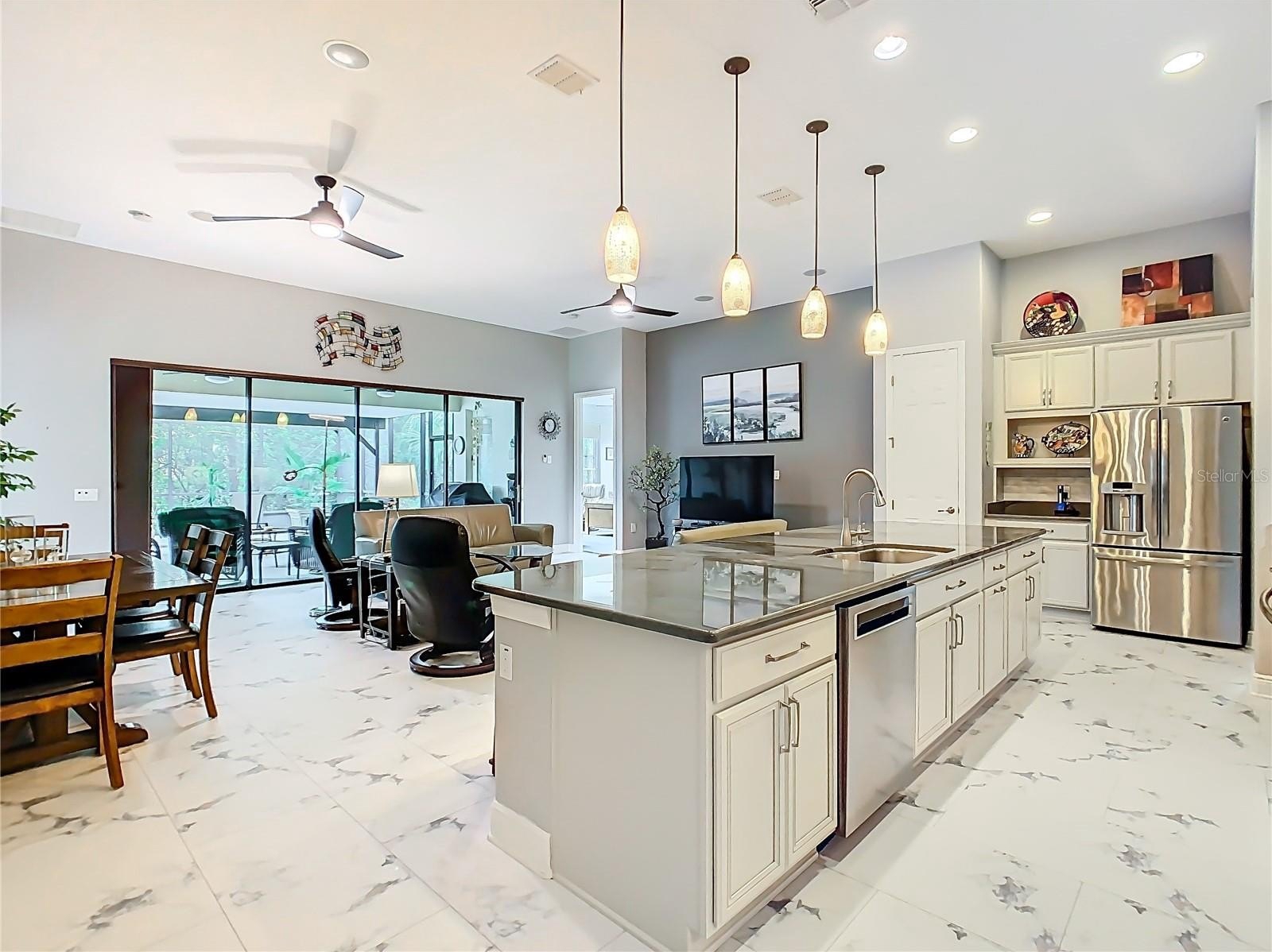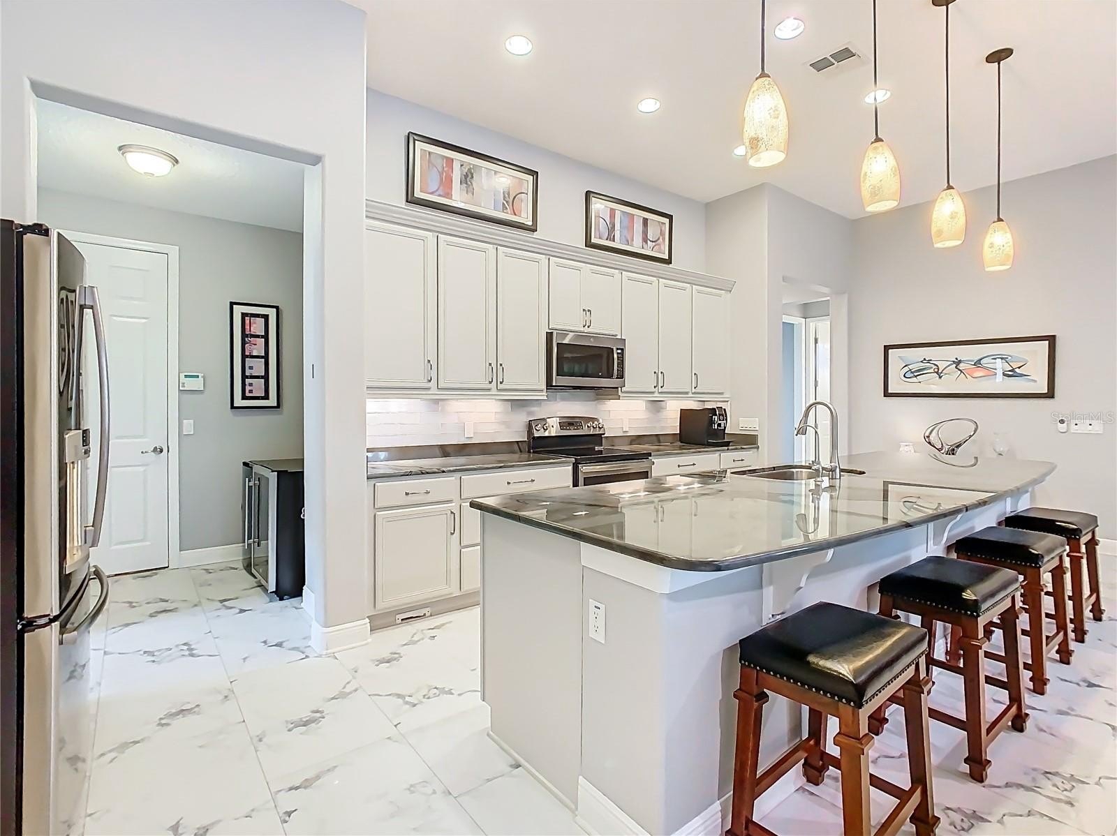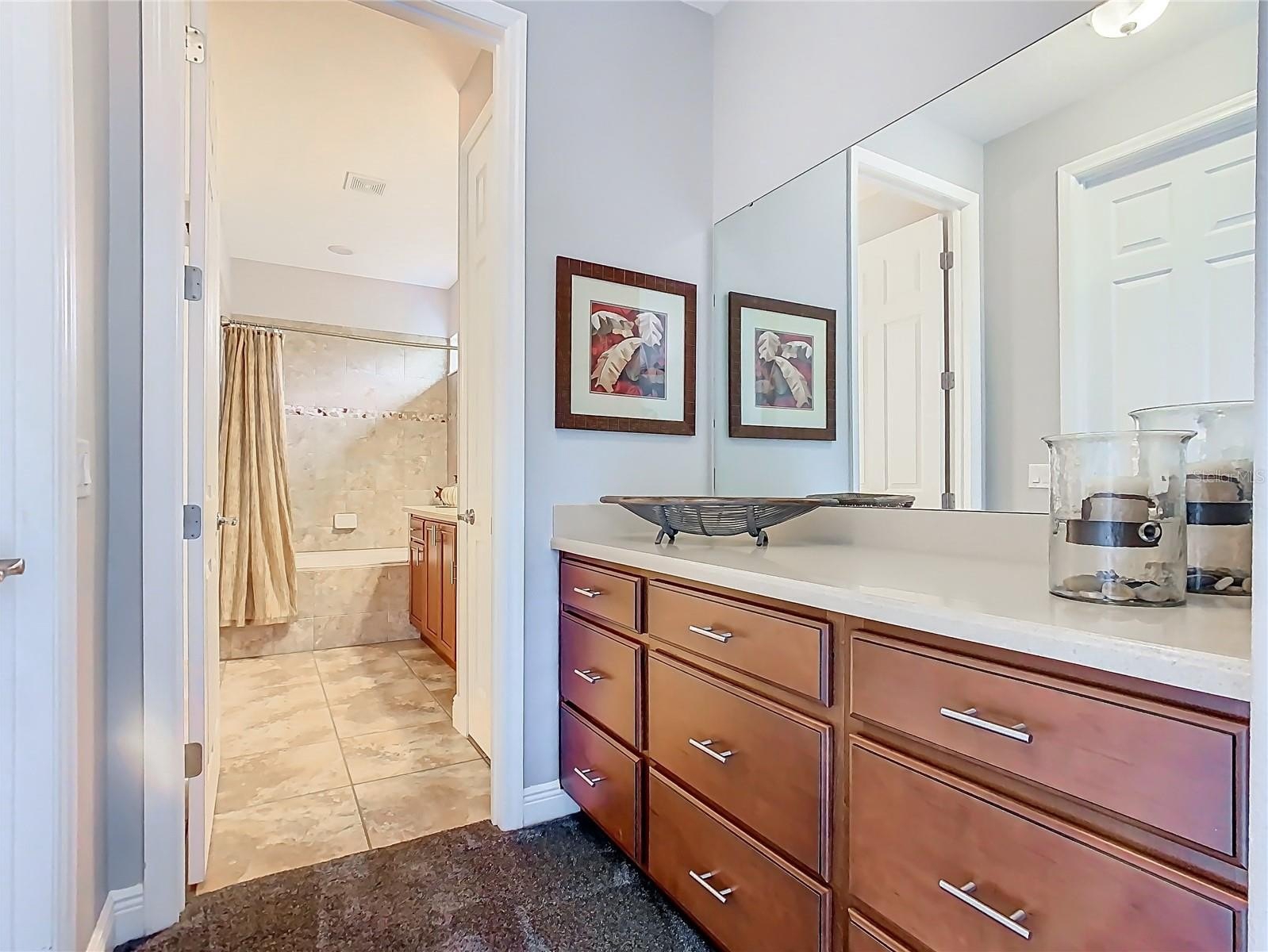SPECTACULAR Home LOADED WITH UPGRADES. This JACKSONVILLE Model w/ 2 PRIMARY SUITES built in 2013 on a cul-de sac & oversized lot in the Vizcaya subdivision of Solivita will not disappoint! HVAC new in 2023. Marble-look LUXURY VINYL FLOORING in the main living areas in 2024. Upgraded Carpet in bedrooms & TILE in laundry room & Primary Bathrooms. The Kitchen features QUARTZITE counters, SUBWAY tile backsplash, STAINLESS STEEL appliances, 42" upper cabinets with CROWN MOLDING & LIGHT RAILS, SOFT-CLOSE doors & drawers, PULL-OUT drawers in lower cabinets, RECESSED, PENDANT & UNDER CABINET lighting & a closet pantry. This home boasts TWO PRIMARY SUITES with ENSUITE BATHROOMS, WALK-IN CLOSETS and BUILT-IN DRAWERS w/ GRANITE COUNTERS in each Suite! DUAL VANITIES with a Shower in one bathroom & Tub/Shower in the other suite. COMFORT HEIGHT Commodes. PICTURE WINDOW in Primary Suite #2 new in 2023. 3rd Bedroom w/ full bath nearby. Flex Room can be used as you see fit. 8' doors, 5.5" baseboards & rounded corners throughout. CENTRAL VACUUM & WHOLE HOUSE KINETICO water softener system. ENERGY EFFICIENT with ICYNENE spray foam insulation in attic ceiling & Double Pane Low E windows throughout. Room Darkening PUSH-PULL Levelor window blinds with an ACCORDIAN blind across the slider in the Great Room. CEILING FANS throughout home. Front Landscaping is upgraded with STONE PAVERS around the flower beds, red rocks in flower beds & and EXPANDABLE "VOLT" landscape lighting system. Built-in SURROUND SOUND SPEAKERS in Great Room & Lanai. Laundry Room has a SINK, cabinets & counter space. HUGE EXTENDED, SCREENED & Partially Covered LANAI looking out to the landscaping with over 20 palm trees which provides complete privacy. 2 CAR GARAGE plus an attached GOLF CART GARAGE. **See the FULL LENGTH VIDEO on Tour Link 1.** ***Solivita is an active adult 55+ community located in Kissimmee, Florida. It is approximately 50 minutes from Disney World & the Orlando International Airport. Solivita has a total of 5,470 homes. Approximately 10,000 - 11,000 people live in Solivita during the winter while approximately 7,500 live in Solivita during the summer. Enjoy your active years in this piece of paradise. Solivita's amenities include: - a manicured SOFTBALL diamond & field - 36 holes of CHAMPIONSHIP GOLF that can be played by joining the Stonegate Golf Club or paying as you go - 2 STATE of the Art AMENITY centers with updated exercise equipment, yoga studio & meeting rooms - 3 restaurants - 14 HEATED POOLS - 17 PICKLEBALL courts - 9 TENNIS courts - 4 BOCCE BALL courts - 4 SHUFFLEBOARD courts - 3 HORSESHOE pits - a BILLIARDS room - miles of bike paths - 2 DOG PARKS (Small & Large Dogs) - Corn Hole - Tot Lot PLAYGROUND - COMMUNITY GARDEN - over 250 resident clubs. The HOA: - maintains the LANDSCAPING & IRRIGATION systems in the common areas as well as at individual homesites - PROVIDES SECURITY with gate guards and mobile patrols including the Polk County Sheriff - allows AUTOMATED GATE ACCESS for residents via license plate readers - provides residents with Fiber Optic Internet & TV service.***Poinciana Lakes Plaza is a MAJOR NEW SHOPPING CENTER that opened directly across from the Solivita Main Gate in Summer of 2024. It features Sprouts Grocery, TJ MAXX, Ross, Burlington, Rack Room Shoes, 5 Below, Ulta, Outback, First Watch, 5 Guys, Urgent Care, Dentist, TD Bank, Petco & Hair Cuttery PLUS MORE TO COME.***