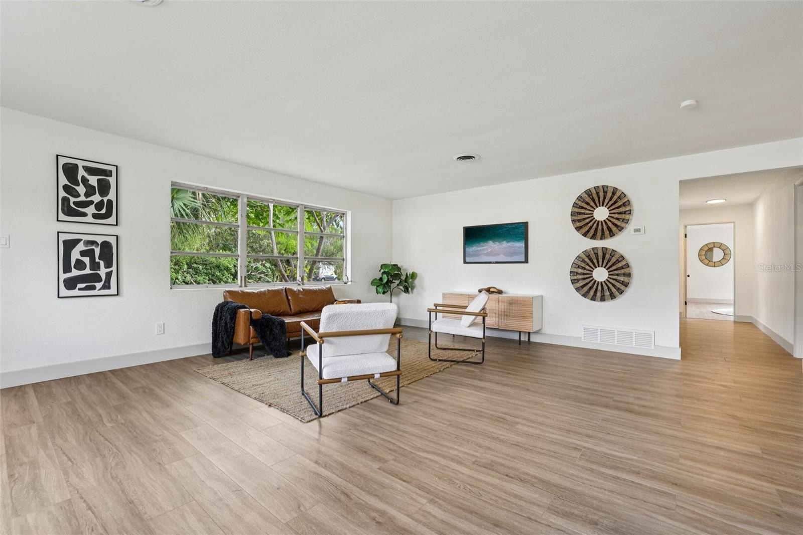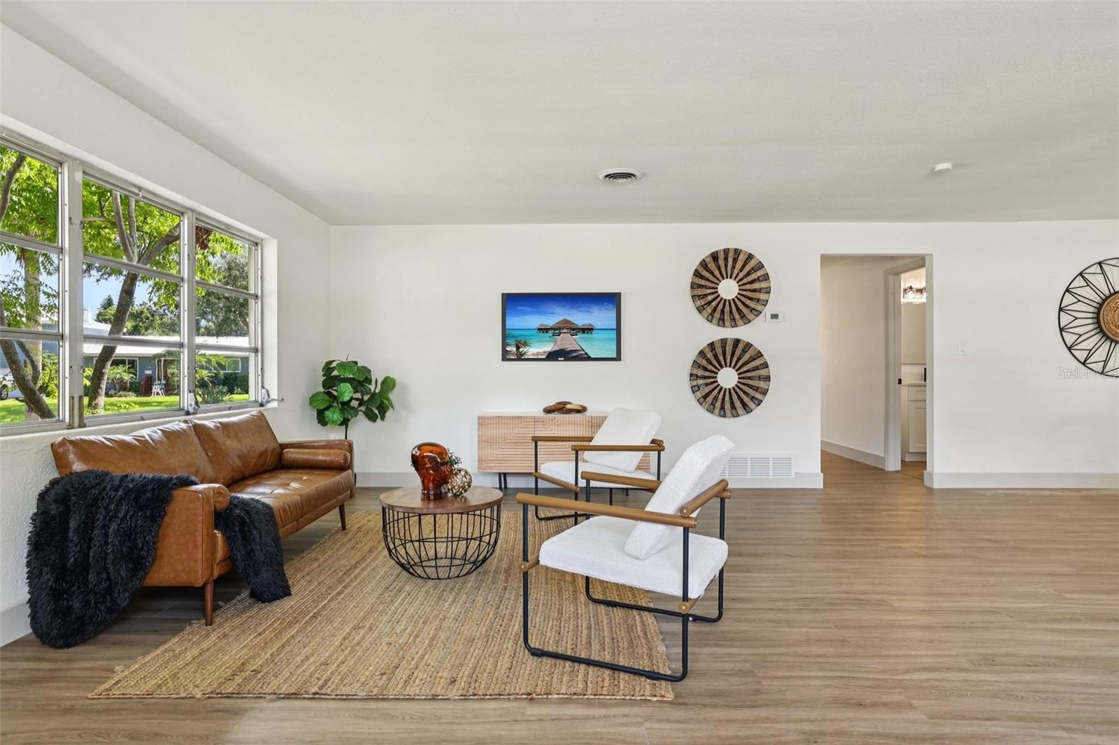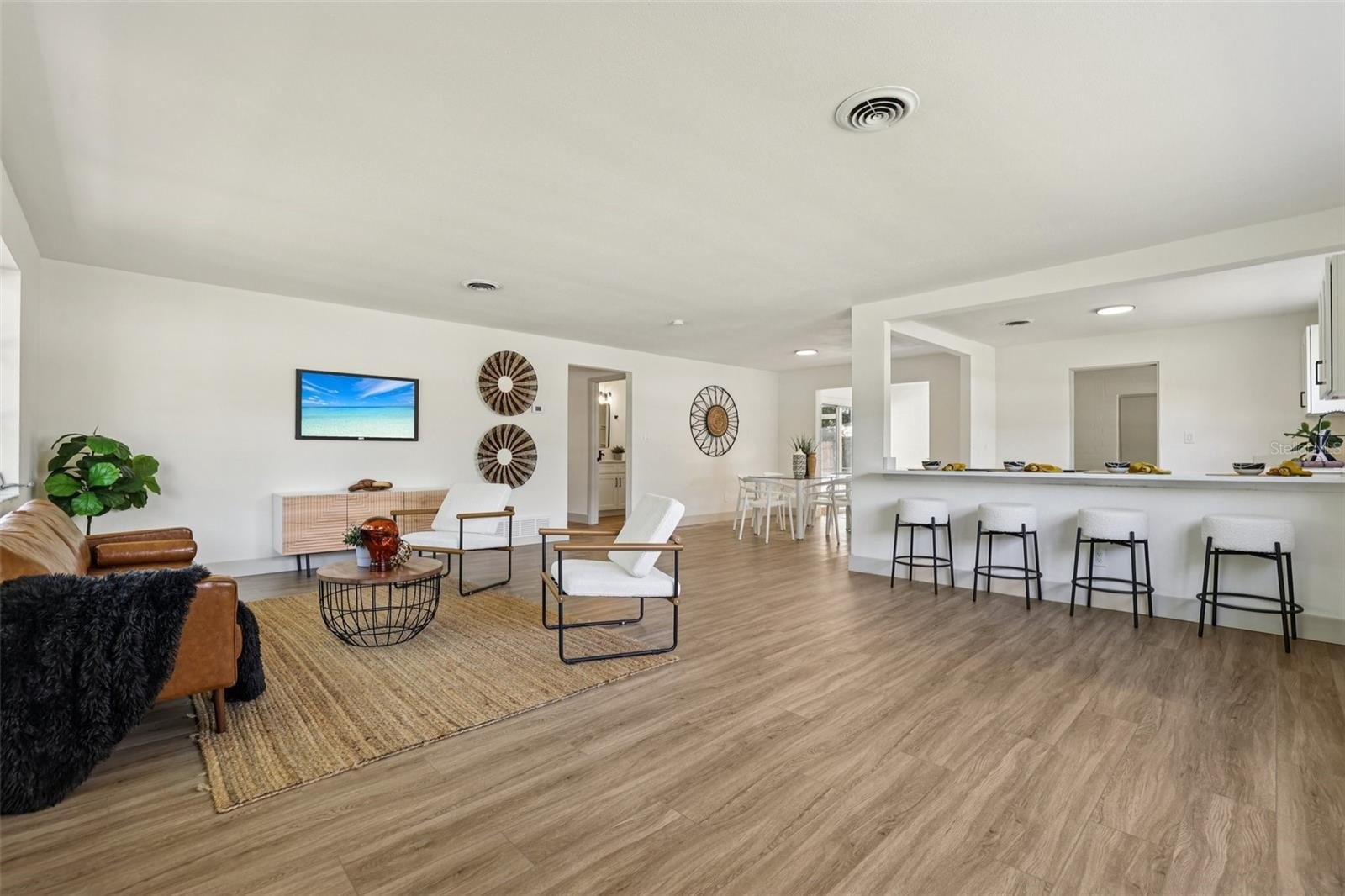 Discover this beautifully updated modern home tucked away in a peaceful neighborhood just minutes from Daytona Beach. Step into a thoughtfully renovated 3-bedroom, 2-bath residence designed for both entertaining and everyday living. Elegant luxury vinyl plank flooring flows throughout bright, inviting spaces and opens to a generous backyard—ideal for gatherings or quiet relaxation. The kitchen shines with brand-new quartz countertops and stainless-steel appliances, while the primary suite offers a private escape complete with a stylishly remodeled bath featuring quartz finishes. Combining contemporary design with everyday convenience, this home is perfectly situated near shopping, dining, hospitals, major highways, and of course, the beach. Don’t miss your chance to make this stunning home your own!